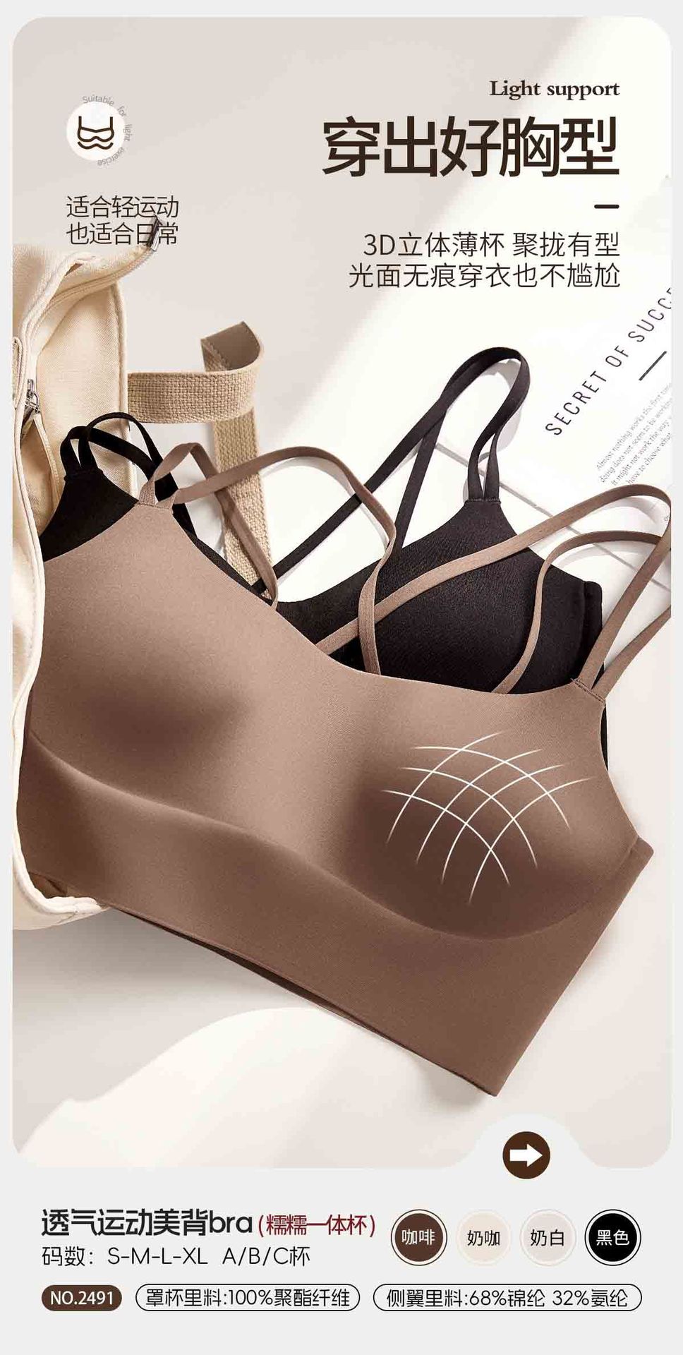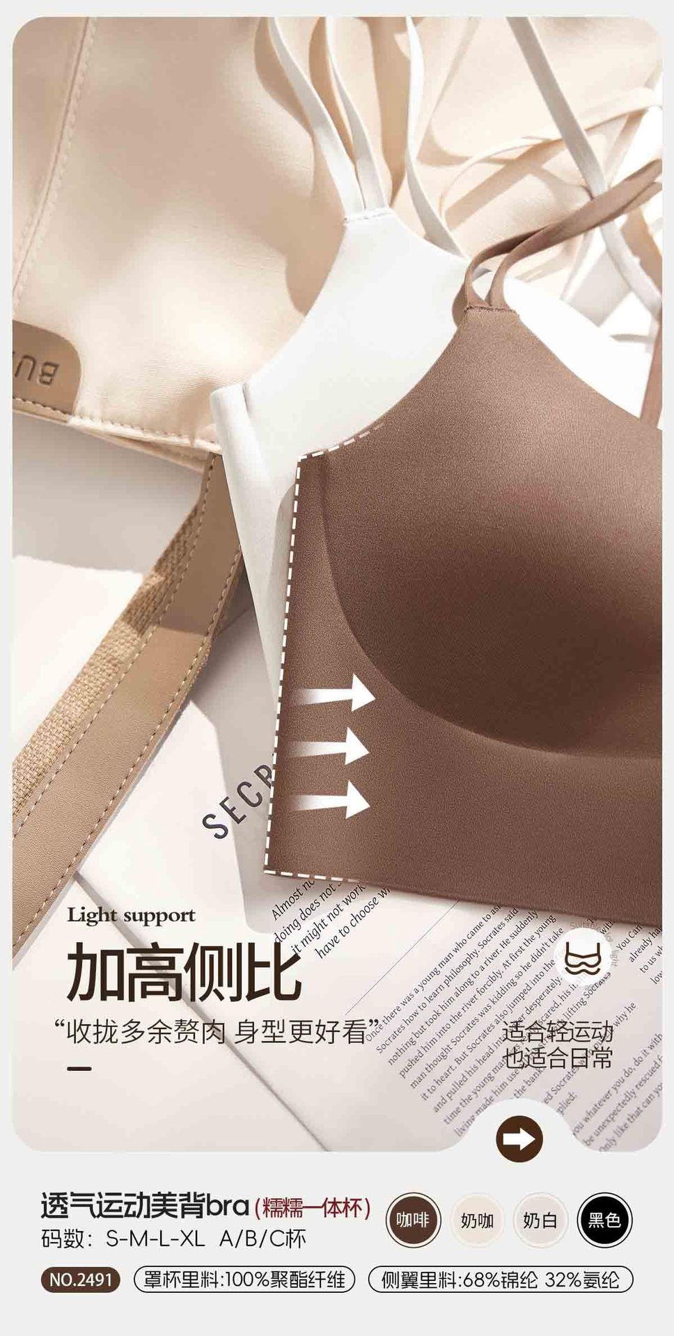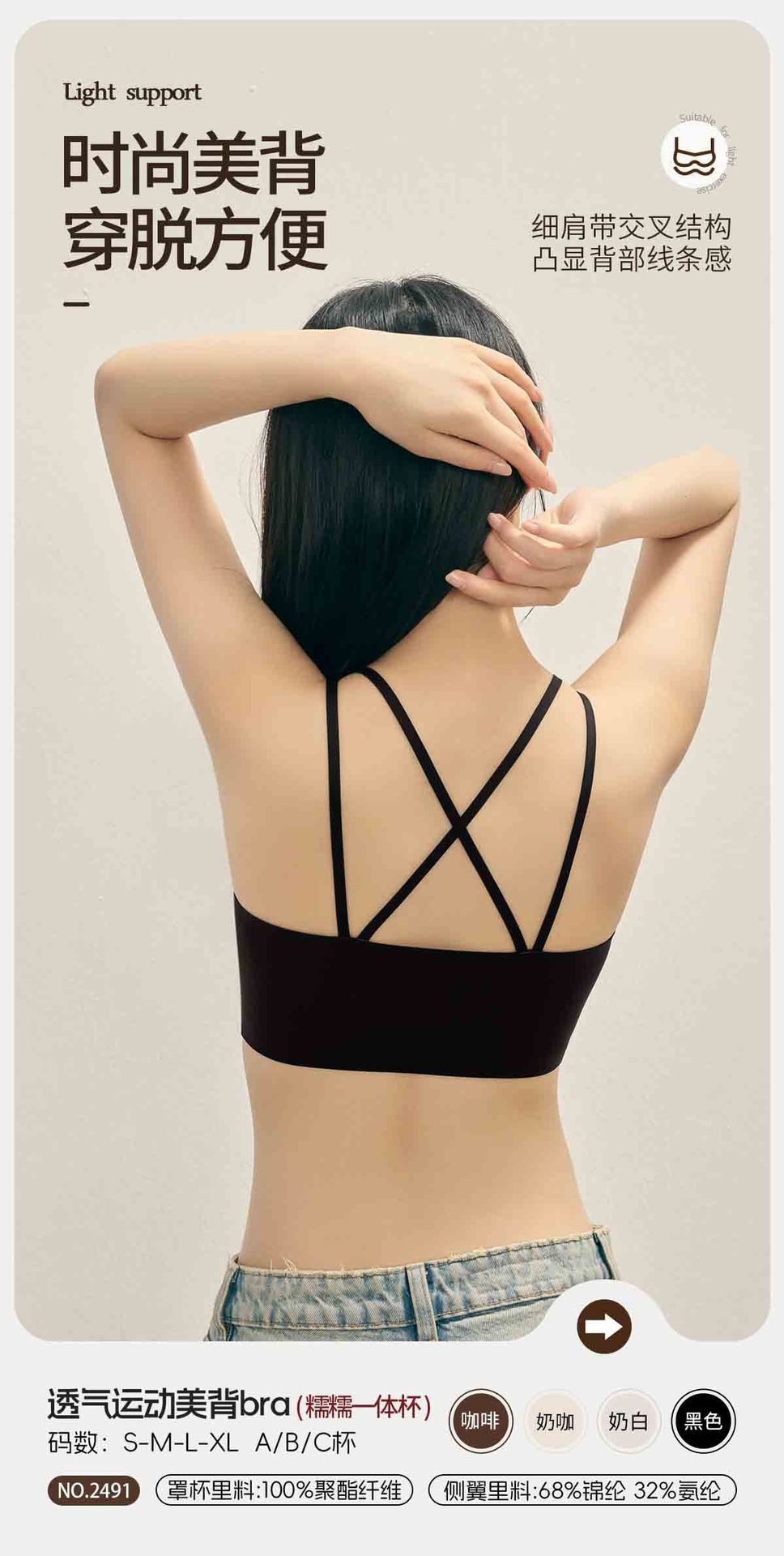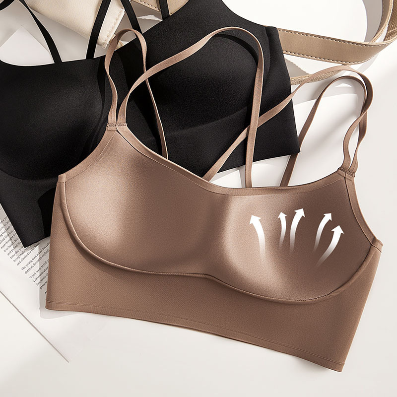 통기성 스포츠 아름다운 등 원활한 속옷 여성용 광택 원컵 푸시 업 크로스 백리스 섹시한 와이어 프리 브라