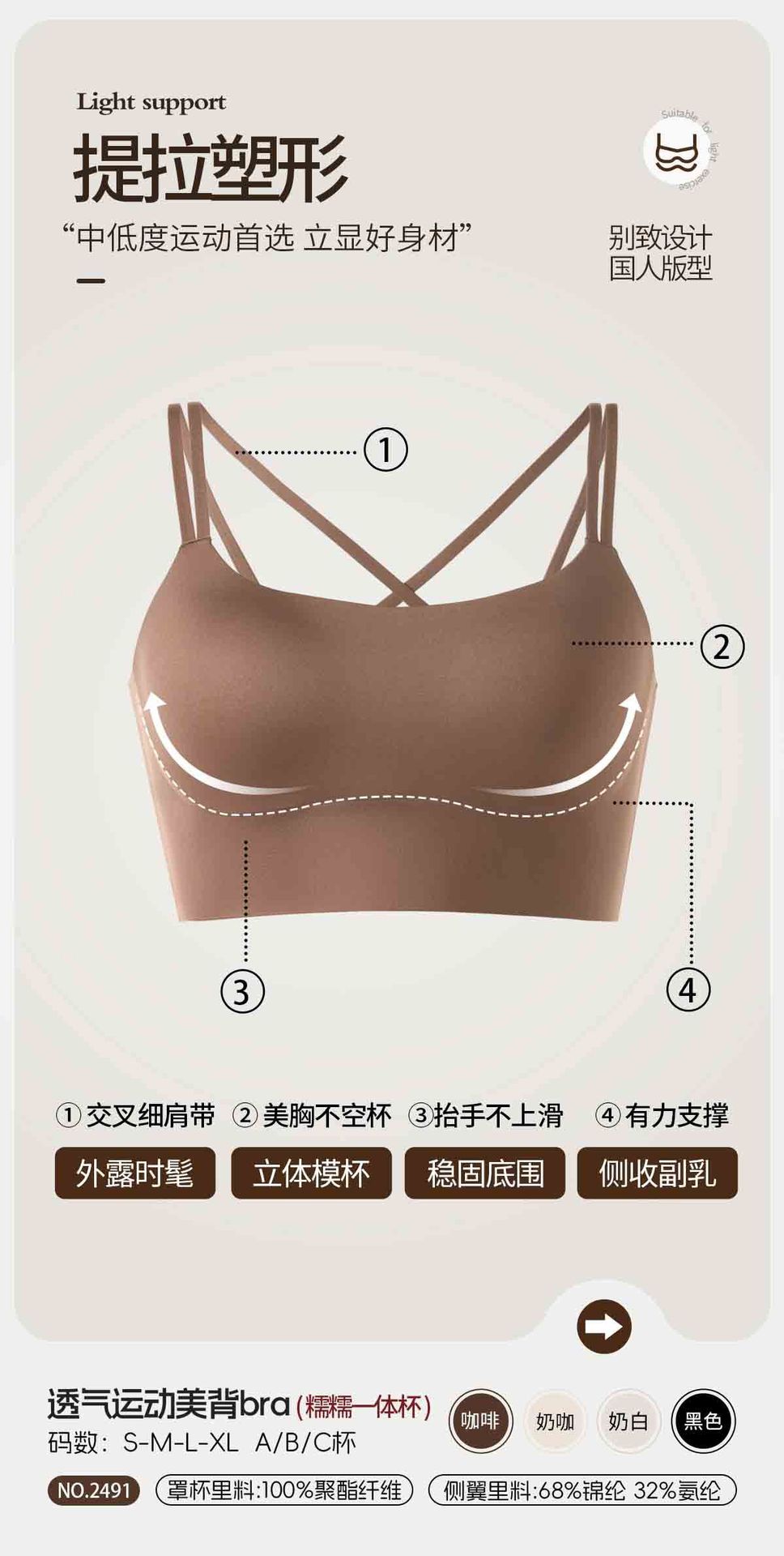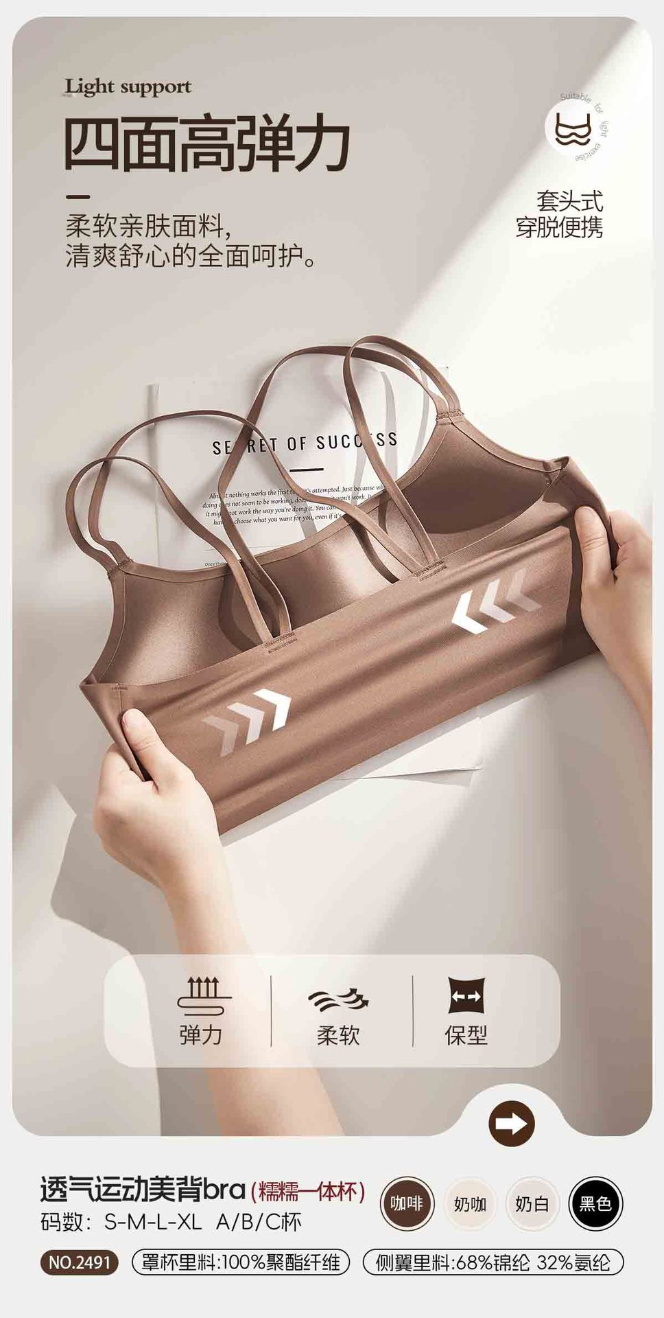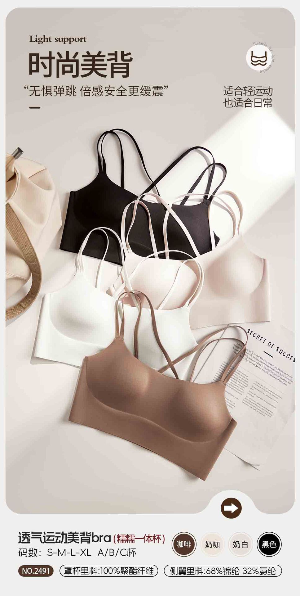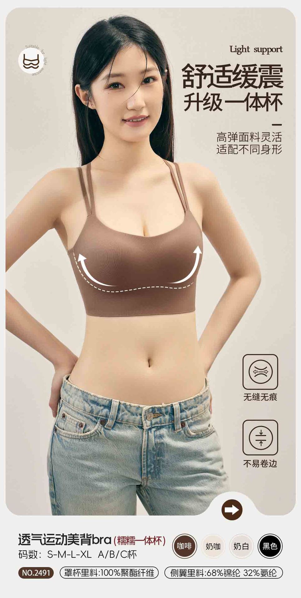 통기성 스포츠 아름다운 등 원활한 속옷 여성용 광택 원컵 푸시 업 크로스 백리스 섹시한 와이어 프리 브라