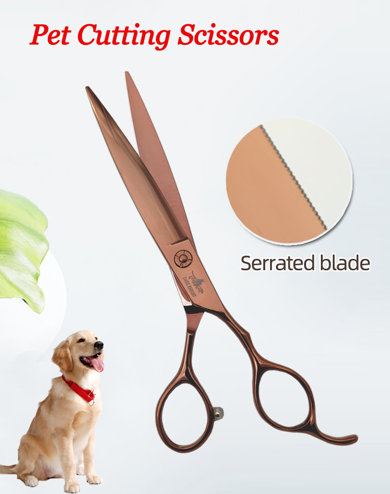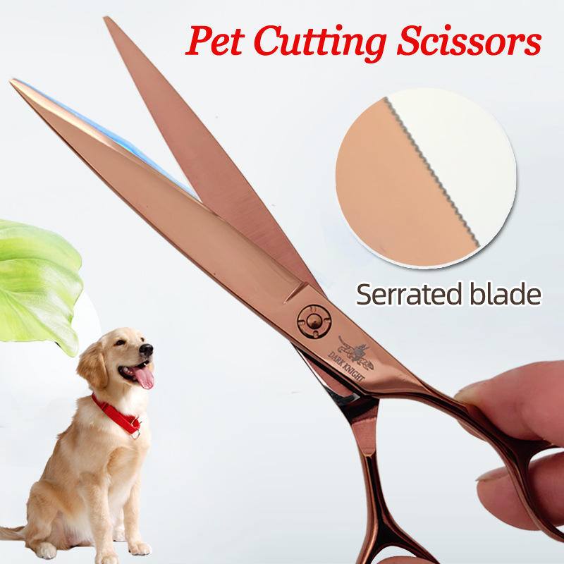 애완 동물 가위 7.5inch 대형 스트레이트 커팅 톱니 모양의 안티 러닝 헤어 전문 개 이발 및 트리밍 도구 청동