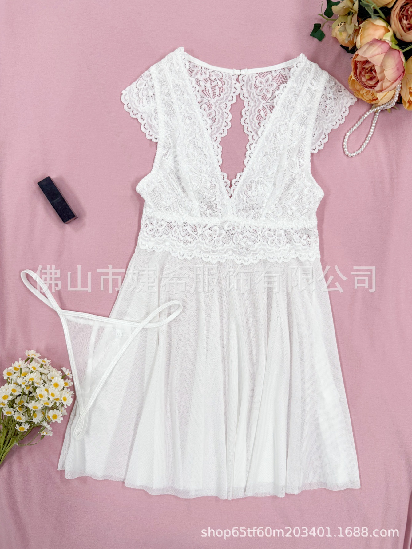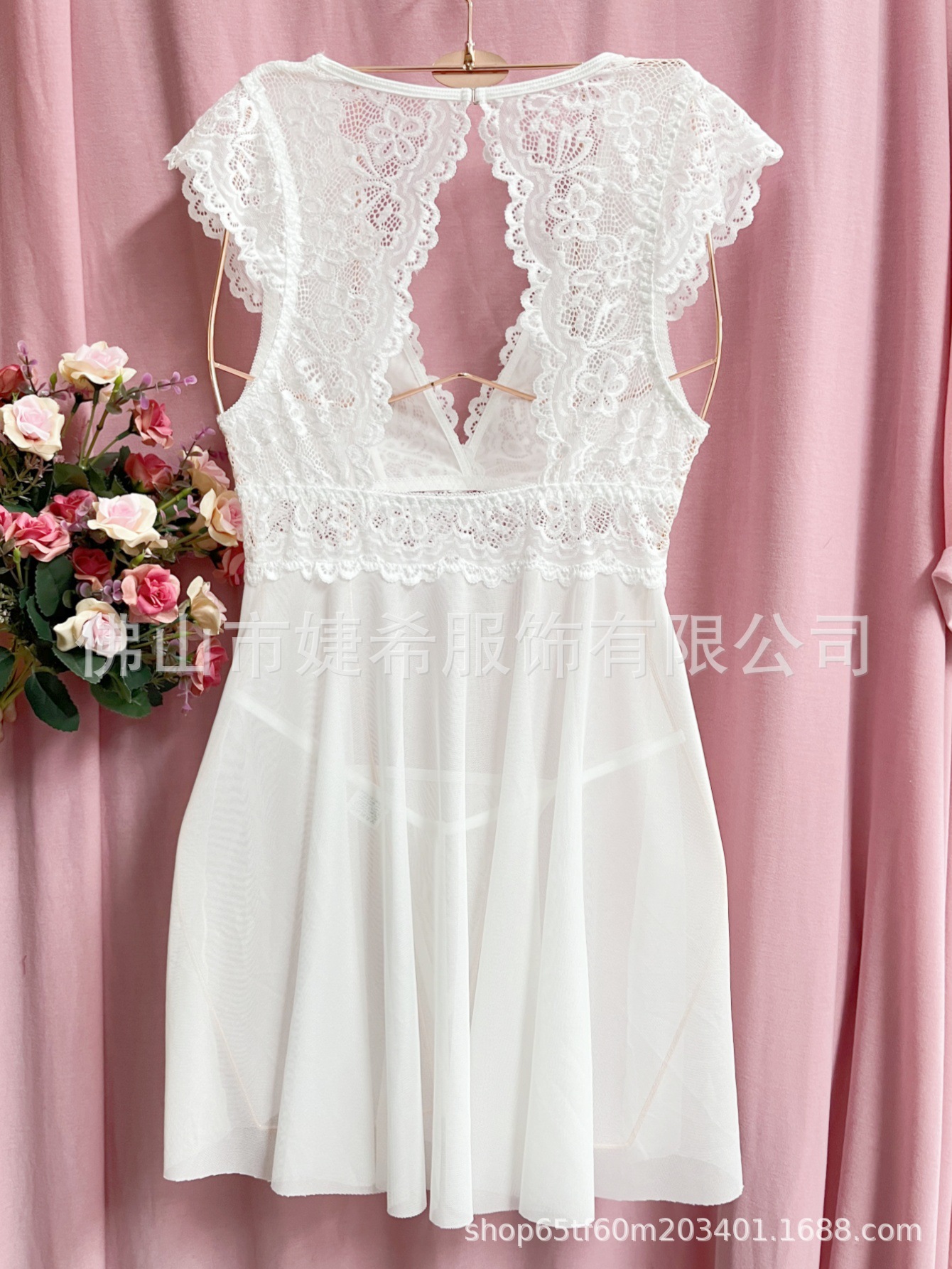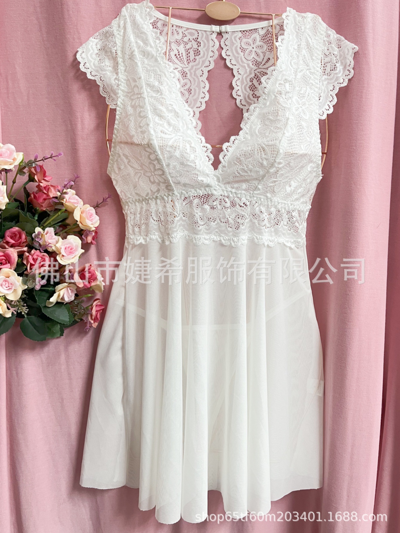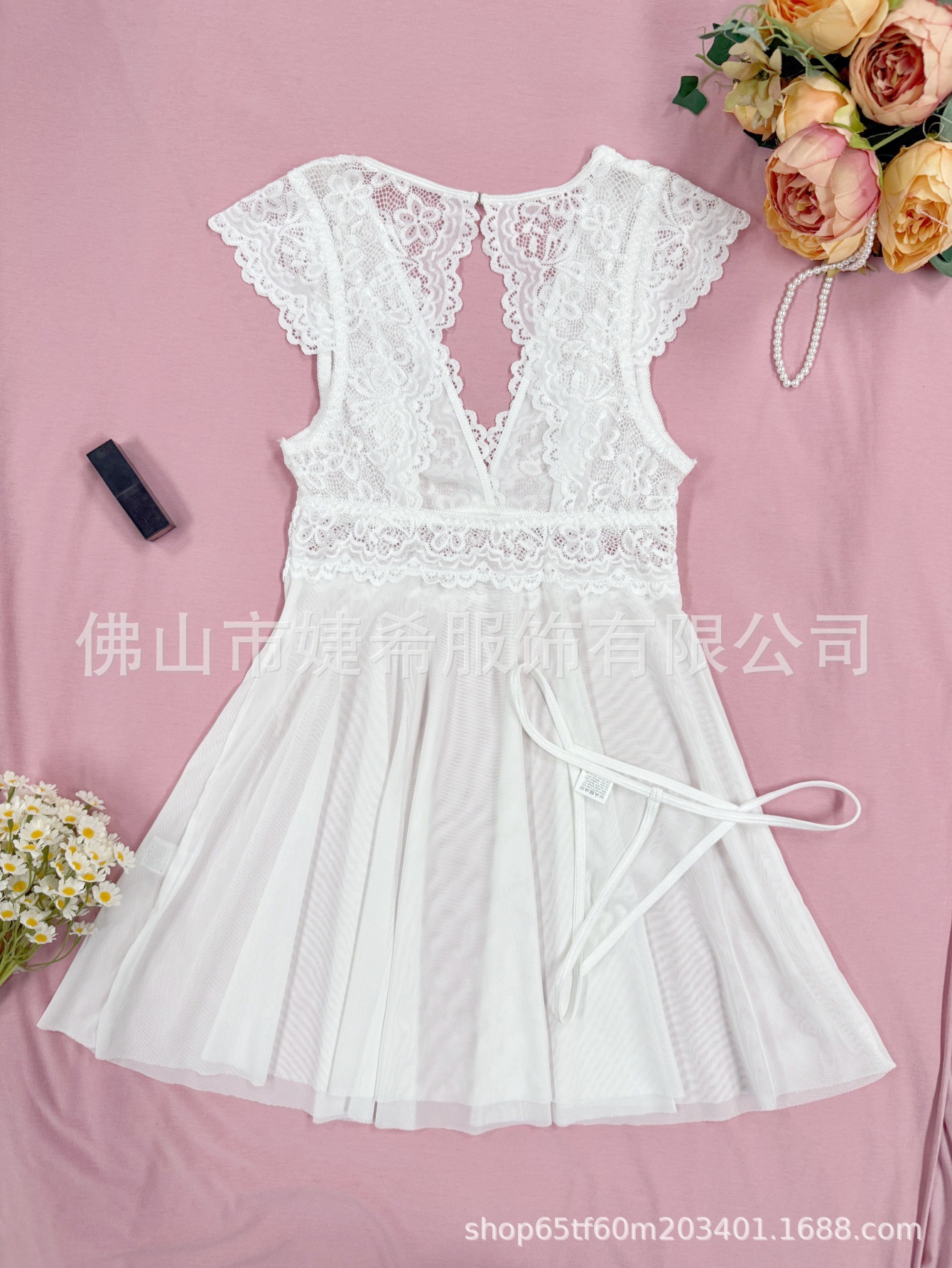 드롭 배송 서스펜더 드레스, 시스루 섹시 잠옷, 레이스 섹시 속옷, 국경 간 대외 무역 유럽 및 미국 딥 V 드레스