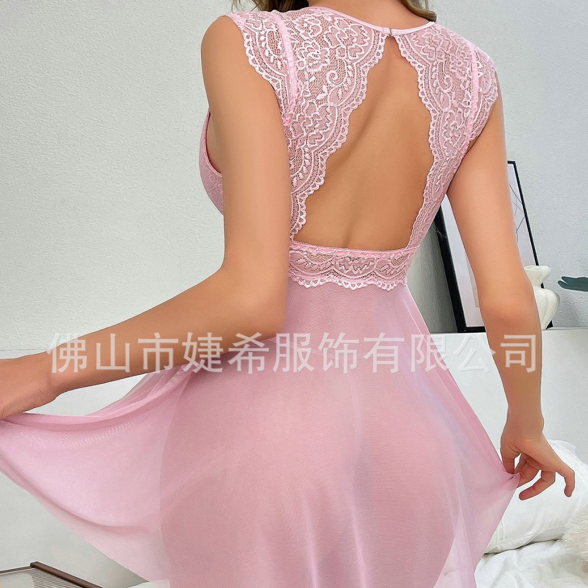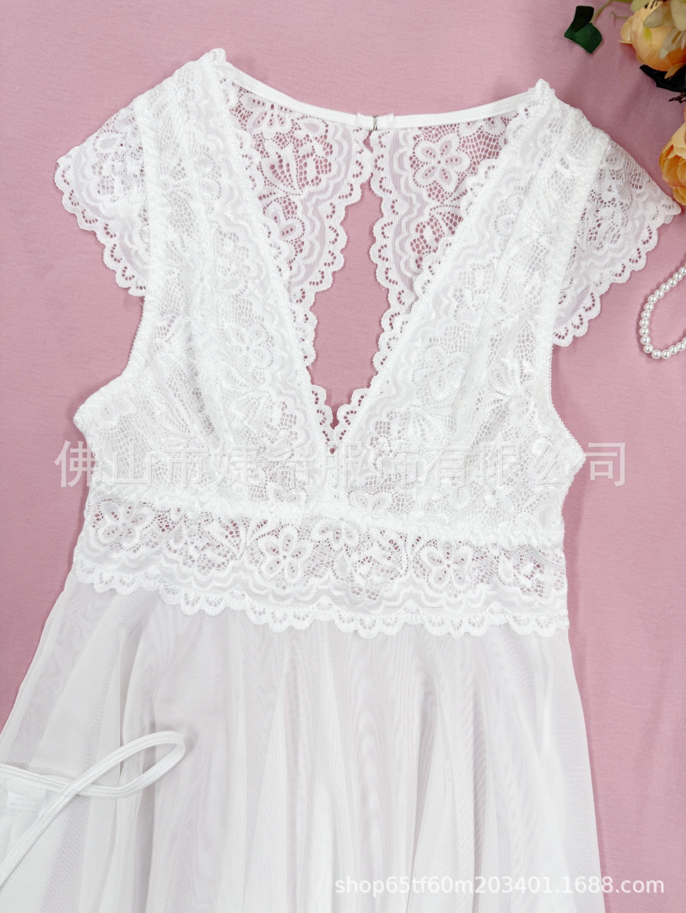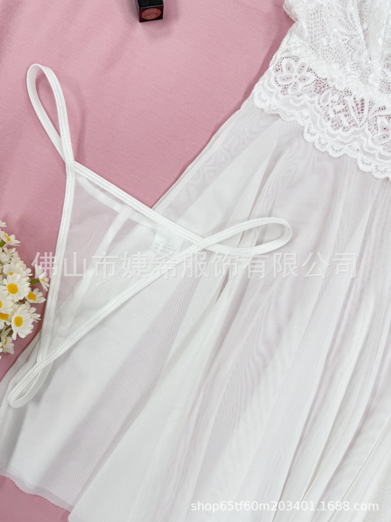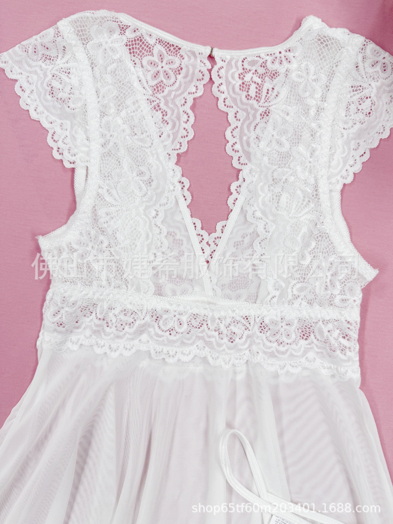 드롭 배송 서스펜더 드레스, 시스루 섹시 잠옷, 레이스 섹시 속옷, 국경 간 대외 무역 유럽 및 미국 딥 V 드레스