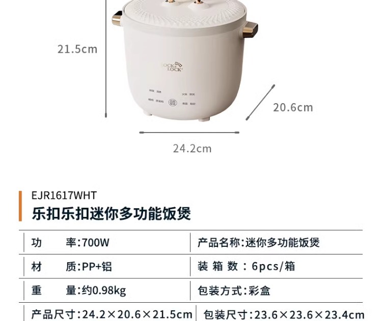 락앤락 다기능 밥솥 EJR1617WHT 미니 2.5리터 밥솥, 전골, 죽, 들러붙기 쉽지 않음
