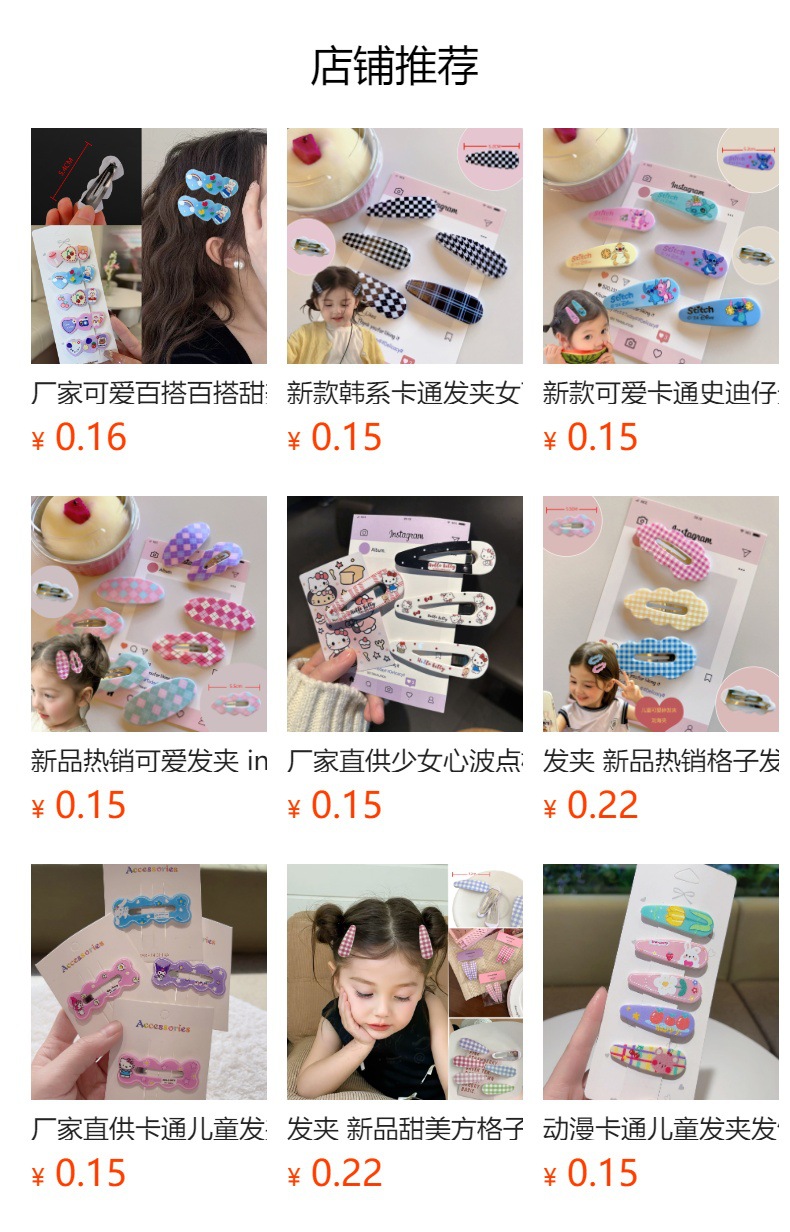 공장 직판 신상품 헤어핀 헤어 액세서리 달콤하고 귀여운 사이드 클립 소녀용 BB 클립 잔머리 집게핀 헤어핀 도매