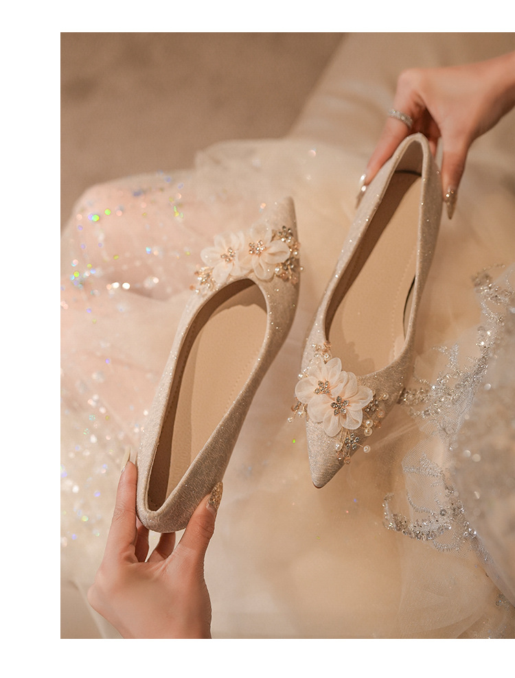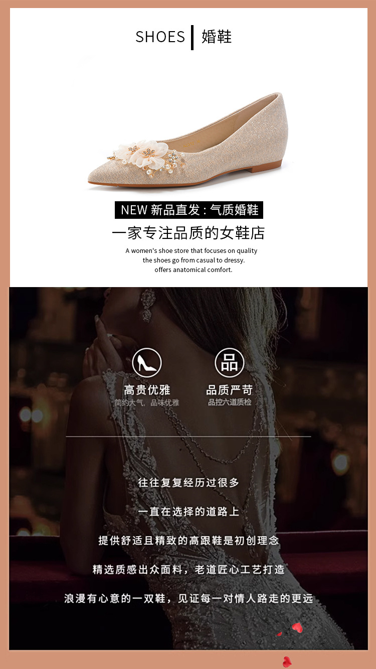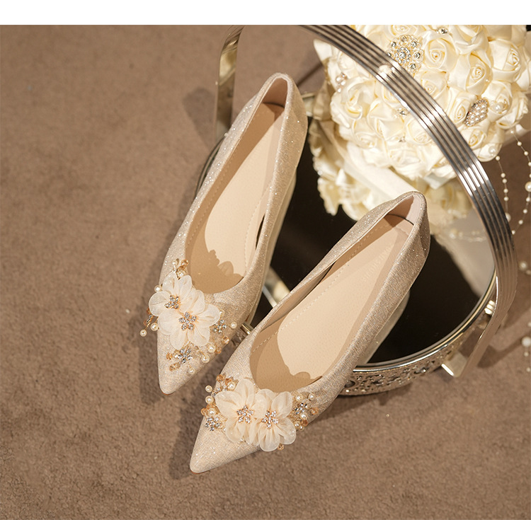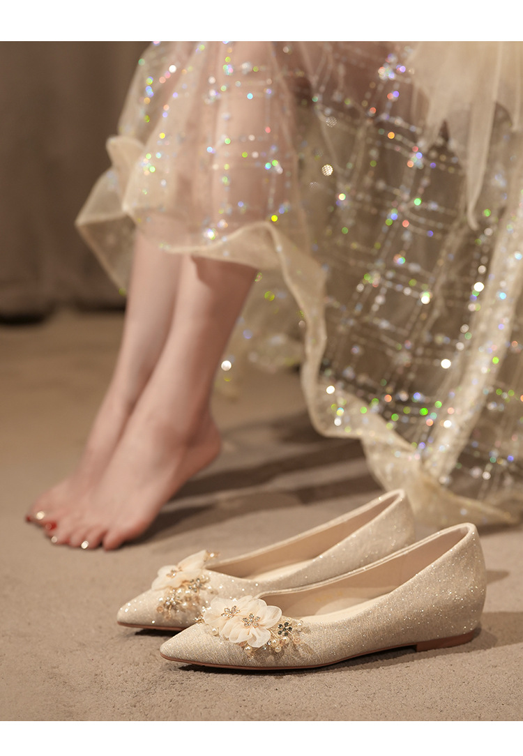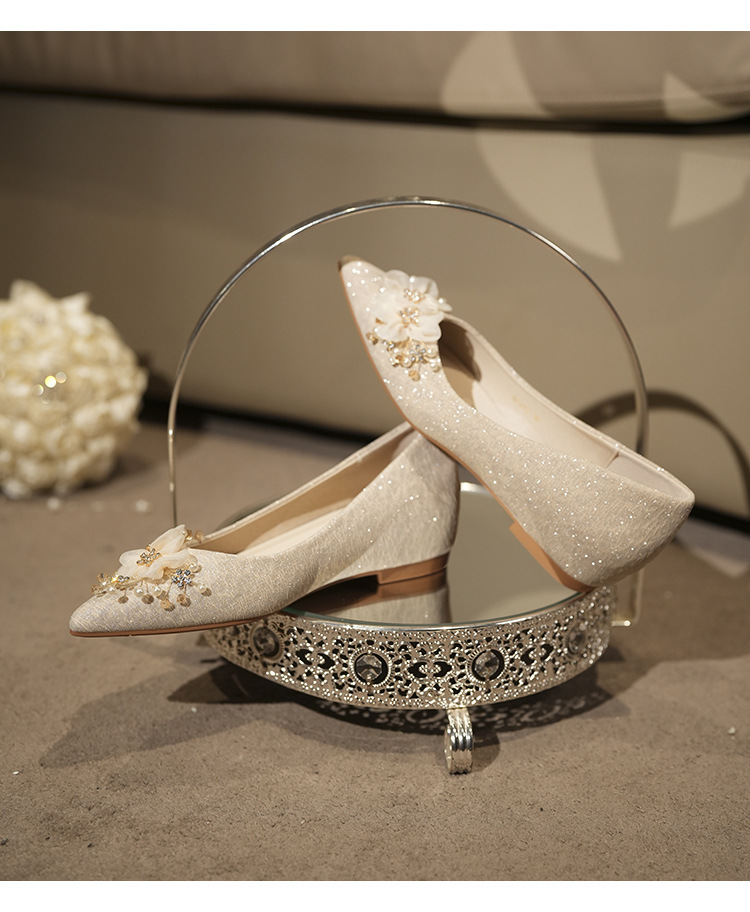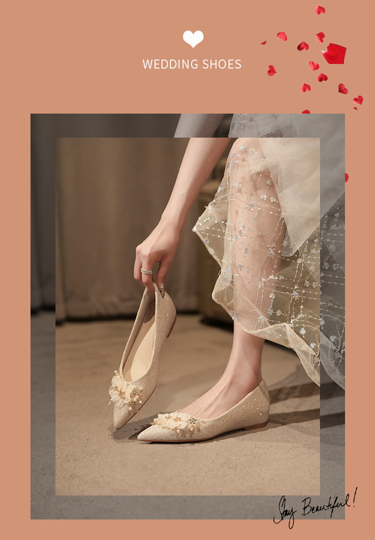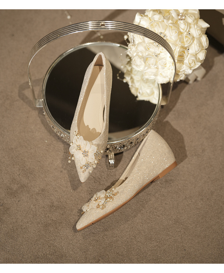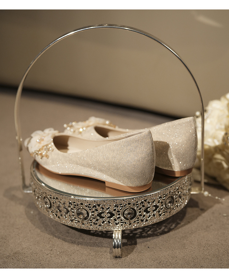 NZ312-55 재고 있음, 아름다운 플랫 슈즈, 여성용 수효 웨딩 드레스 겸용 웨딩 슈즈, 대형 사이즈, 낮은 굽 여성용 슈즈
