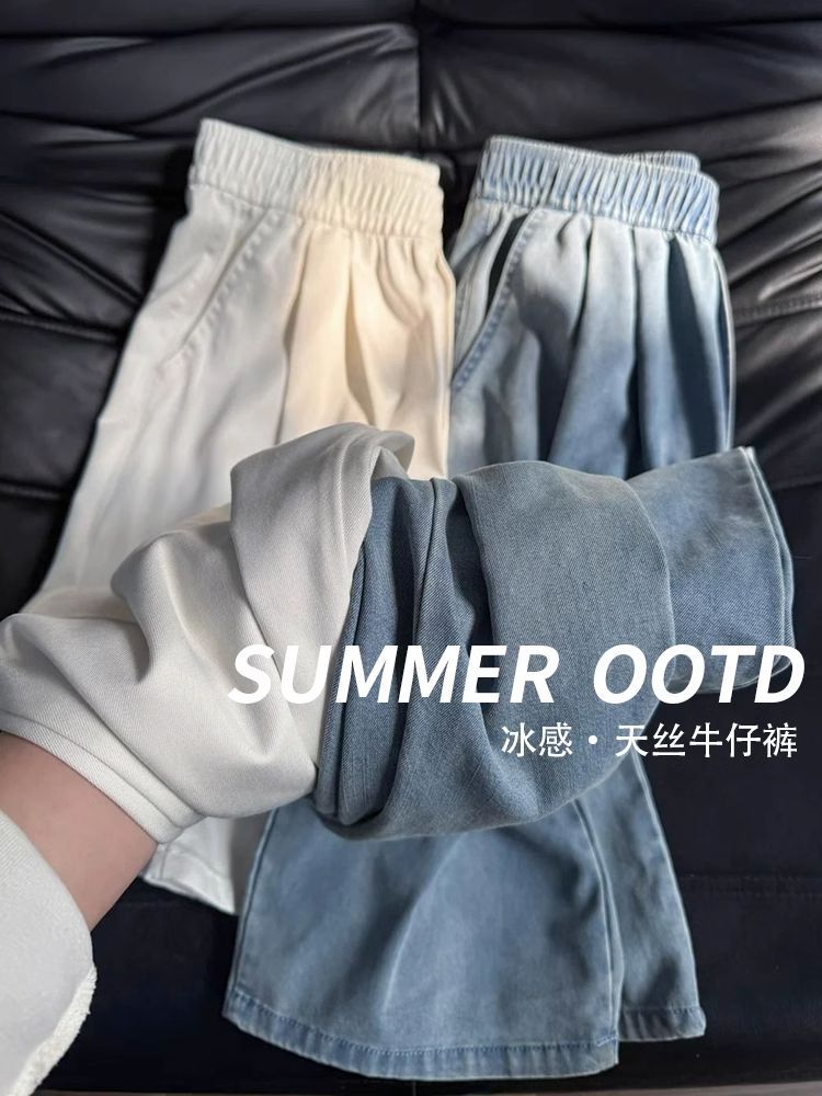 여성용 텐셀 데님 팬츠 2026년 신상 여름 얇은 와이드 레그 루즈핏 캐주얼 슬림핏 아이스 실크 스트레이트 팬츠