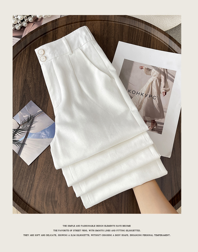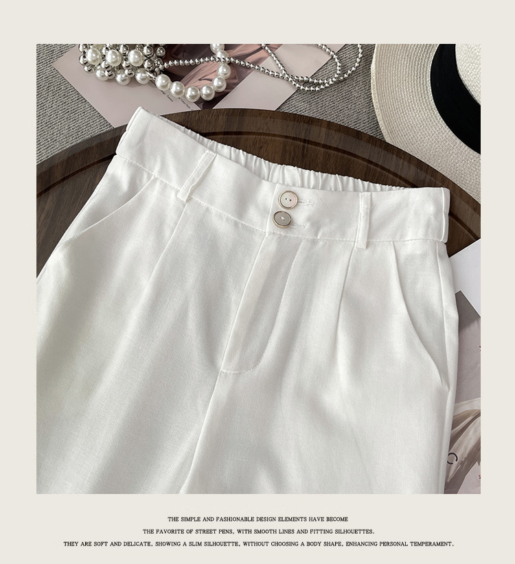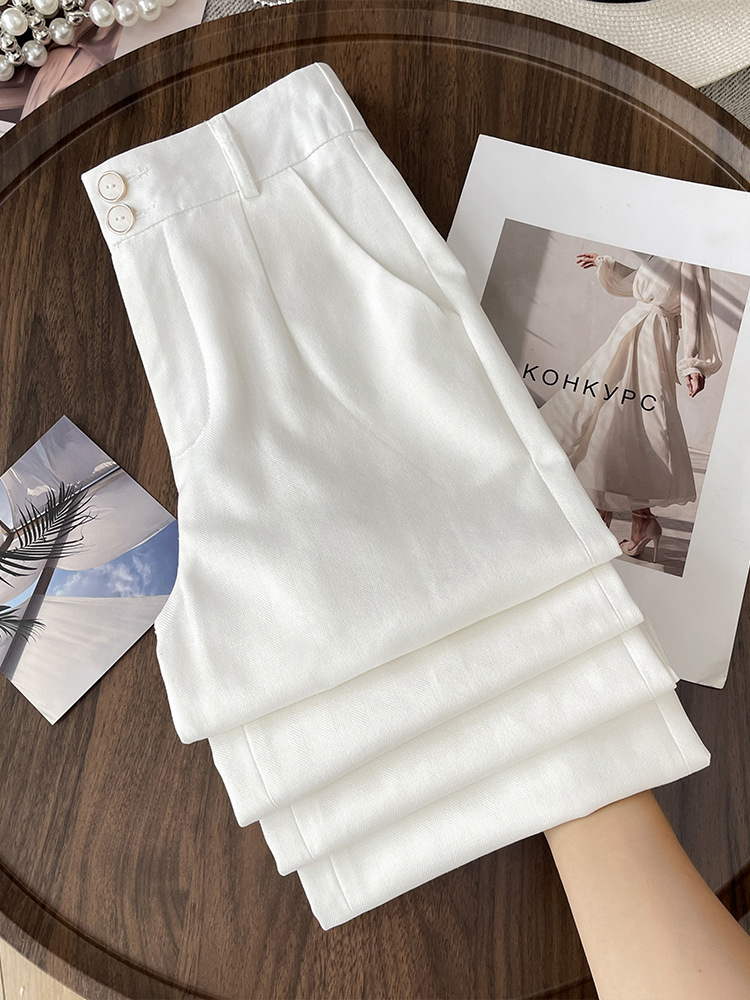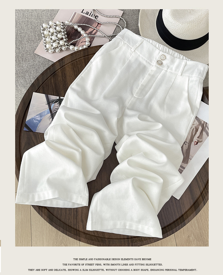 2025 새로운 도착 화이트 텐셀 리넨 와이드 레그 팬츠 여성용 여름 얇은 안티 링클 코튼 및 리넨 팬츠 드롭 아이스 실크 팬츠