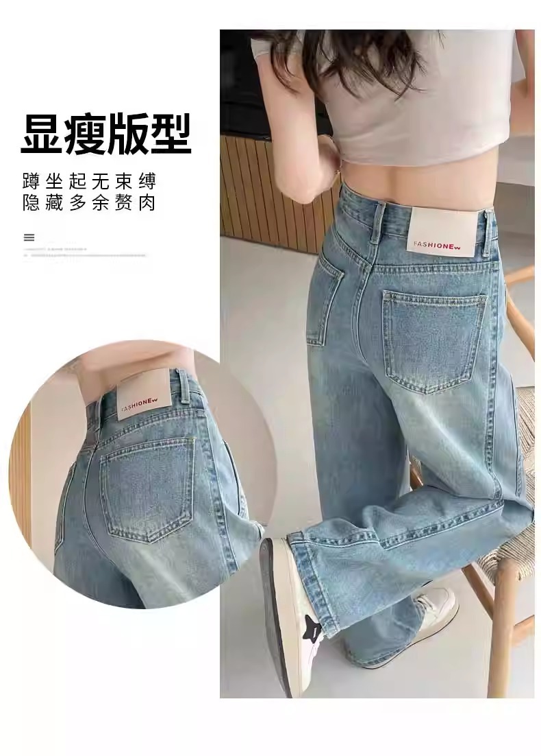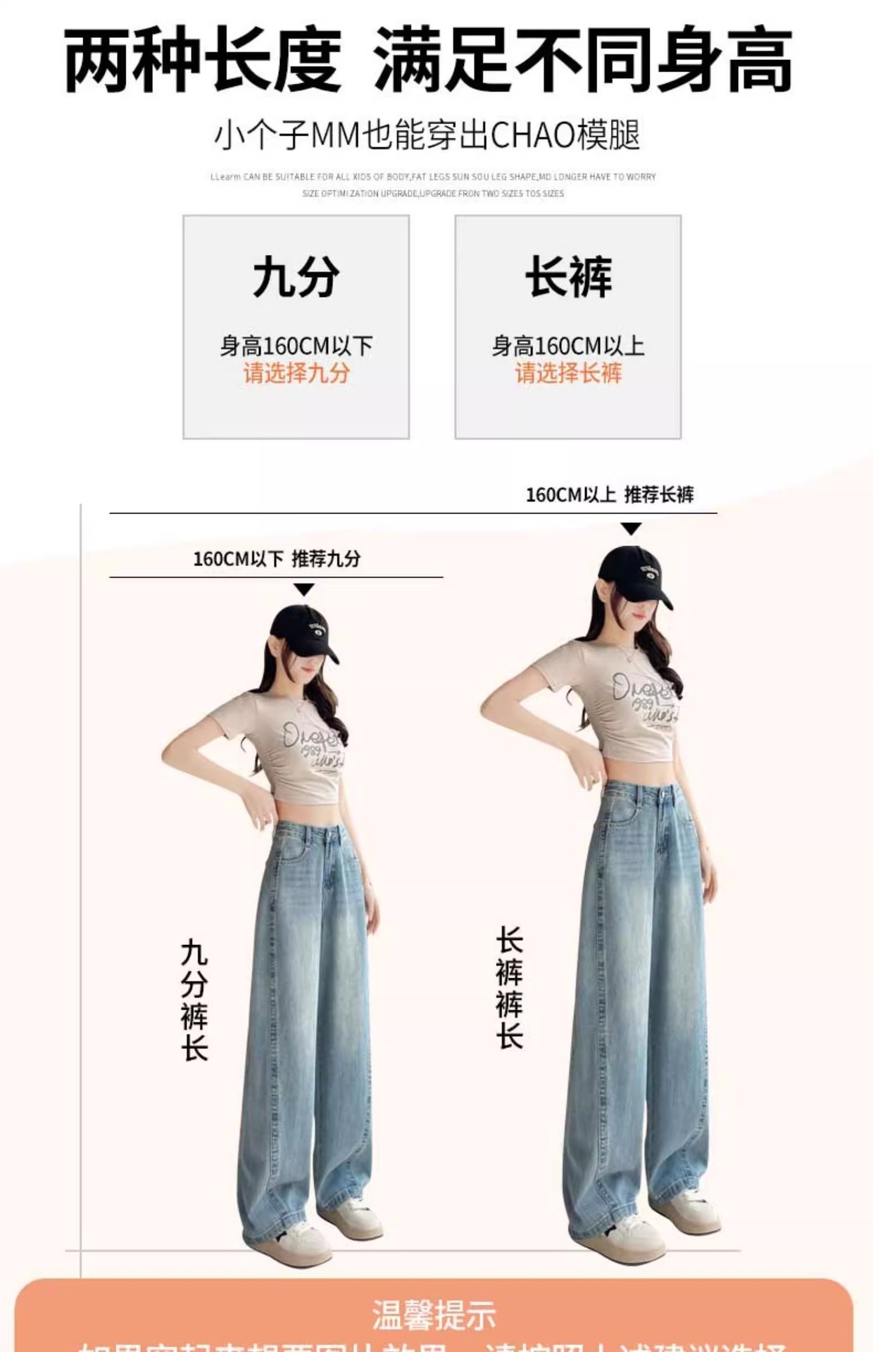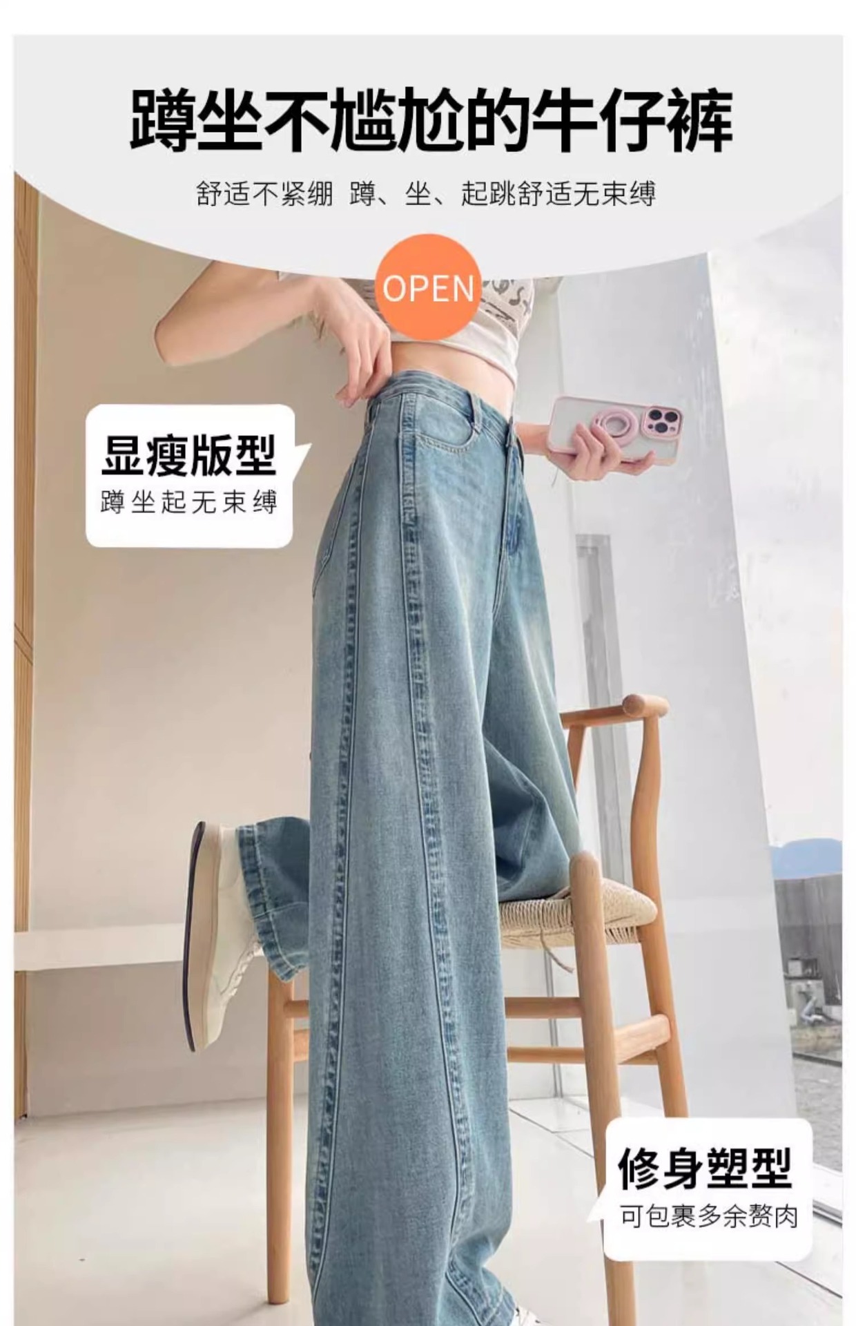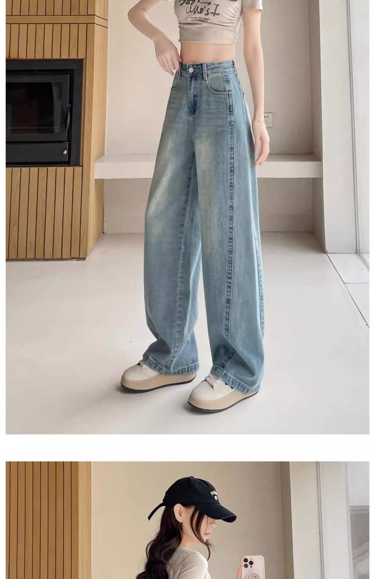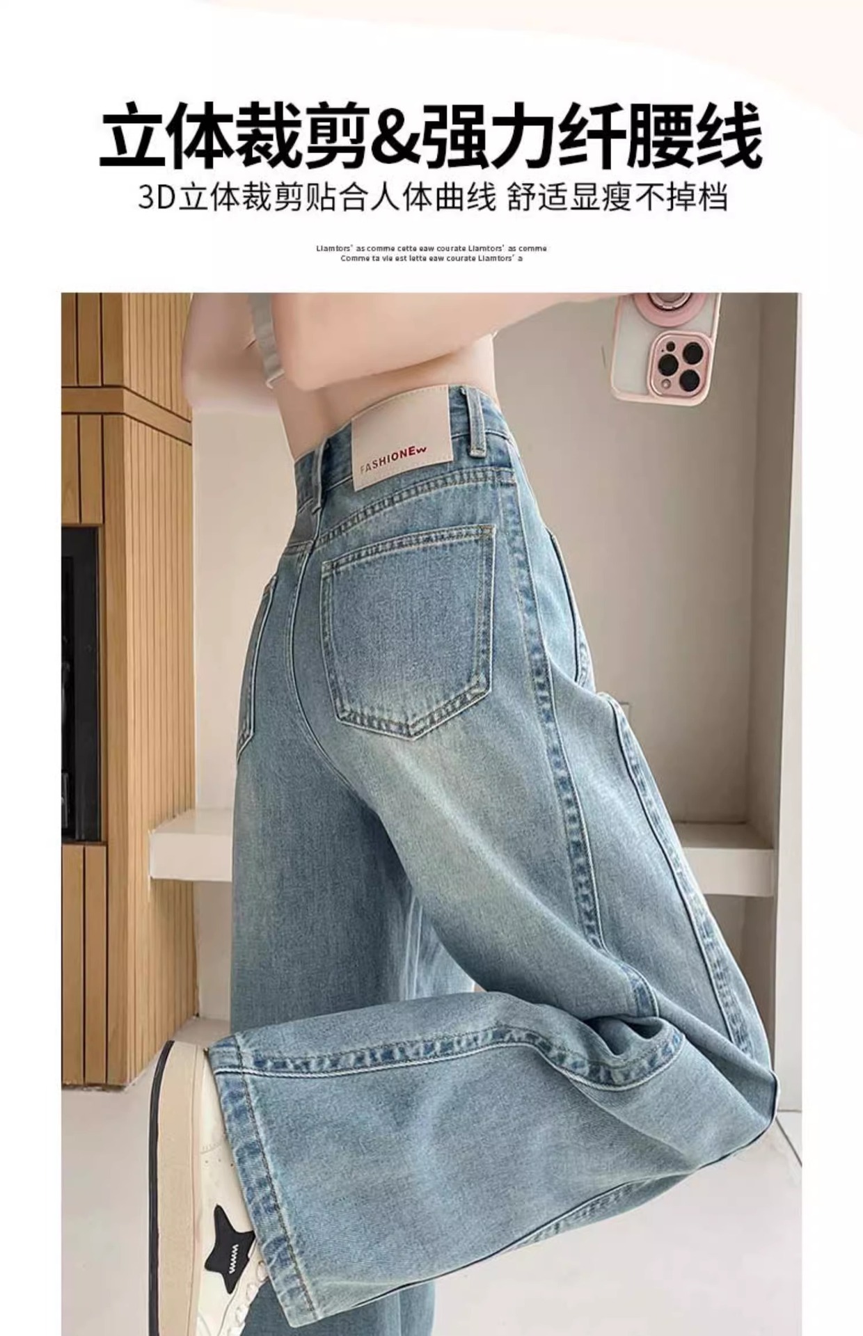 데님 Scimitar 넓은 다리 바지 여성 수정 다리 배 모양의 봄 작은 여성을위한 약간 통통한 높은 허리 느슨한 바지