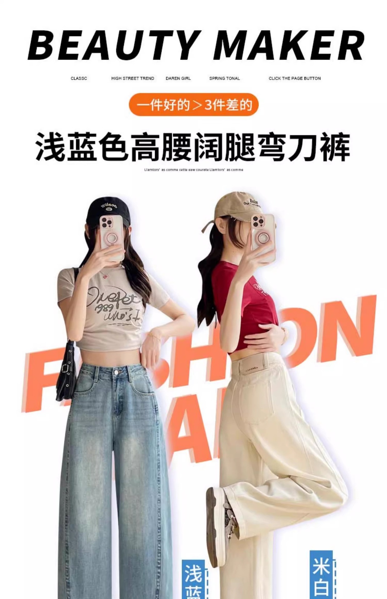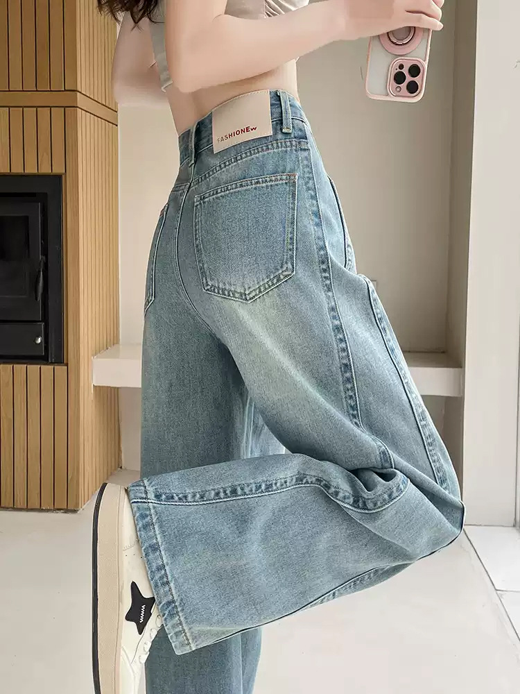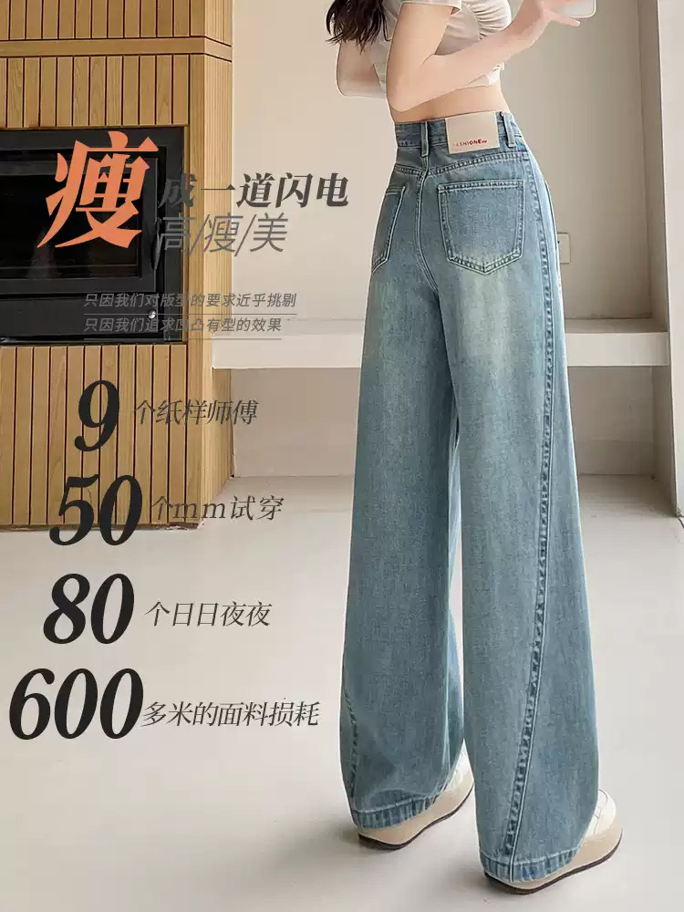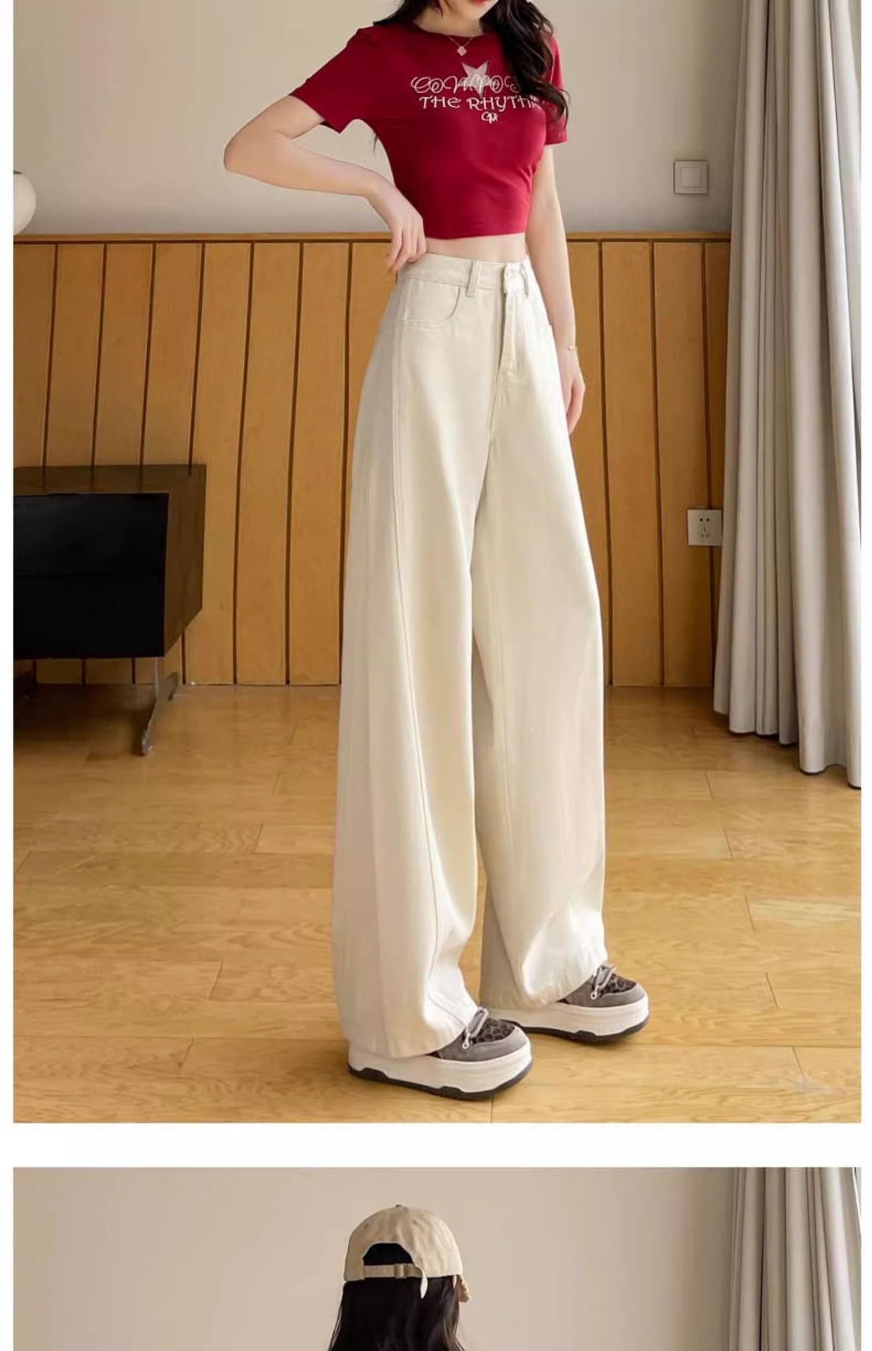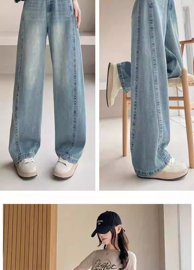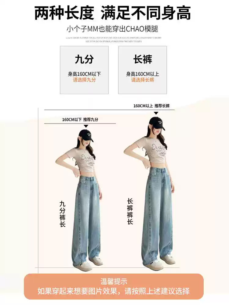 데님 Scimitar 넓은 다리 바지 여성 수정 다리 배 모양의 봄 작은 여성을위한 약간 통통한 높은 허리 느슨한 바지