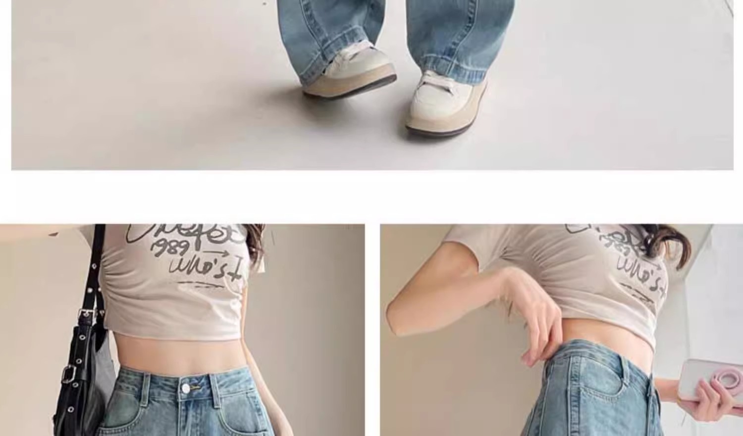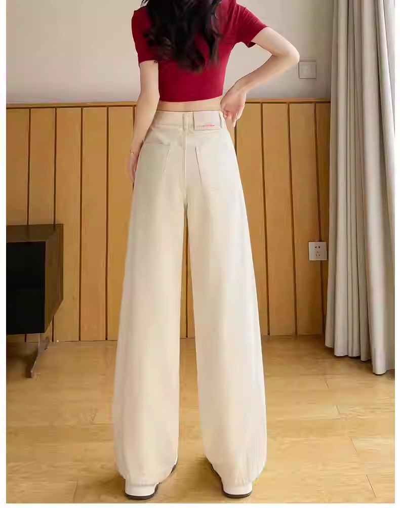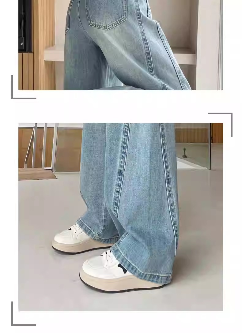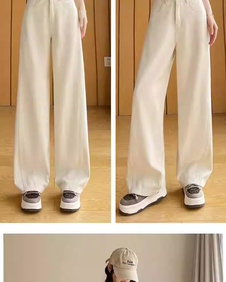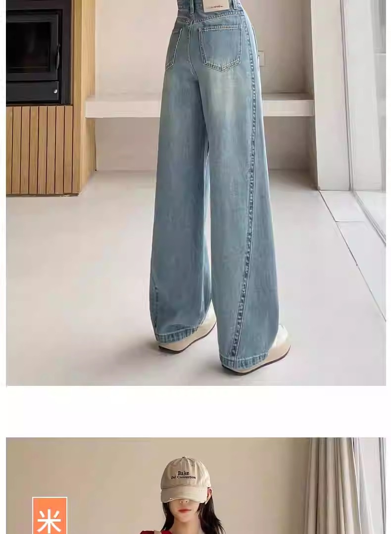 데님 Scimitar 넓은 다리 바지 여성 수정 다리 배 모양의 봄 작은 여성을위한 약간 통통한 높은 허리 느슨한 바지