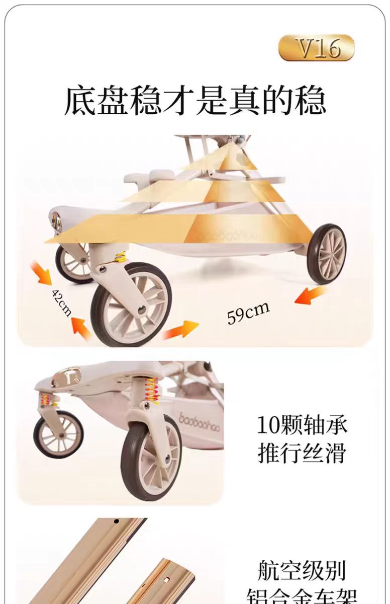아기 Haoliu 아기 아티팩트 V16 경량 접이식 높은 풍경 거짓말 어린이 양방향 걷는 아기 트롤리