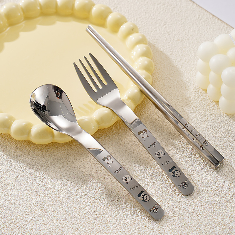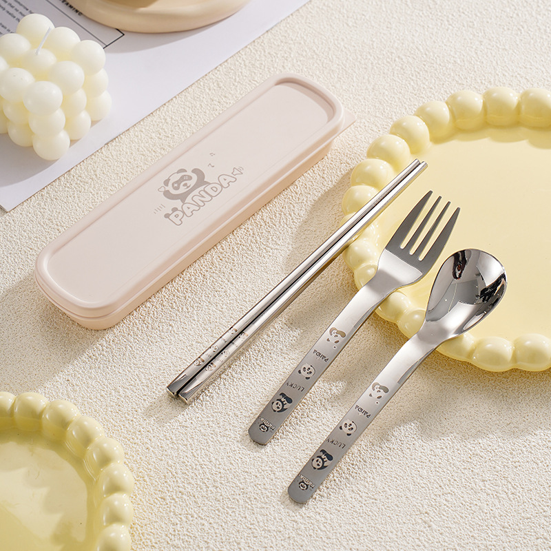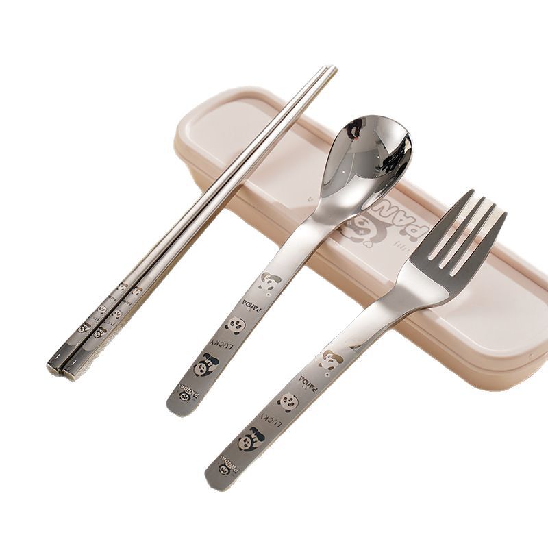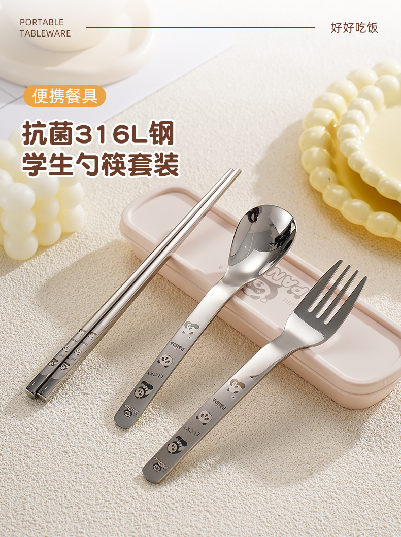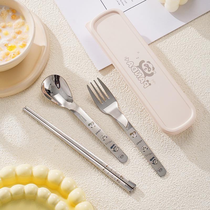 316 스테인레스 스틸 스푼과 포크 젓가락 식기 세트 창의적인 만화 작업 야외 휴대용 어린이 숟가락 포크를 먹고