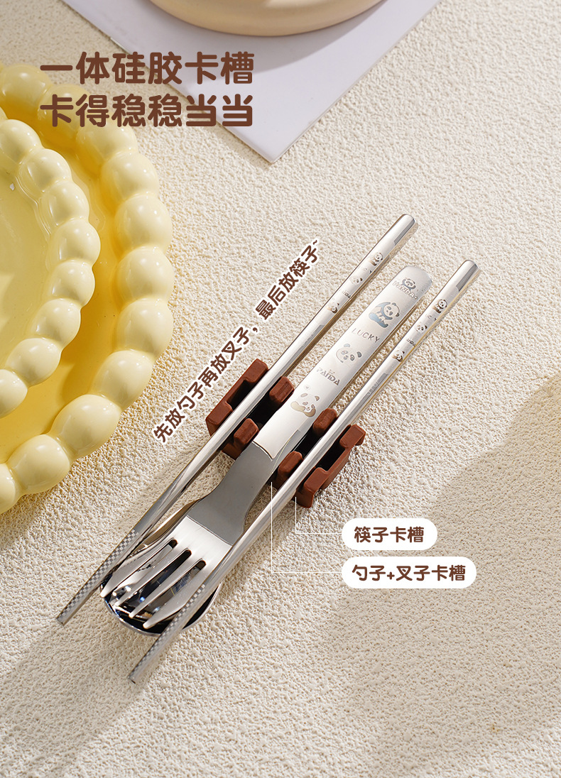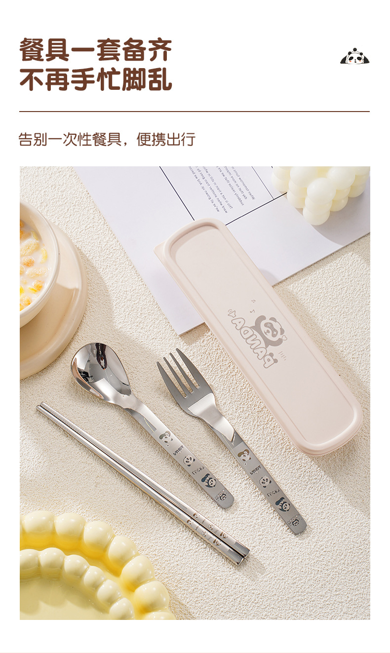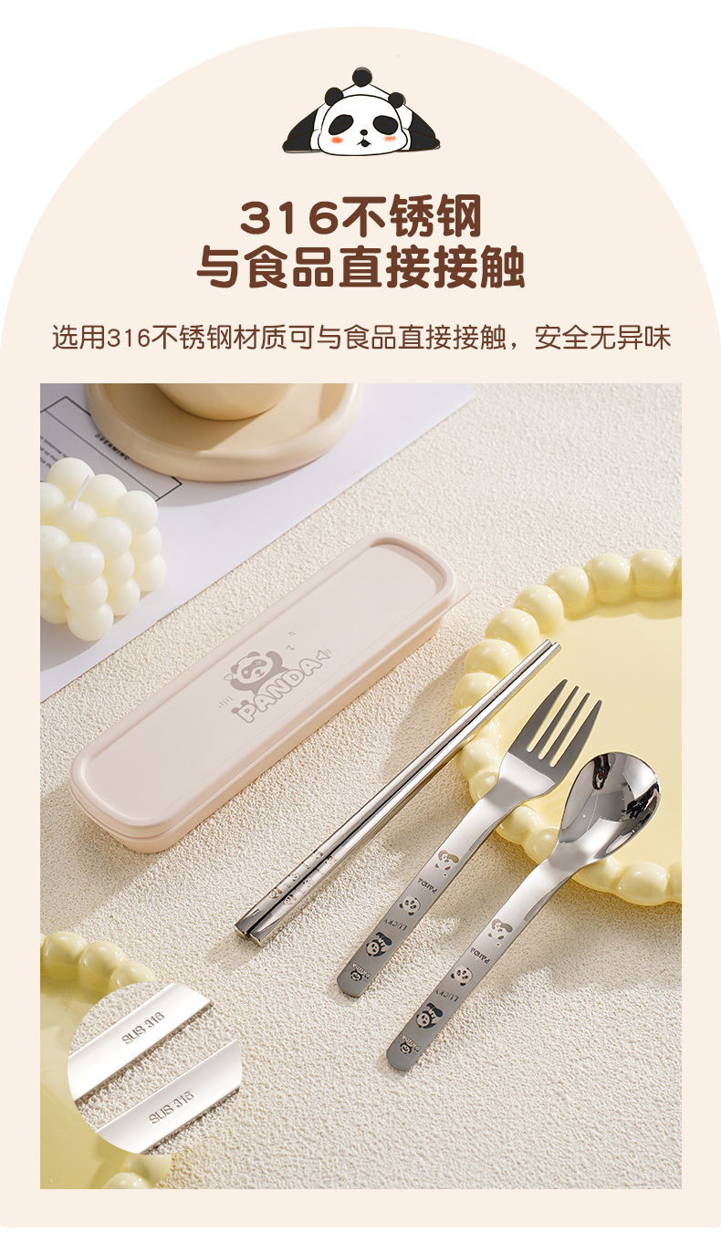 316 스테인레스 스틸 스푼과 포크 젓가락 식기 세트 창의적인 만화 작업 야외 휴대용 어린이 숟가락 포크를 먹고