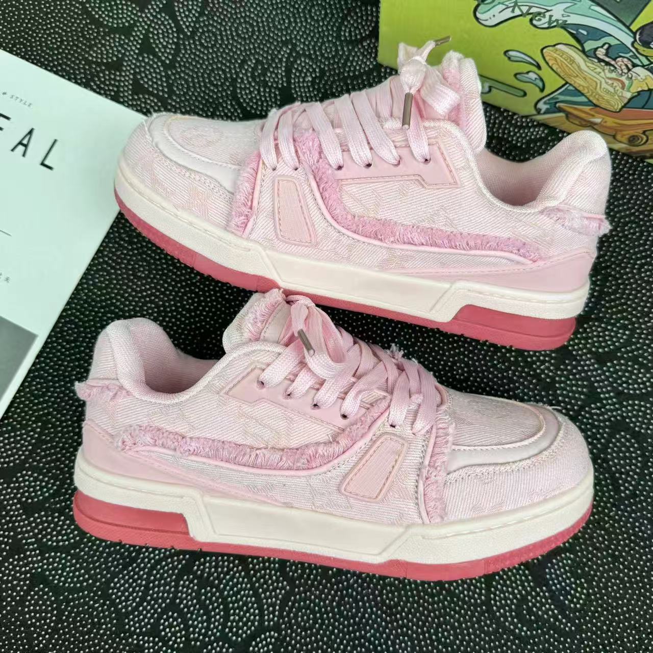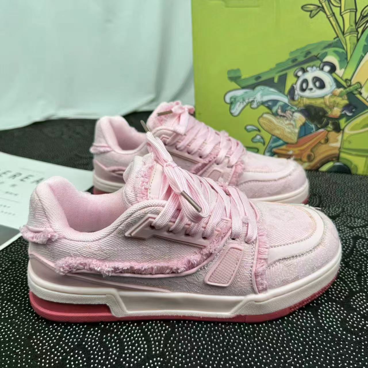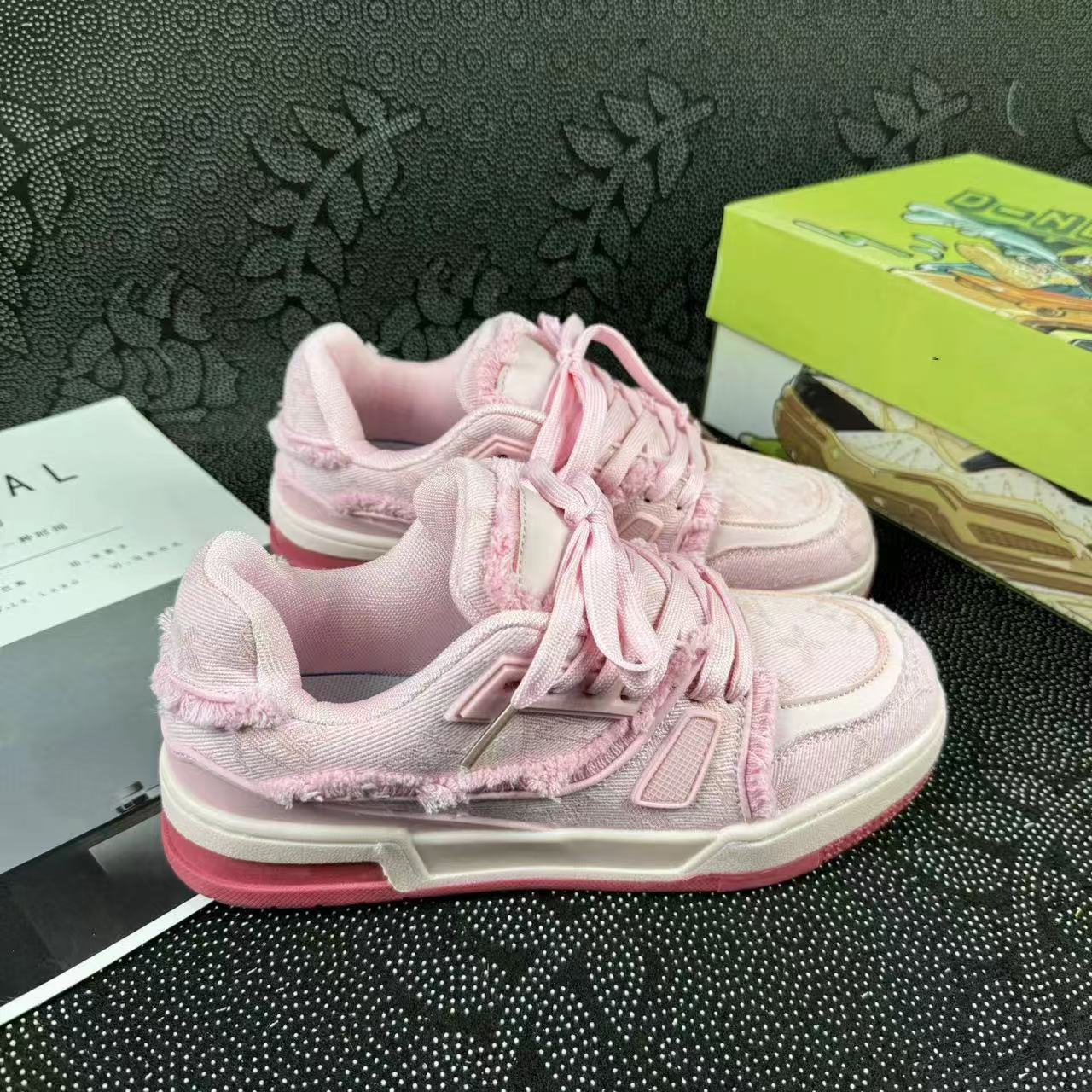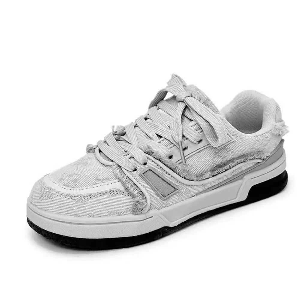 2025 재고 커플 틈새 스포츠 캐주얼 운동화 남성 여름 회색 데님 구슬 빈티지 빵 신발