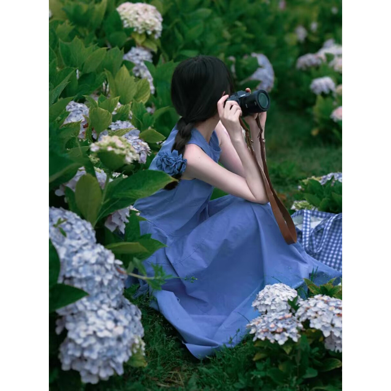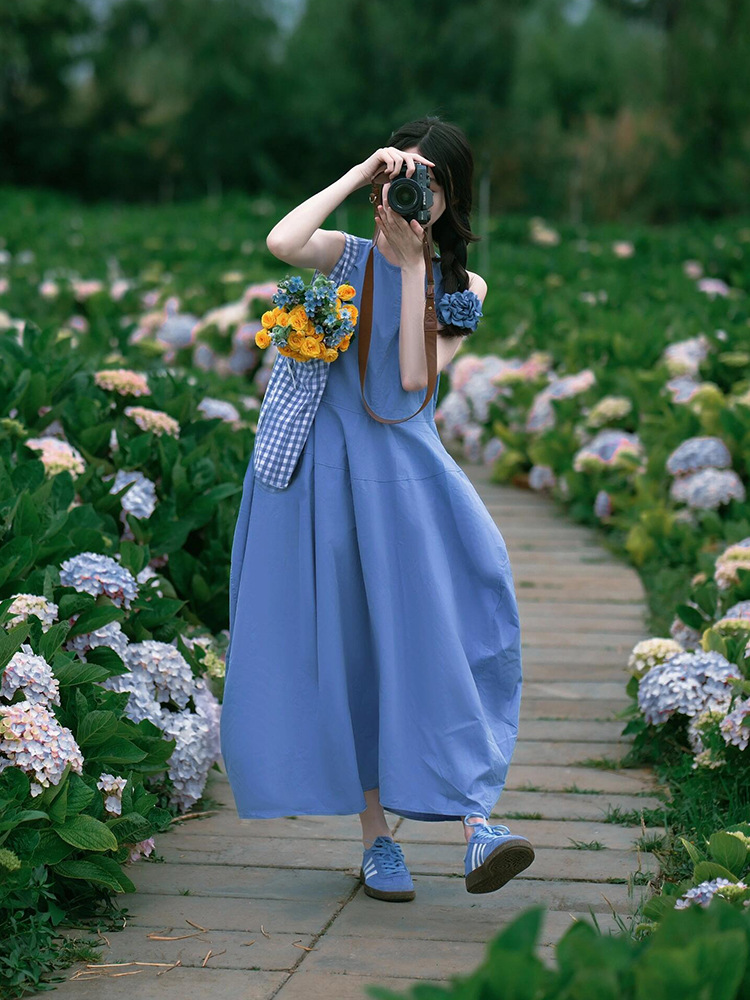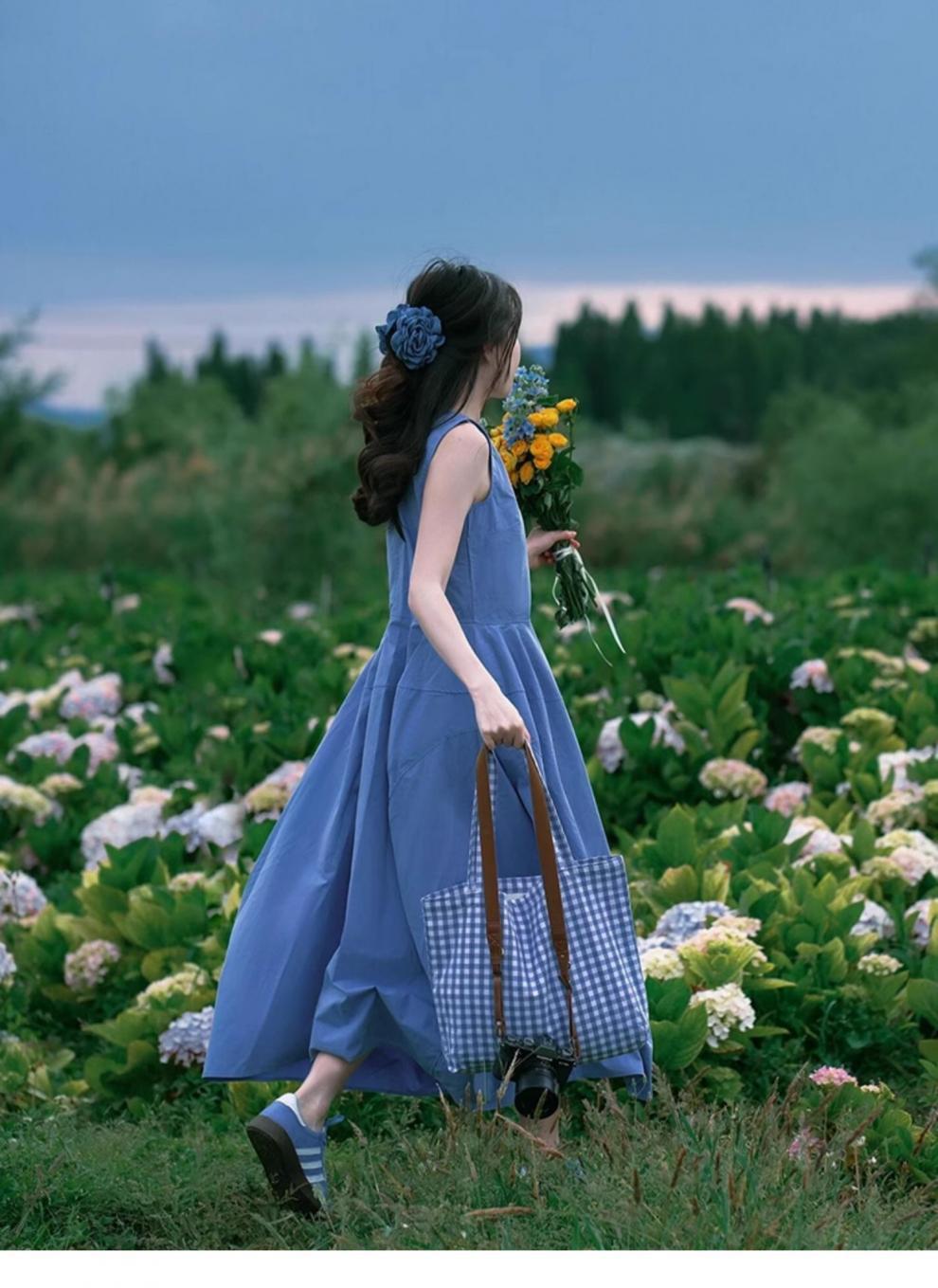 윈난 달리 에르 하이 호수 여행복 여성복 도파민 섬 블루 싼야 해변 홀리데이 비치 원피스