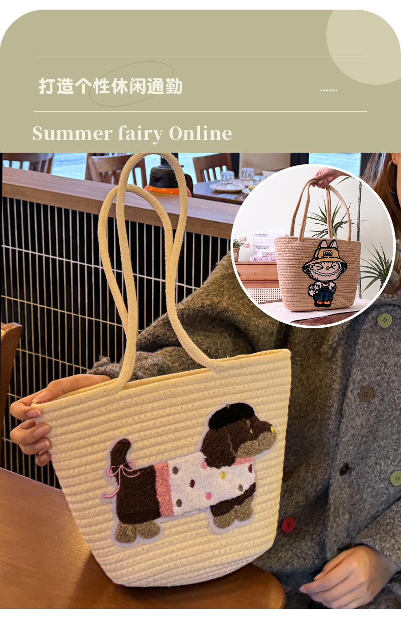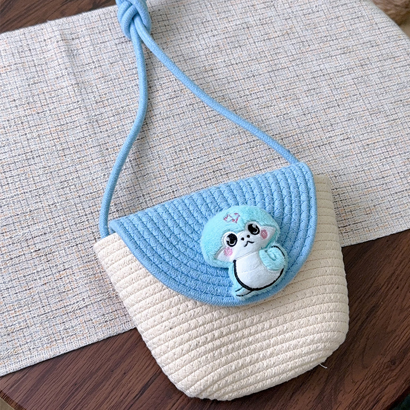 봄과 여름 새로운 한국어 패션 만화 어린이 가방 인터넷 연예인 입체 메신저 가방 밀짚 가방 인터넷 연예인 여성 동전 지갑