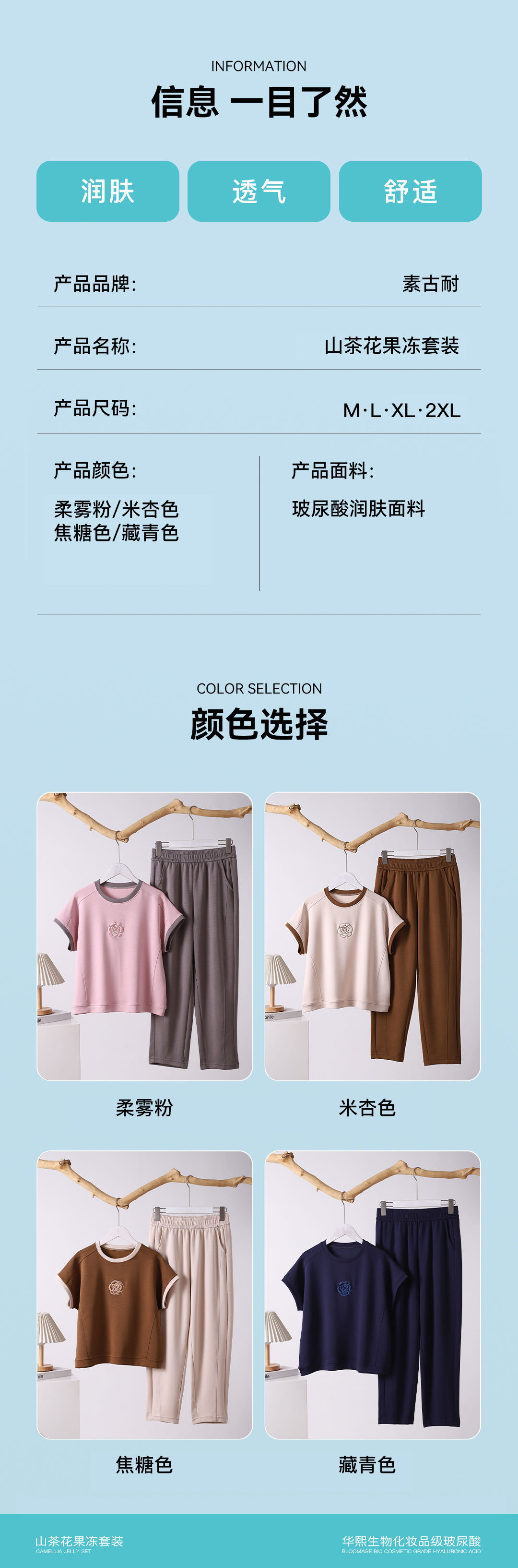 Huaxi Hyaluronic Acid 스포츠 세트 스킨 케어 등급 반팔 동백 젤리 세트 캐주얼 고기 커버 클래식 투피스 세트