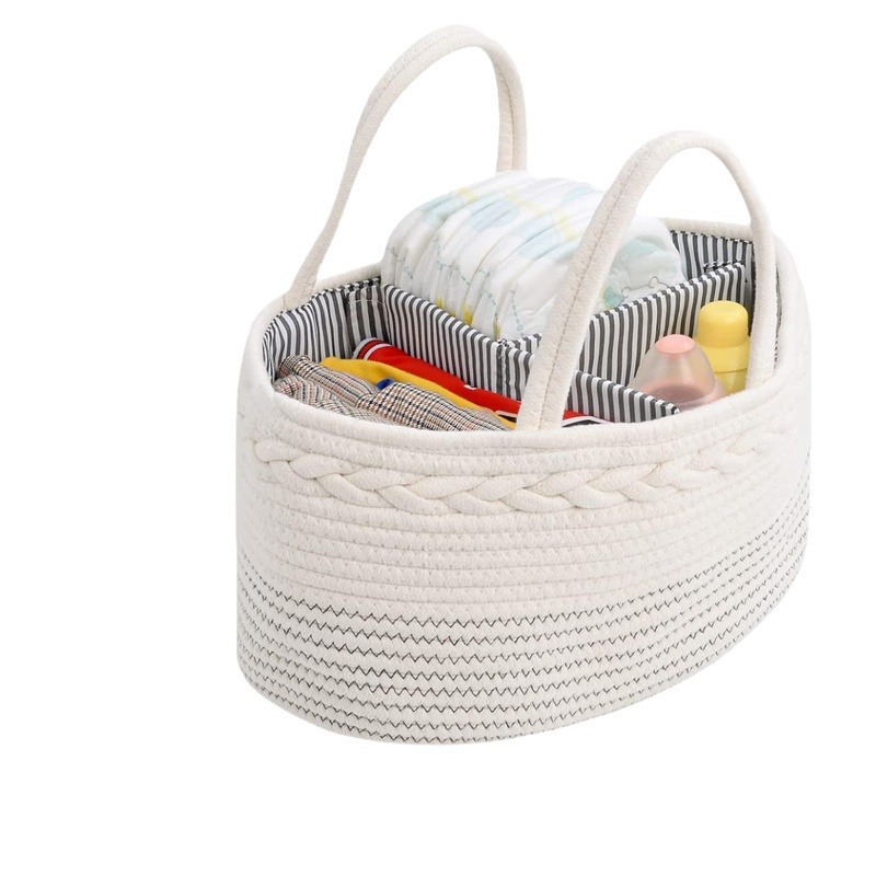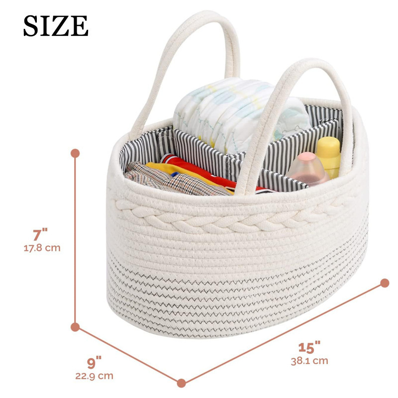 손잡이가있는 짠 기저귀 바구니 분리형 기저귀 바구니 토트 백 자동차 기저귀 보관 보육 아기 선물 바구니