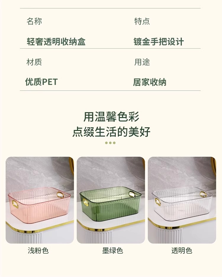 경량 고급 PET 데스크탑 화장품 수납함 아크릴 침실 의류 잡화 티 테이블 간식 수납 바구니 도매