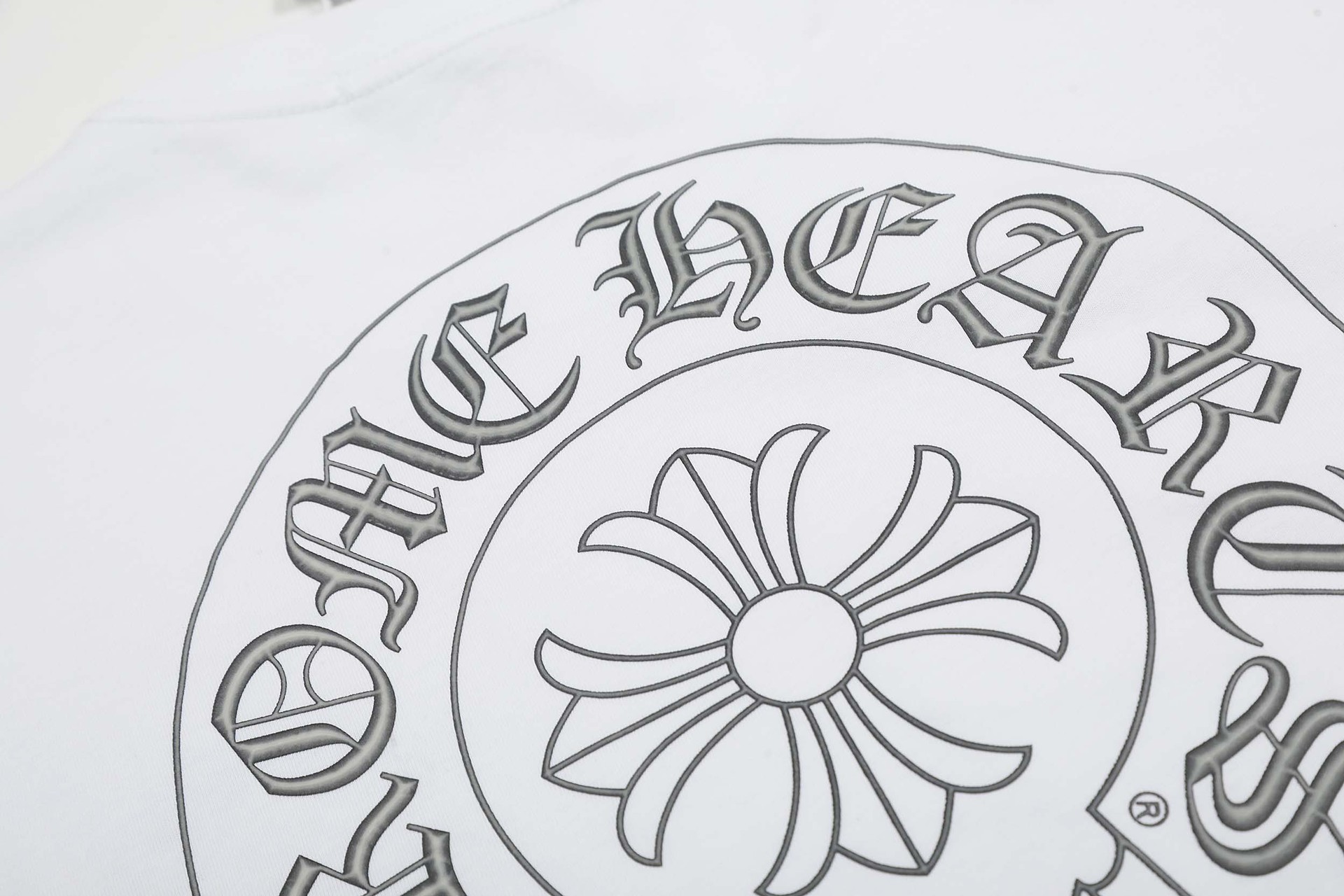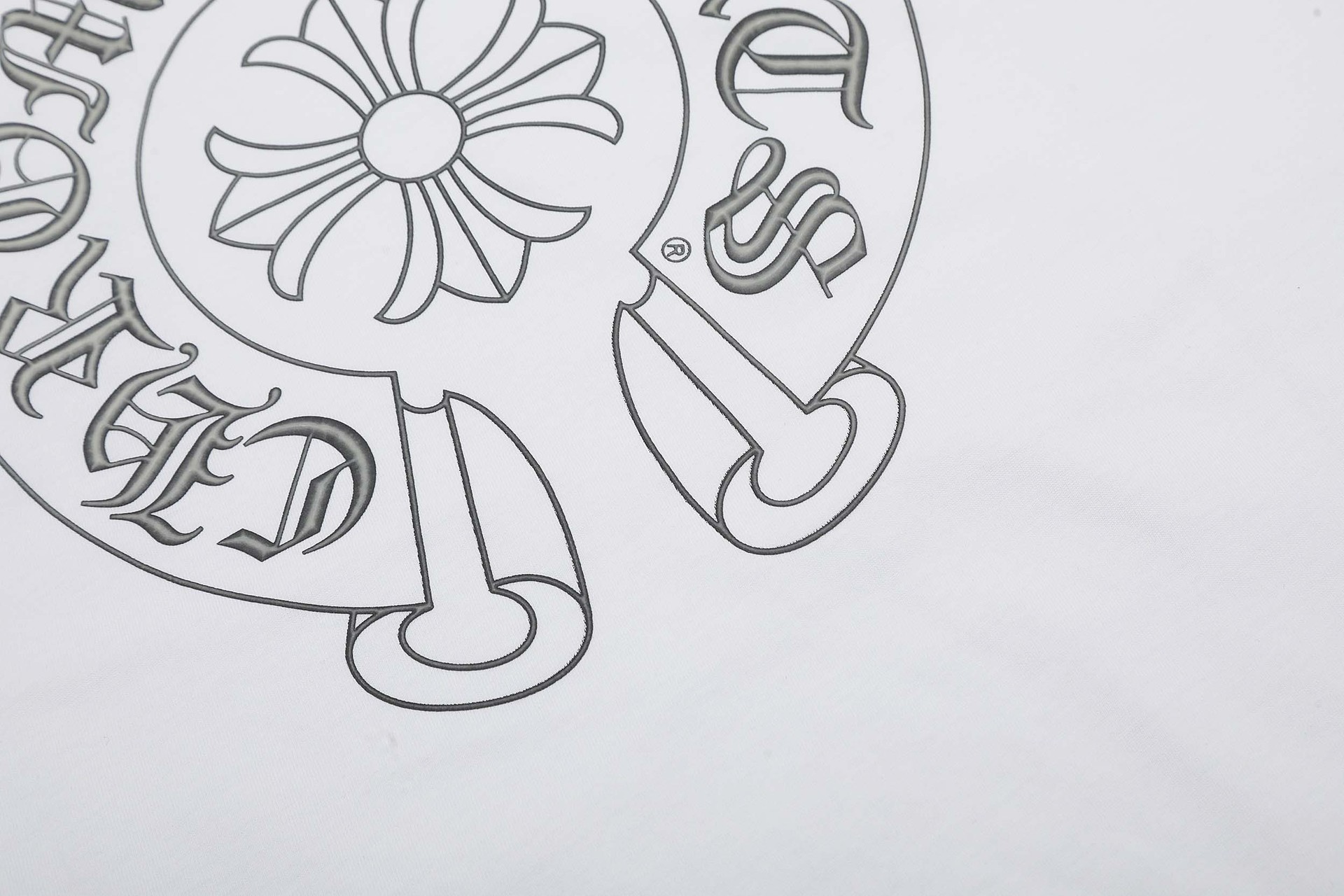 크로스-국경 하이 버전 CH 까마귀 크로스 말굽 프린트 산스크리트어 프린트 남성과 여성을위한 짧은 소매 티셔츠