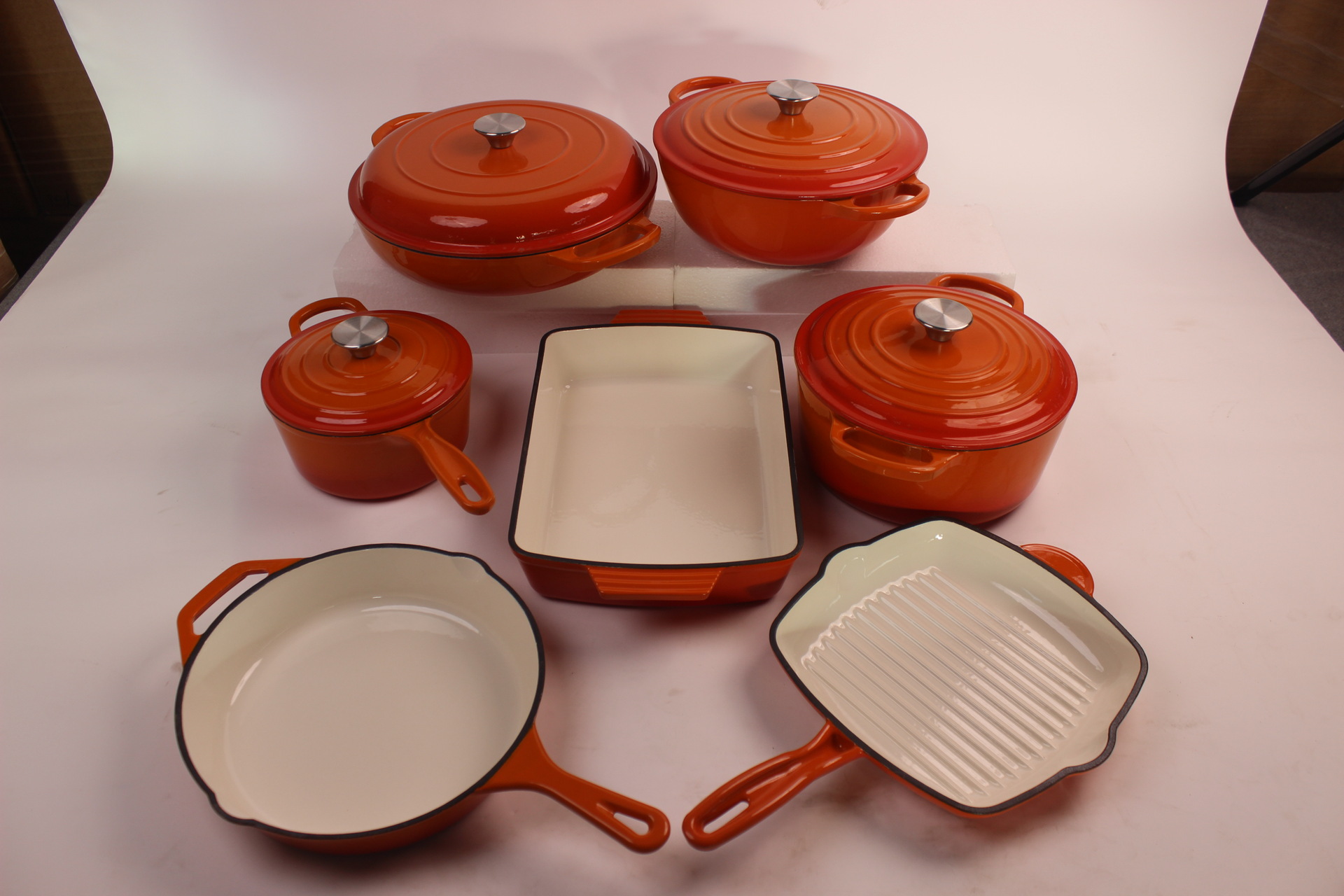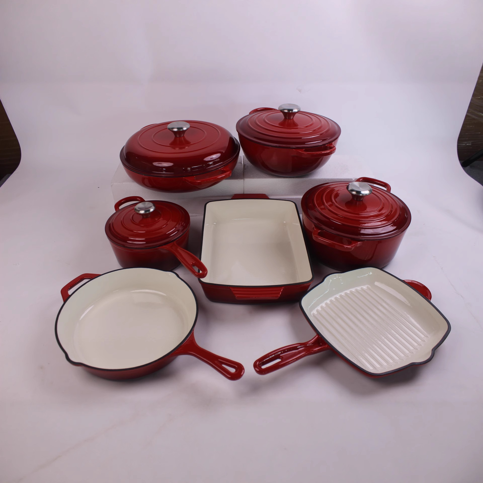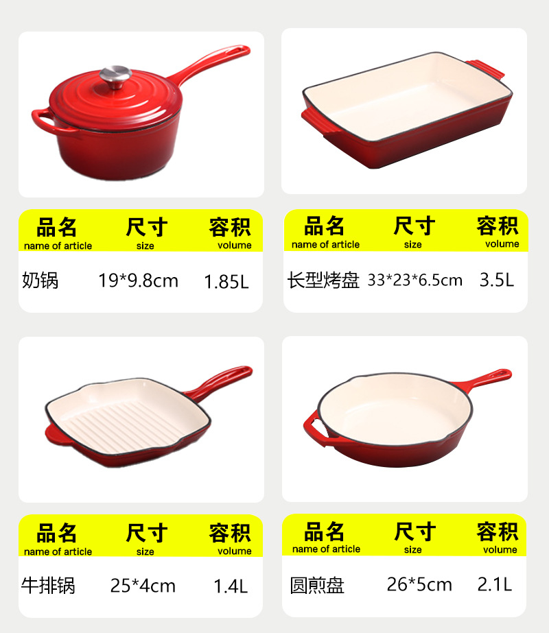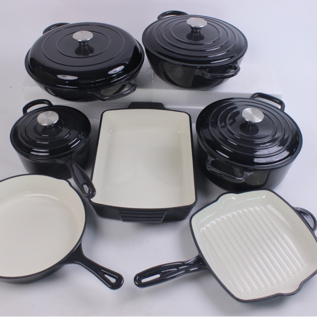 에나멜 오븐용 주철 냄비, 에나멜 프라이팬 세트, 수프 냄비, 프라이팬, 웍, 베이킹 팬 7종 세트 도매