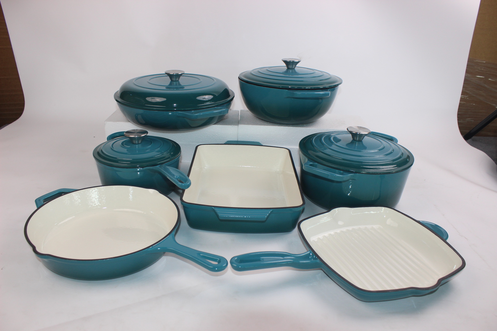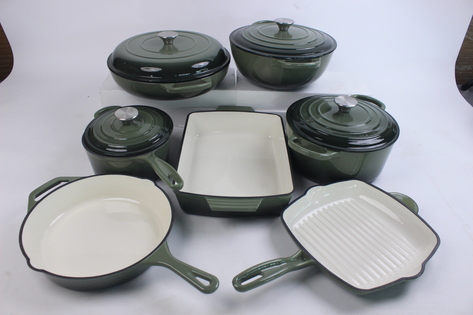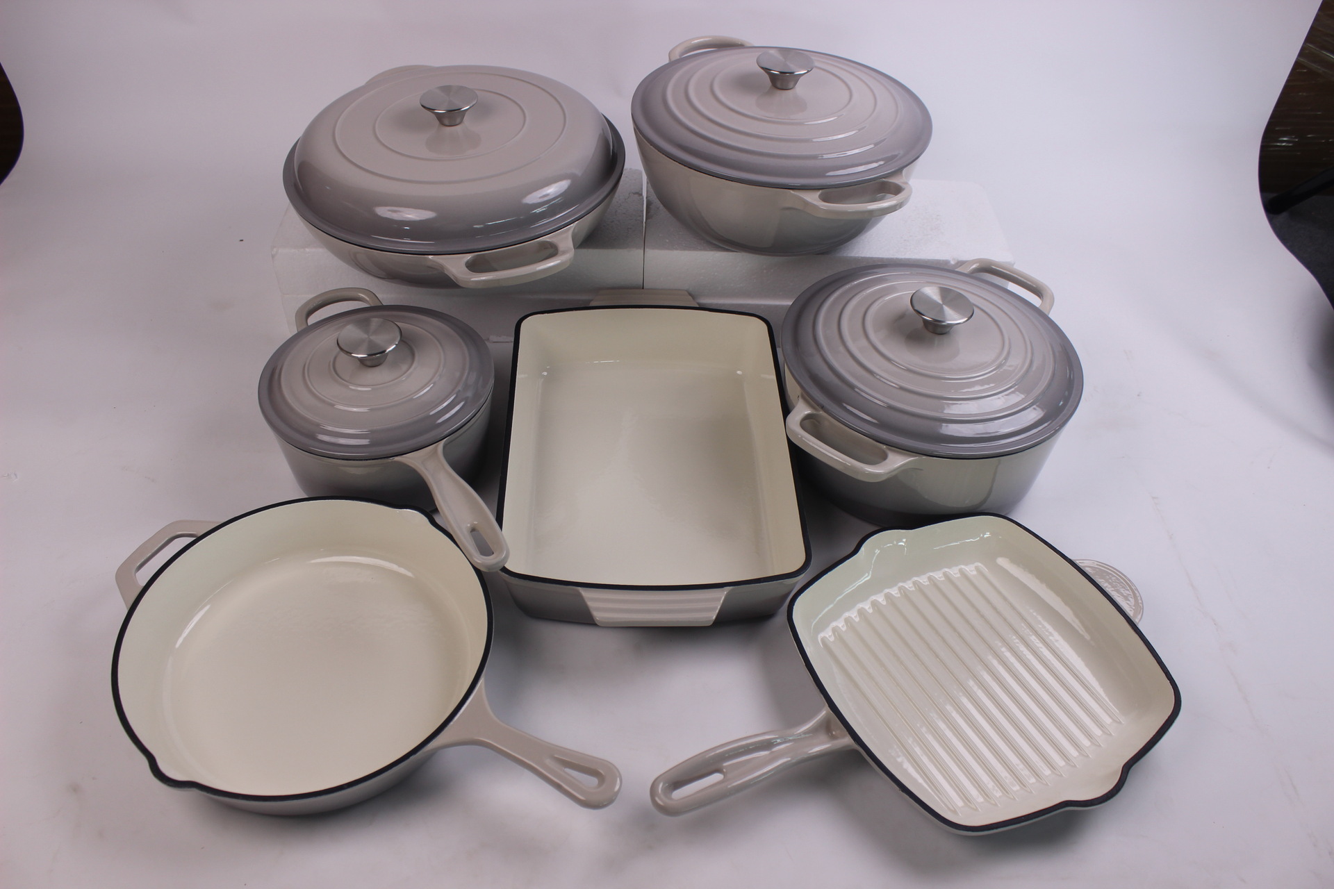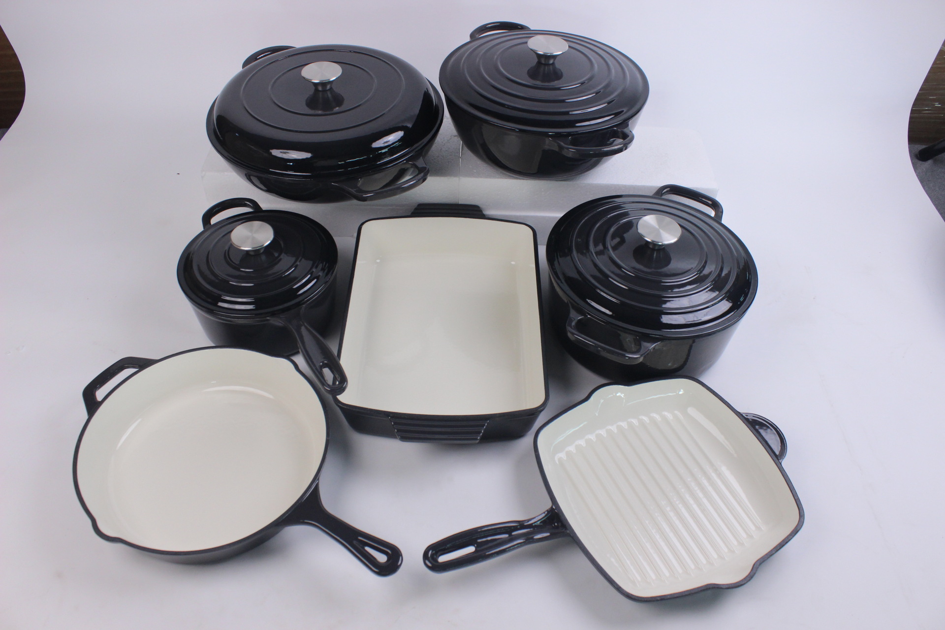 에나멜 오븐용 주철 냄비, 에나멜 프라이팬 세트, 수프 냄비, 프라이팬, 웍, 베이킹 팬 7종 세트 도매