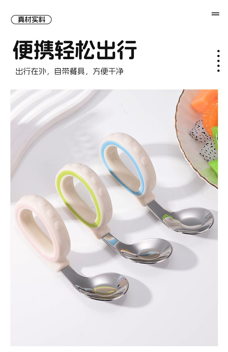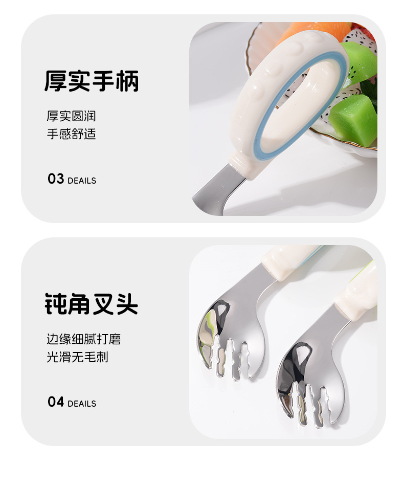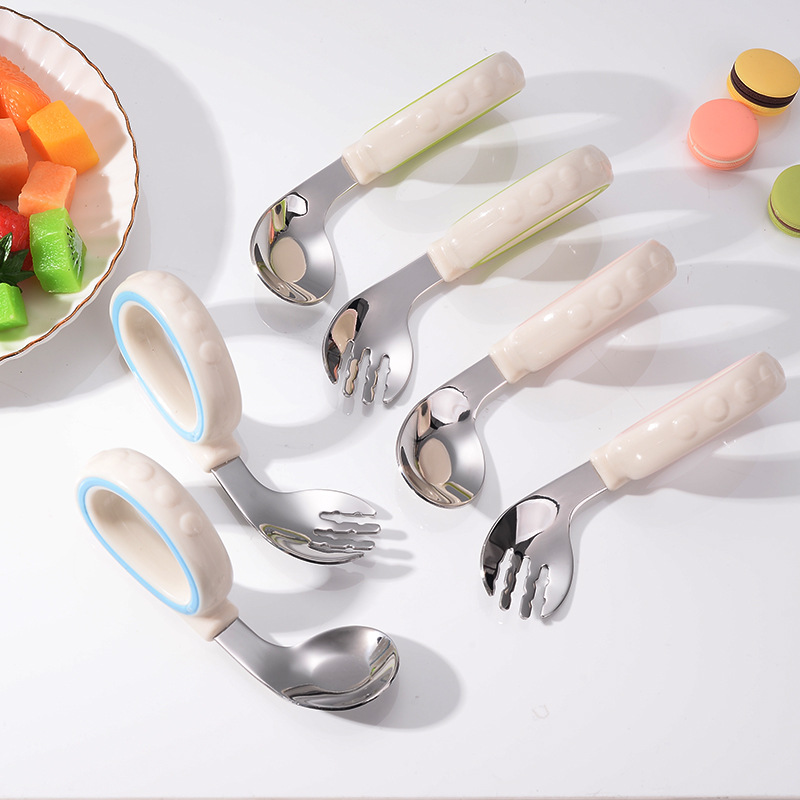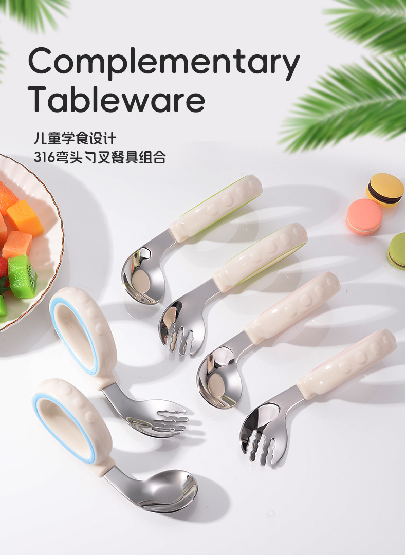 원형 짧은 손잡이 휴대용 포크 316 스테인레스 스틸 어린이 숟가락 보충 음식 훈련 아이들은 아기 식기 먹는 법을 배웁니다