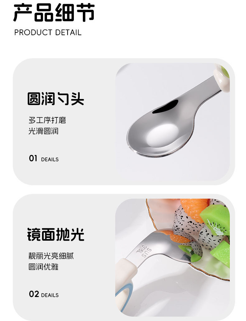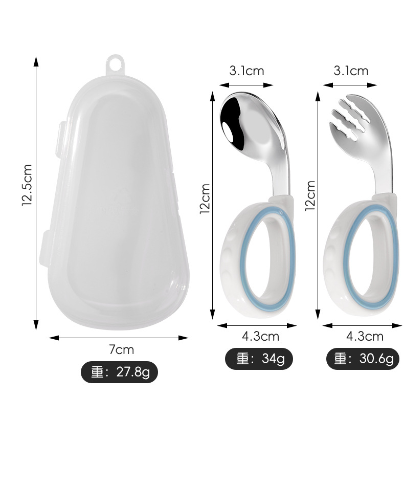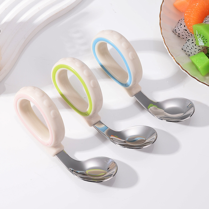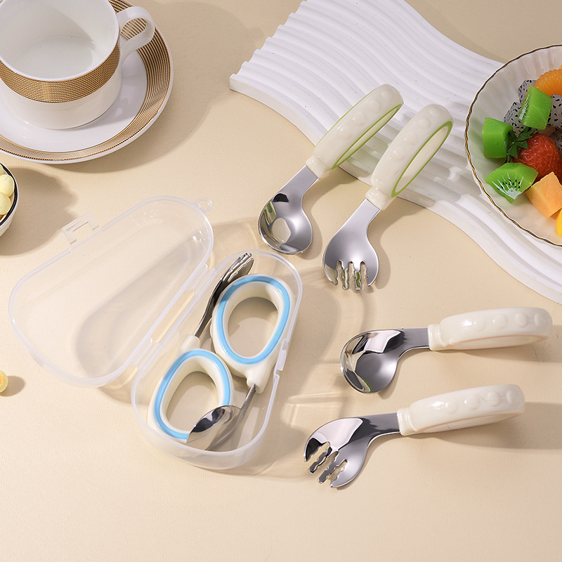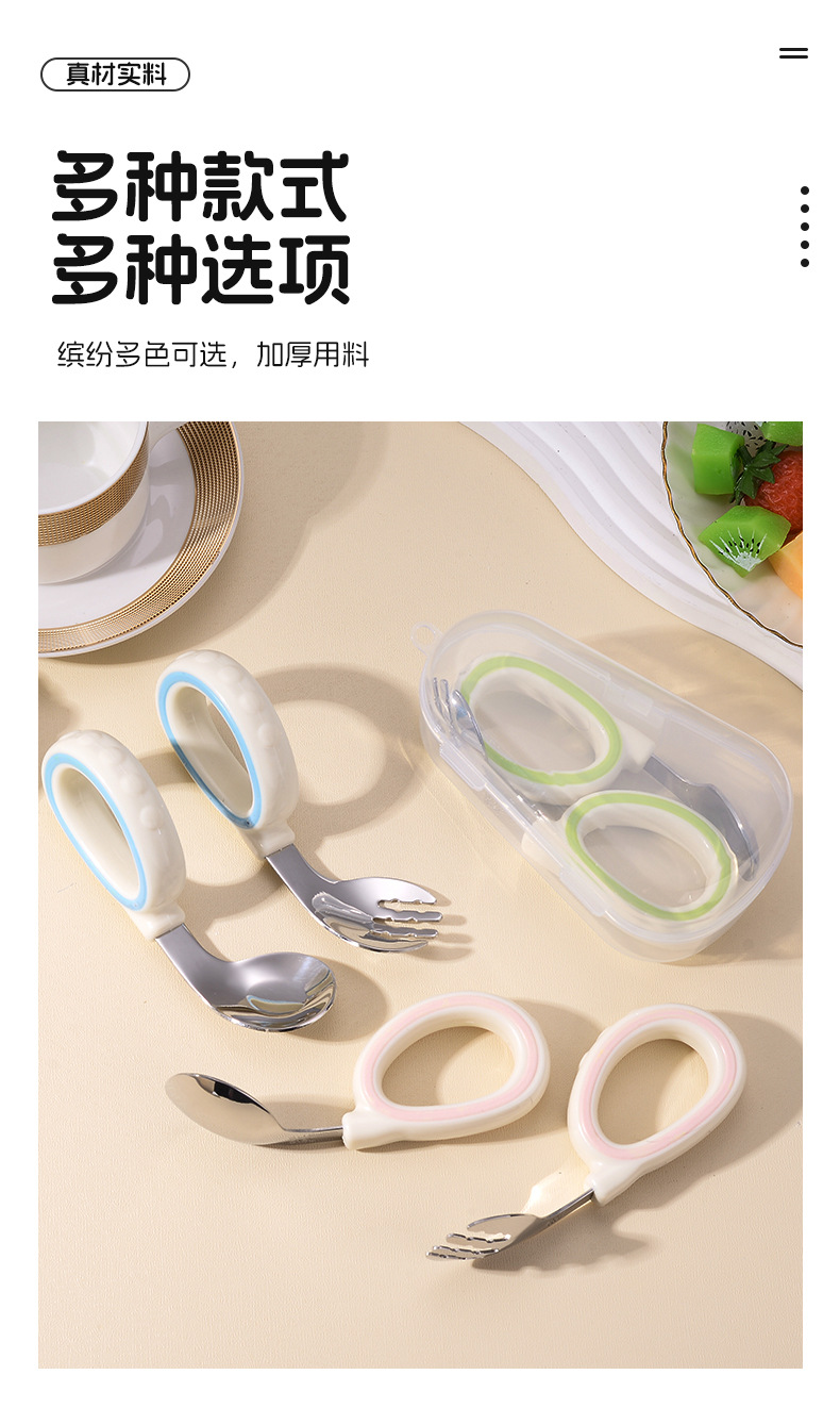 원형 짧은 손잡이 휴대용 포크 316 스테인레스 스틸 어린이 숟가락 보충 음식 훈련 아이들은 아기 식기 먹는 법을 배웁니다