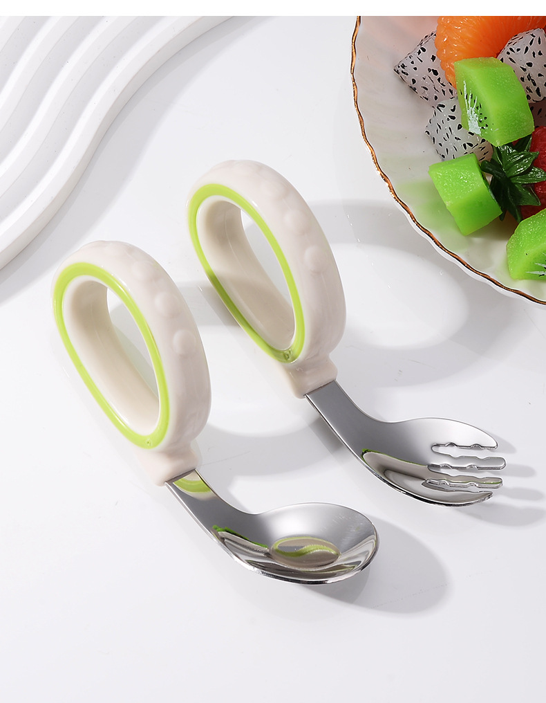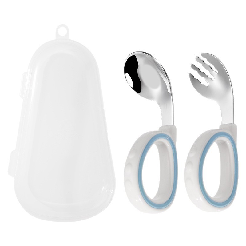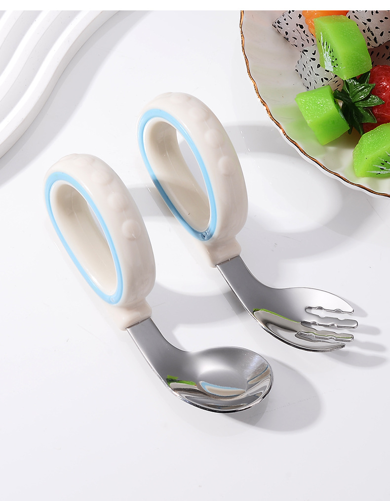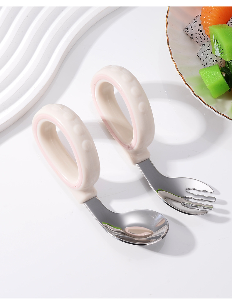 어린이용 2색 원형 스푼과 포크