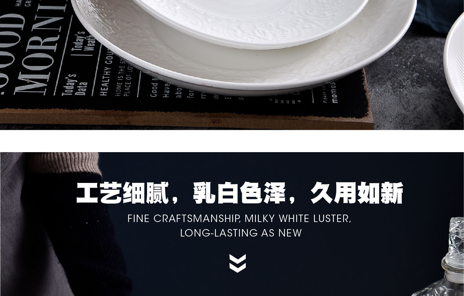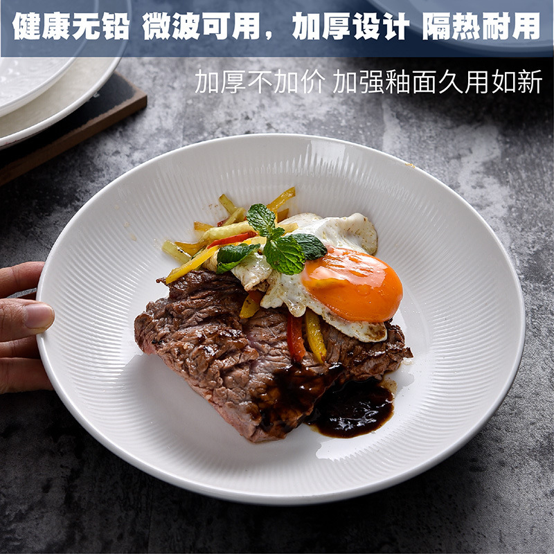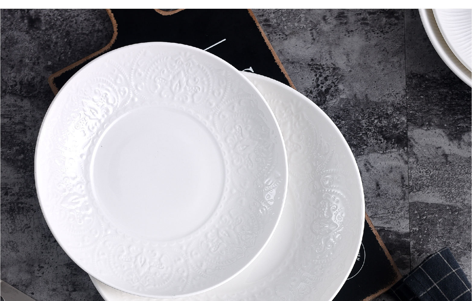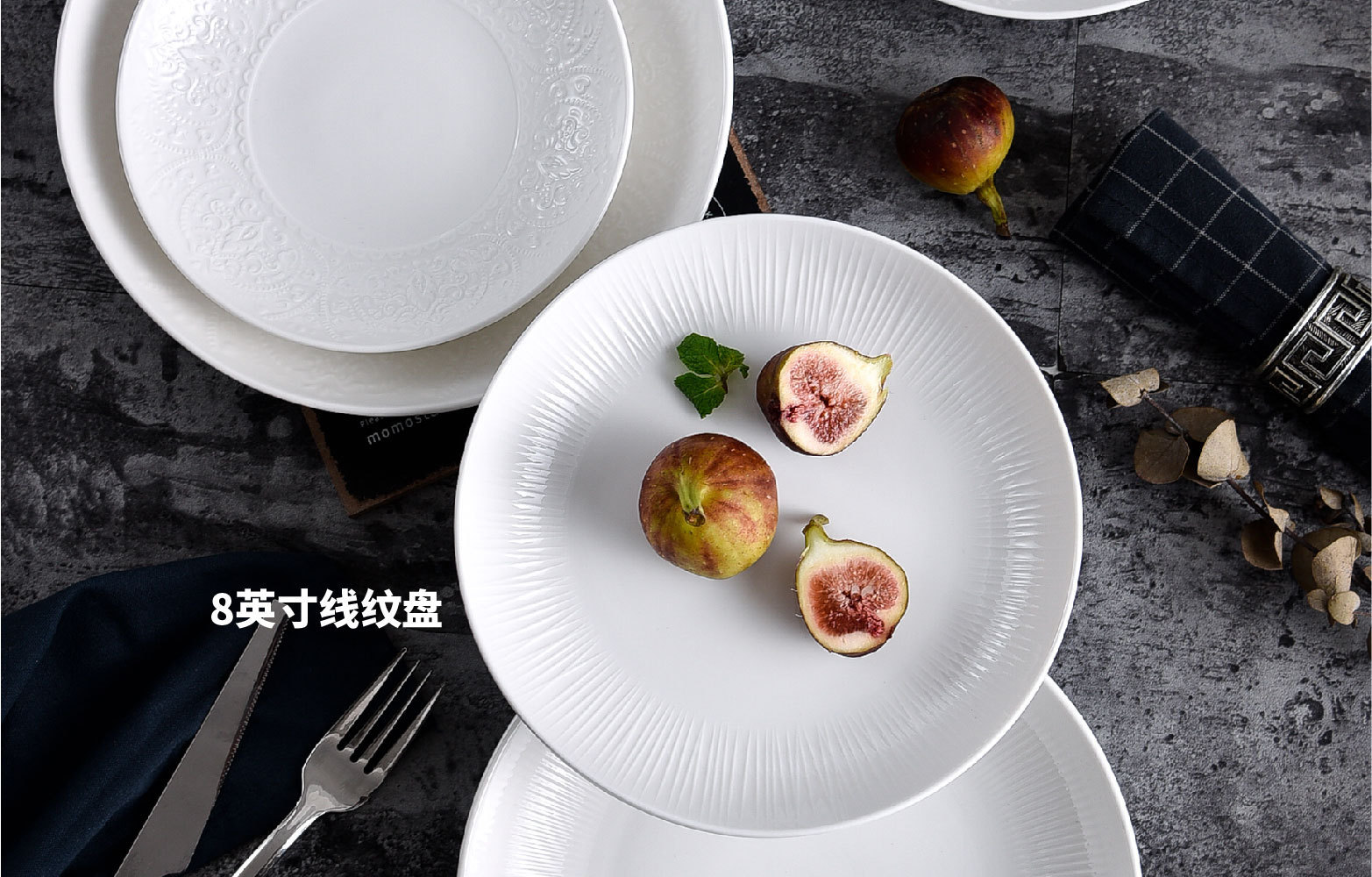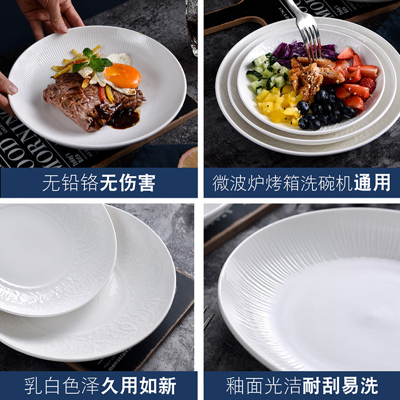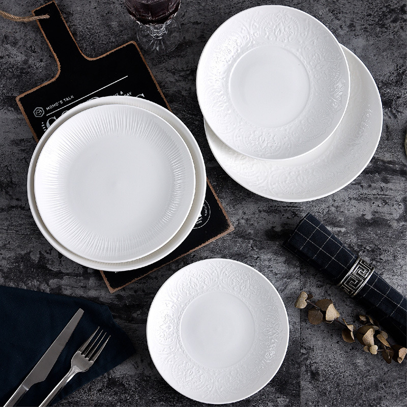 북유럽 스타일의 양각 서양식 스테이크 플레이트 식기 간단한 세라믹 플레이트 화이트 디스크 호텔 홈
