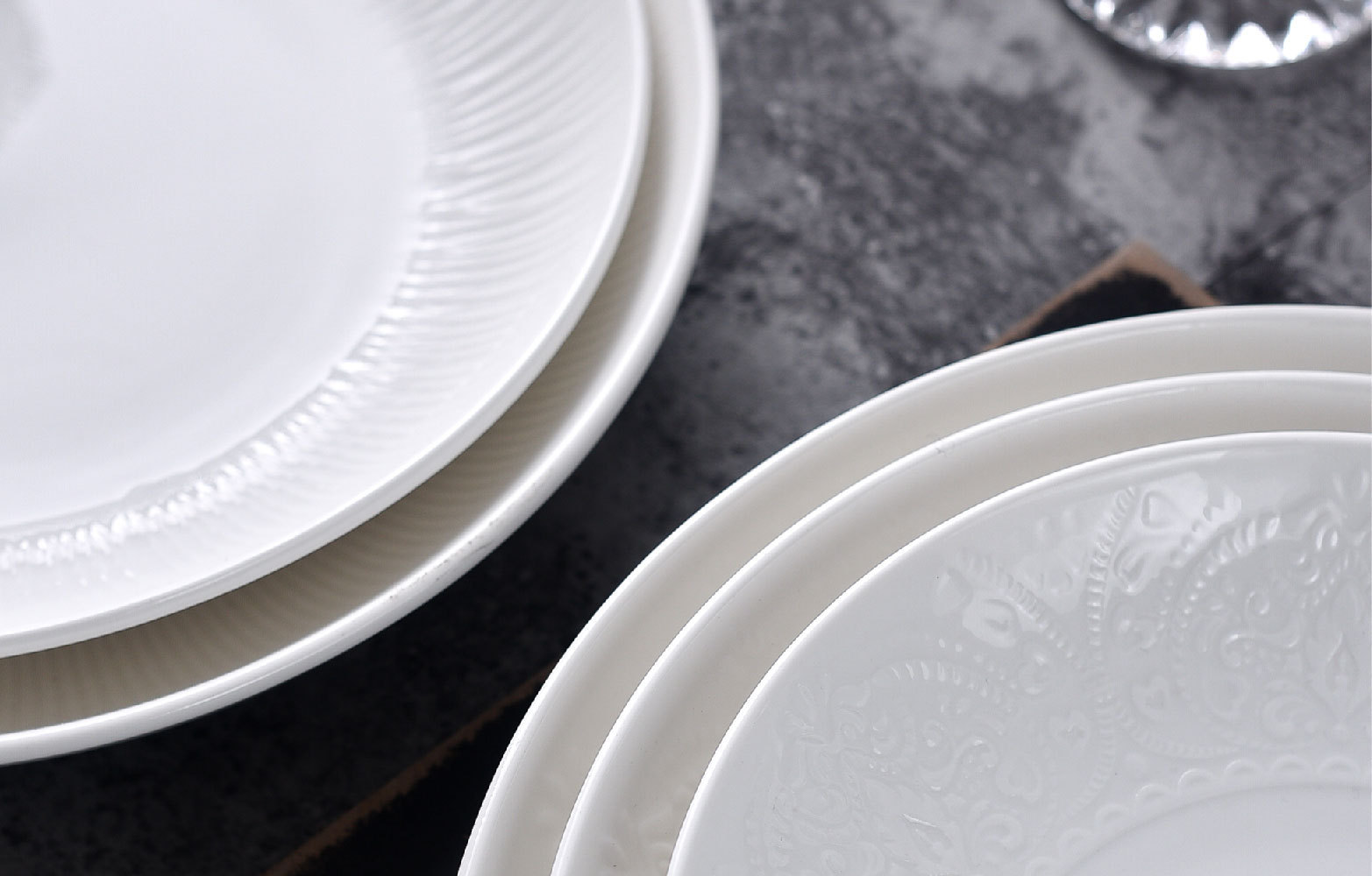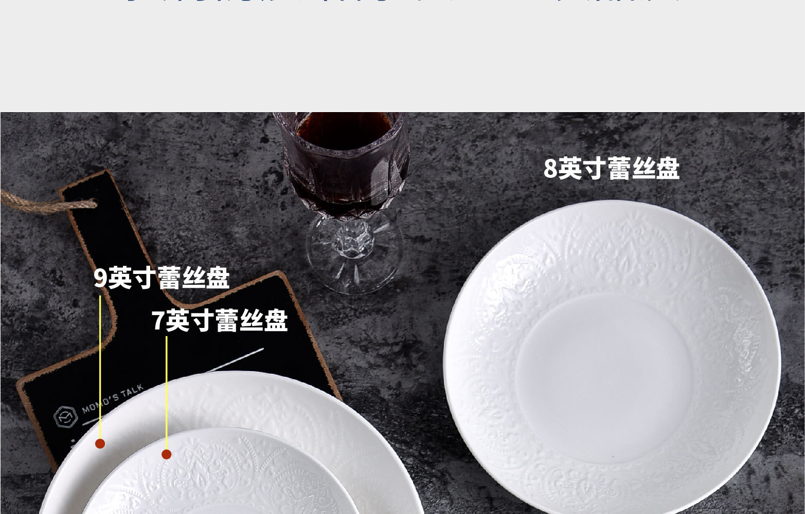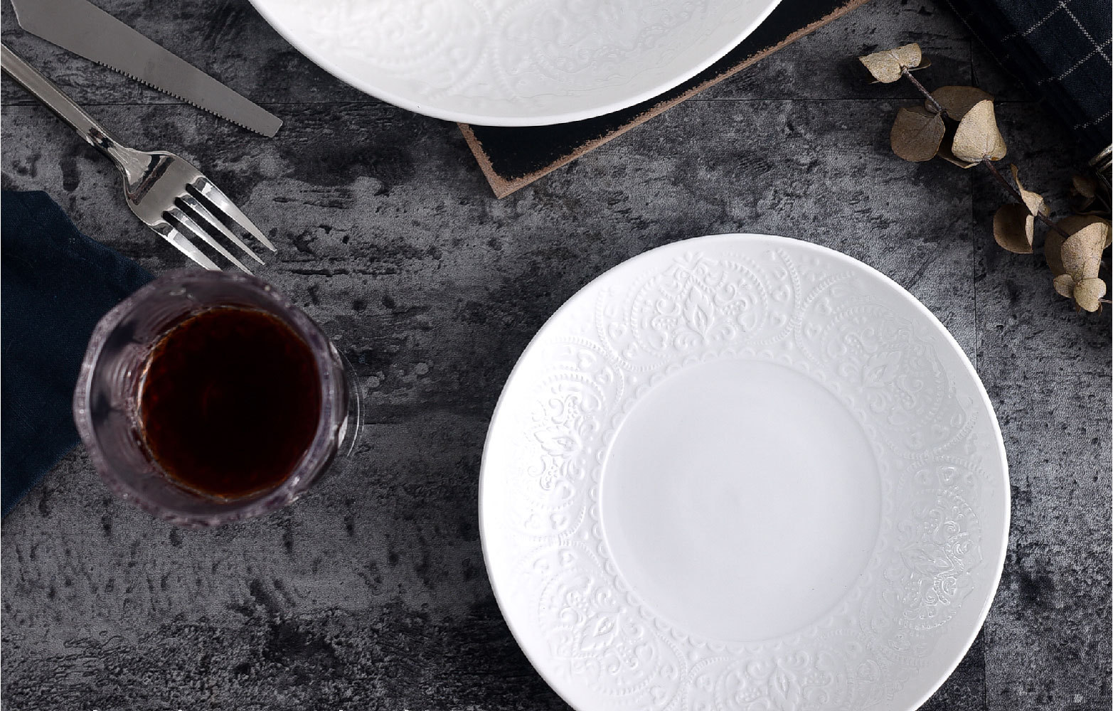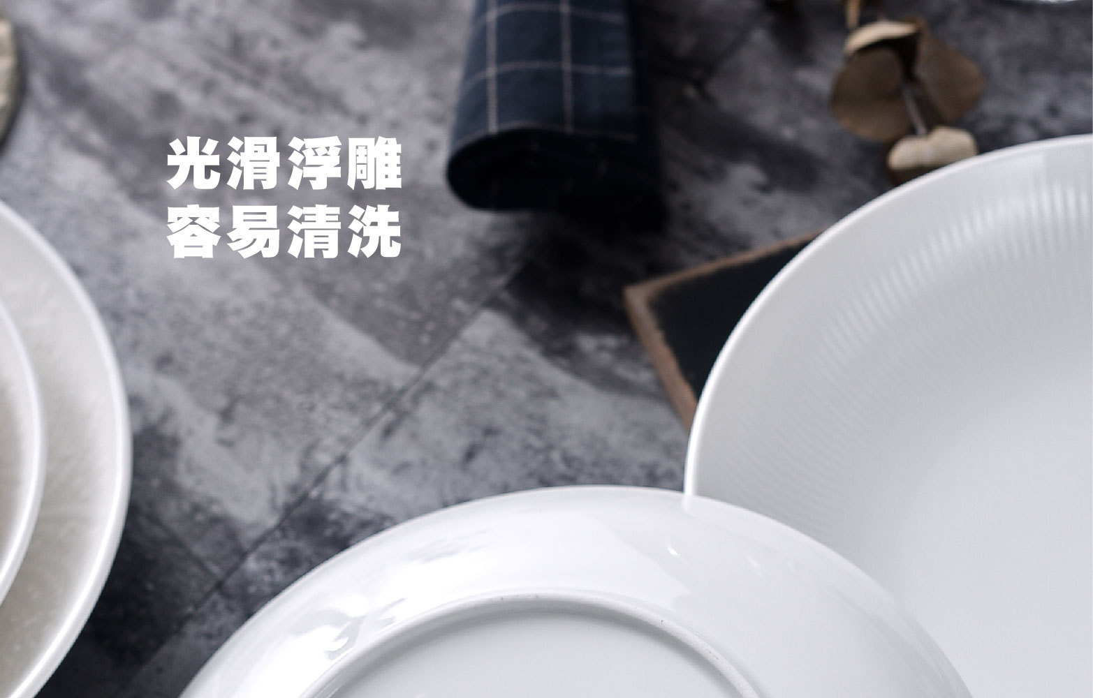 북유럽 스타일의 양각 서양식 스테이크 플레이트 식기 간단한 세라믹 플레이트 화이트 디스크 호텔 홈