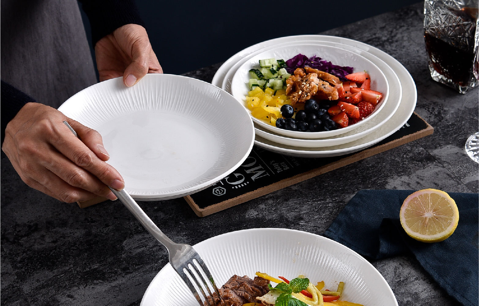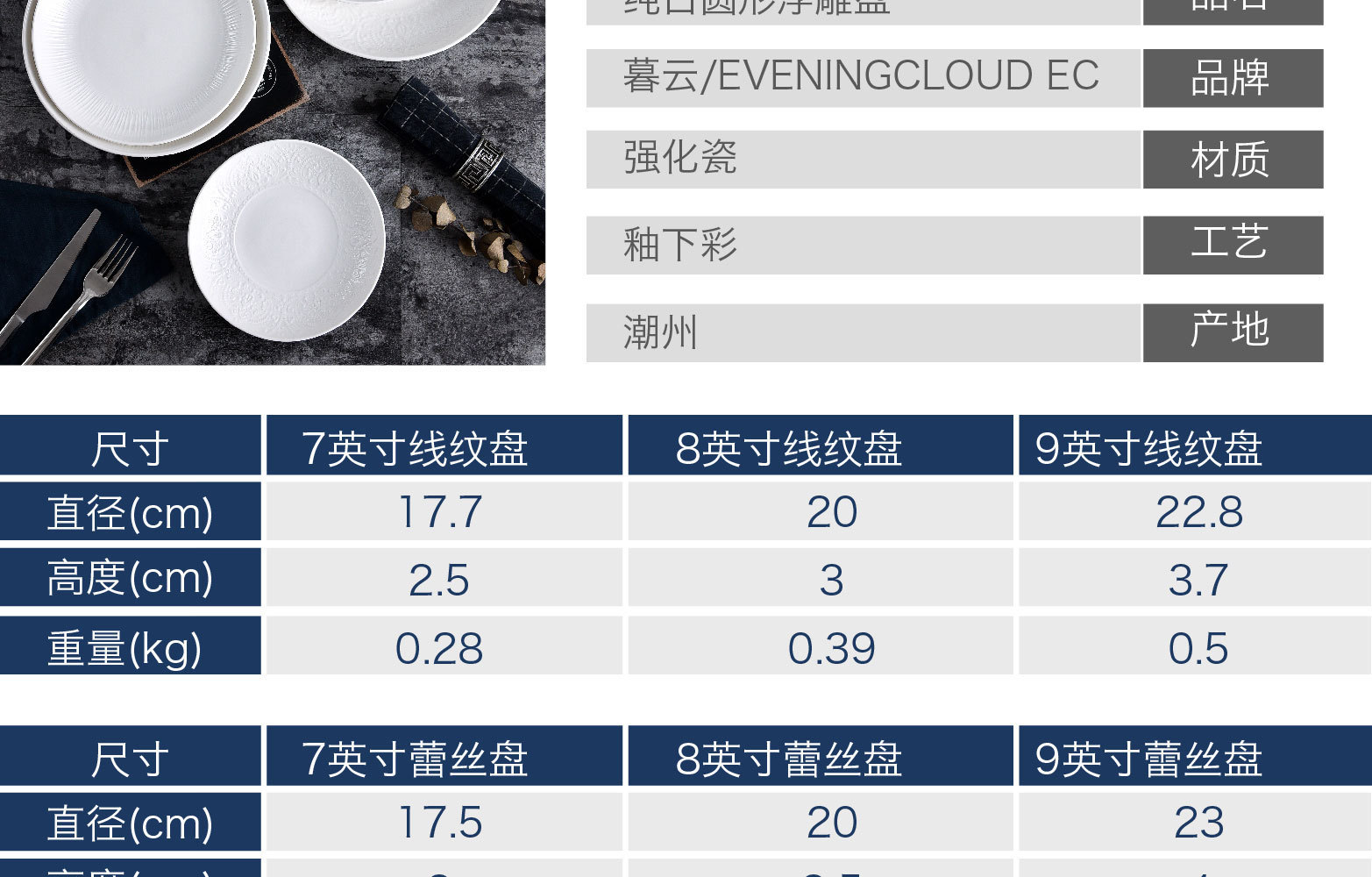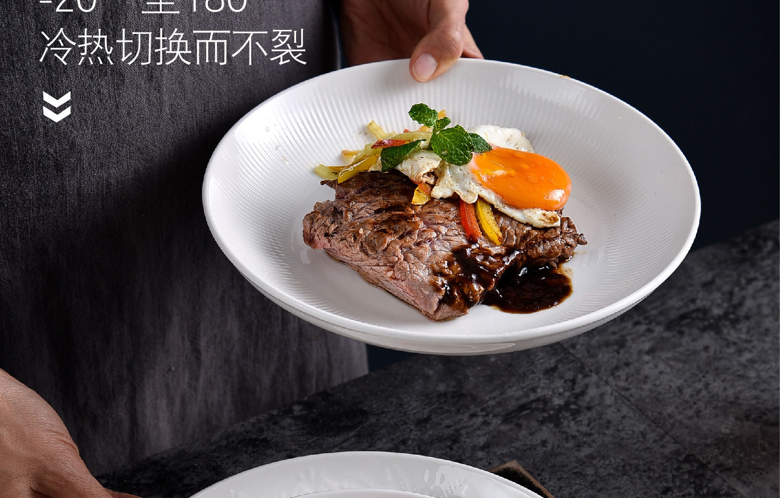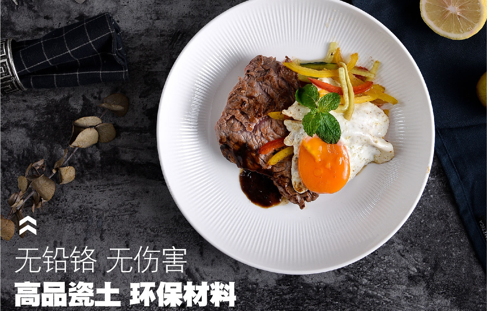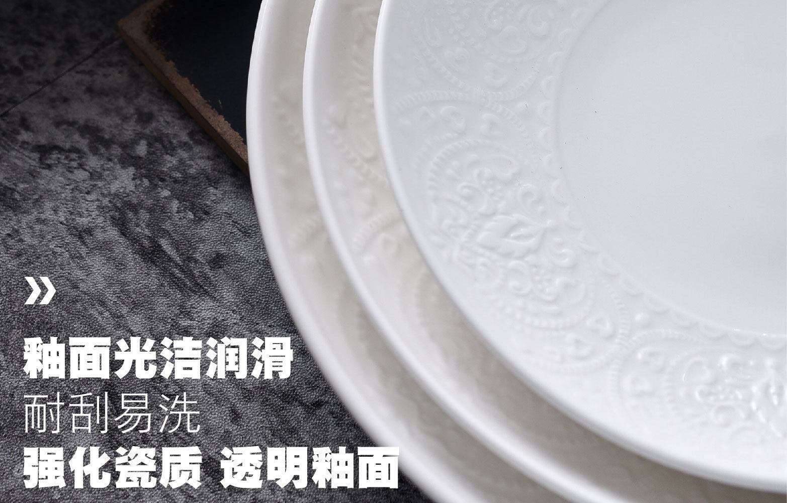 북유럽 스타일의 양각 서양식 스테이크 플레이트 식기 간단한 세라믹 플레이트 화이트 디스크 호텔 홈