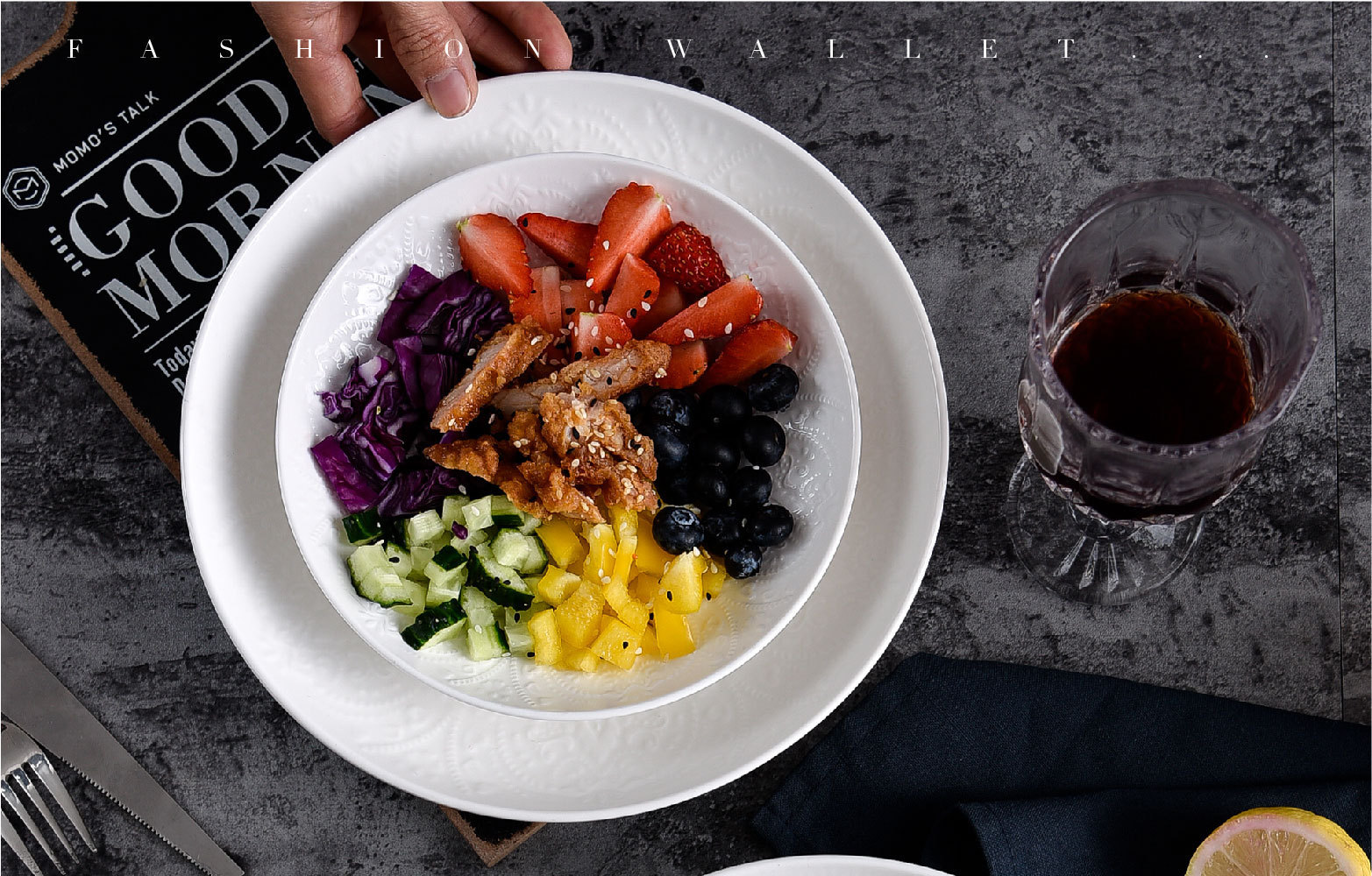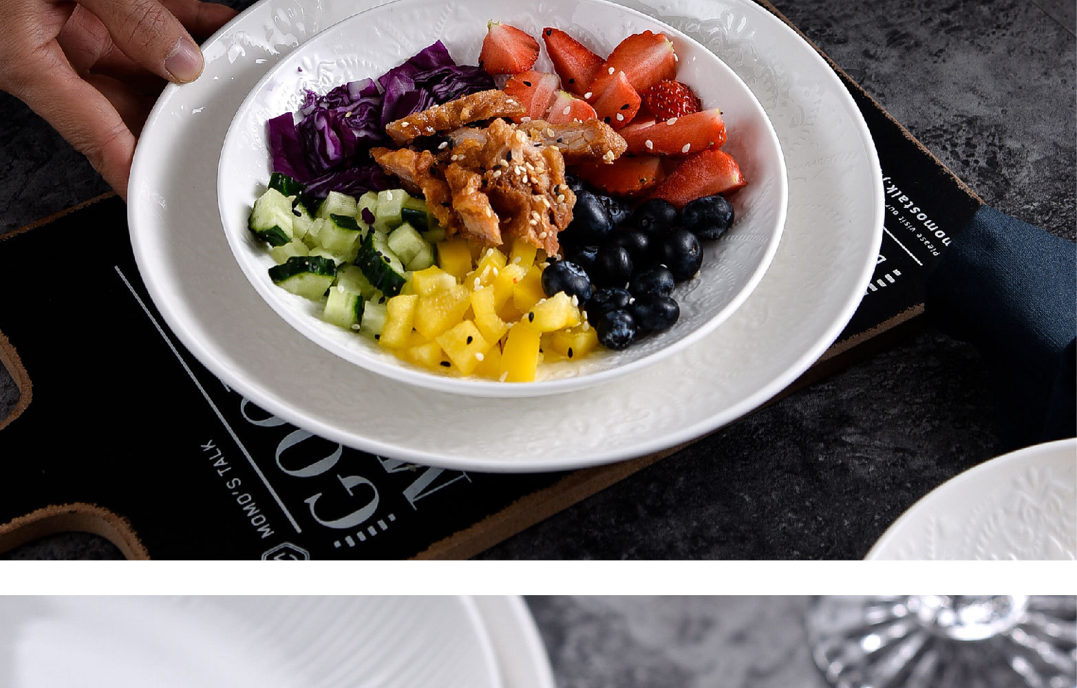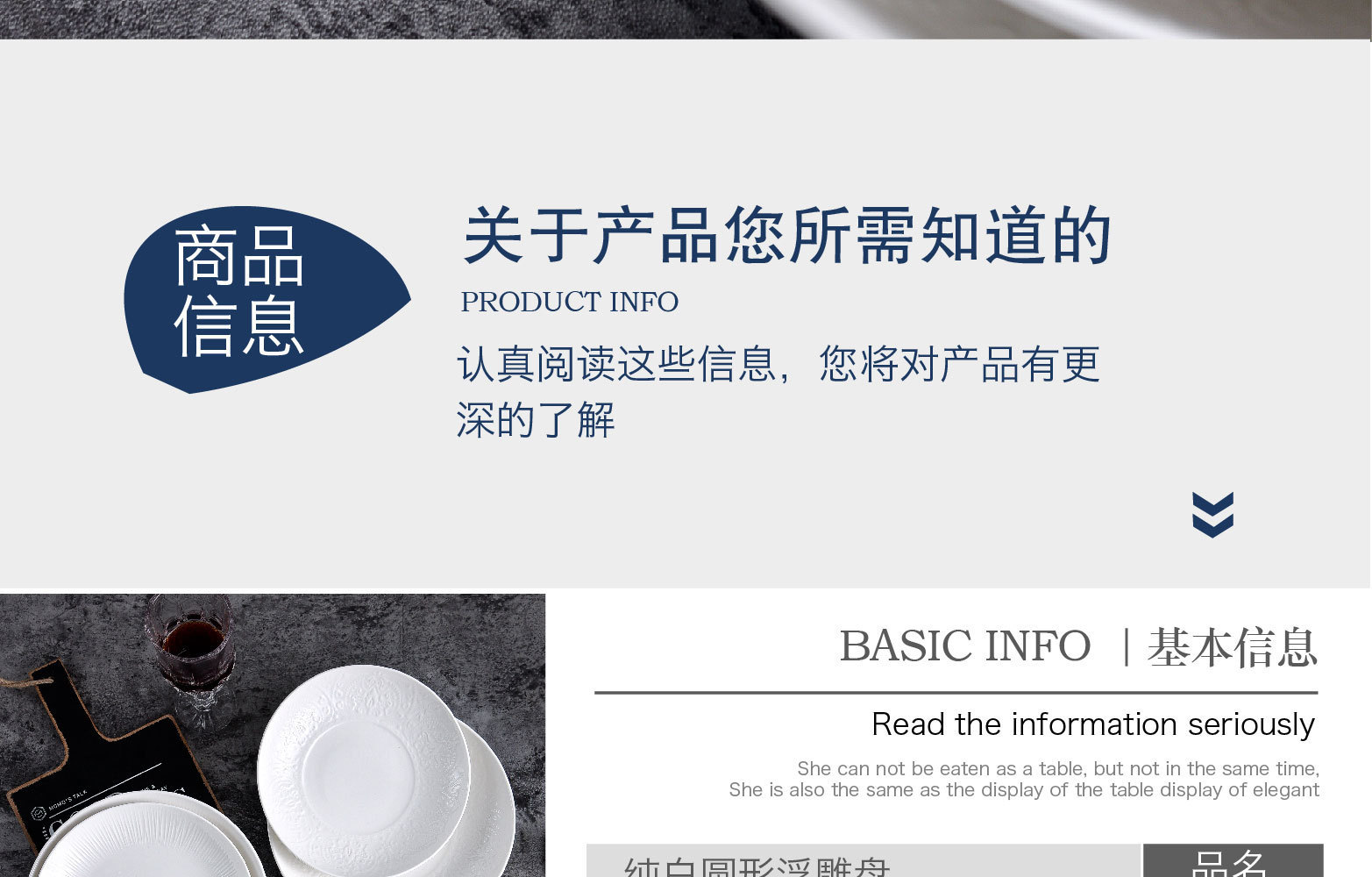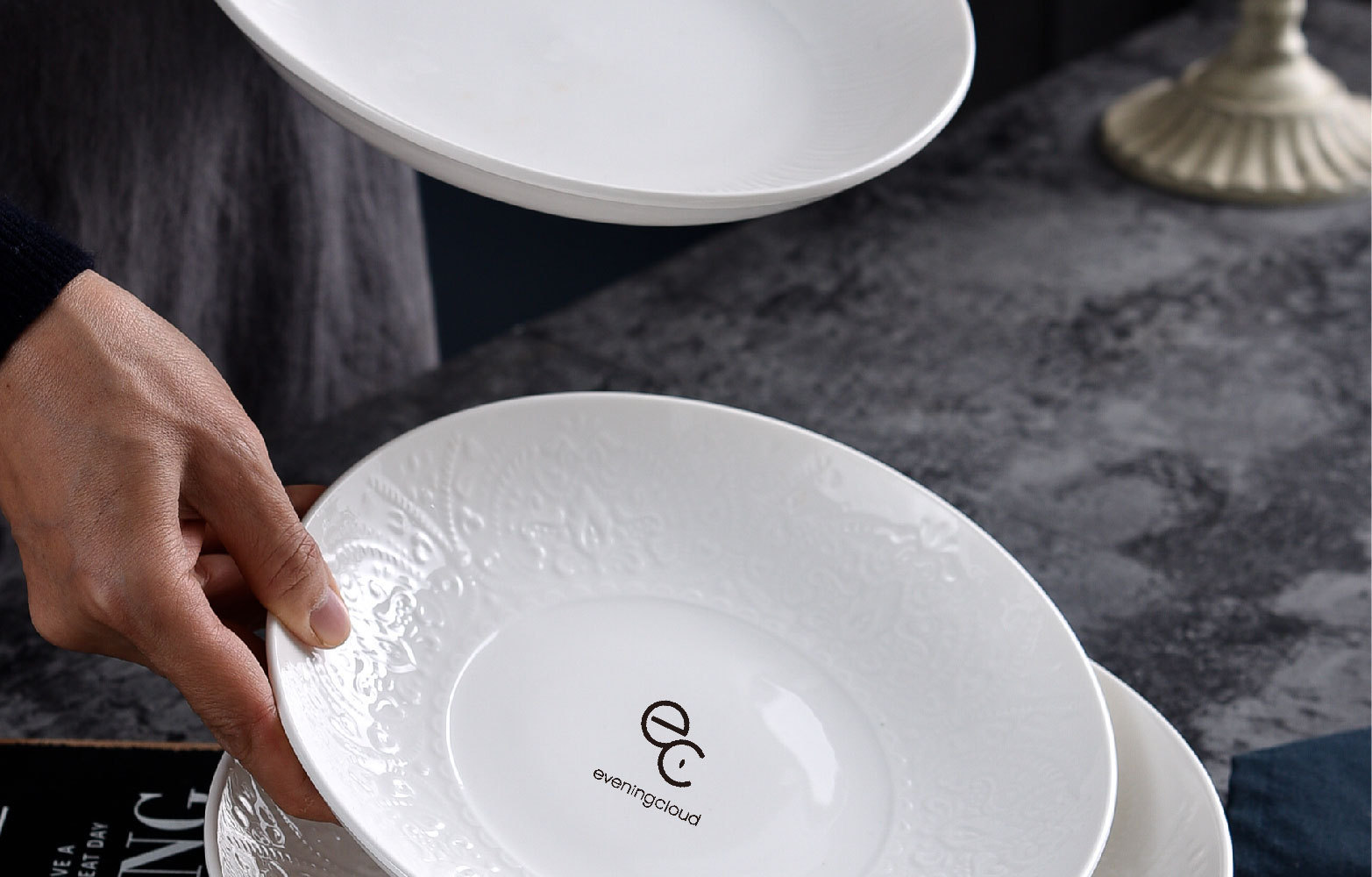 북유럽 스타일의 양각 서양식 스테이크 플레이트 식기 간단한 세라믹 플레이트 화이트 디스크 호텔 홈