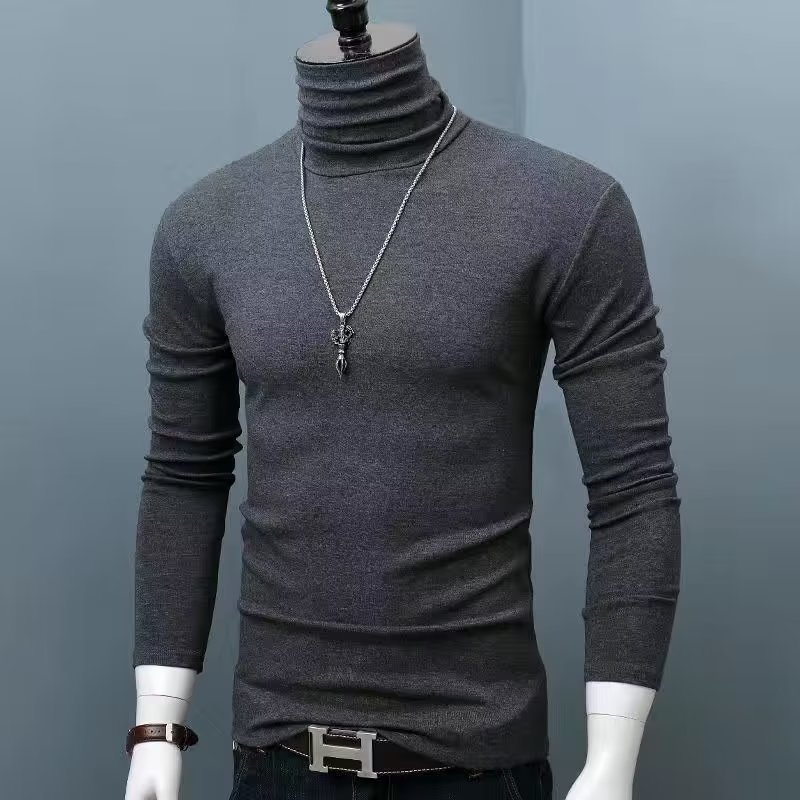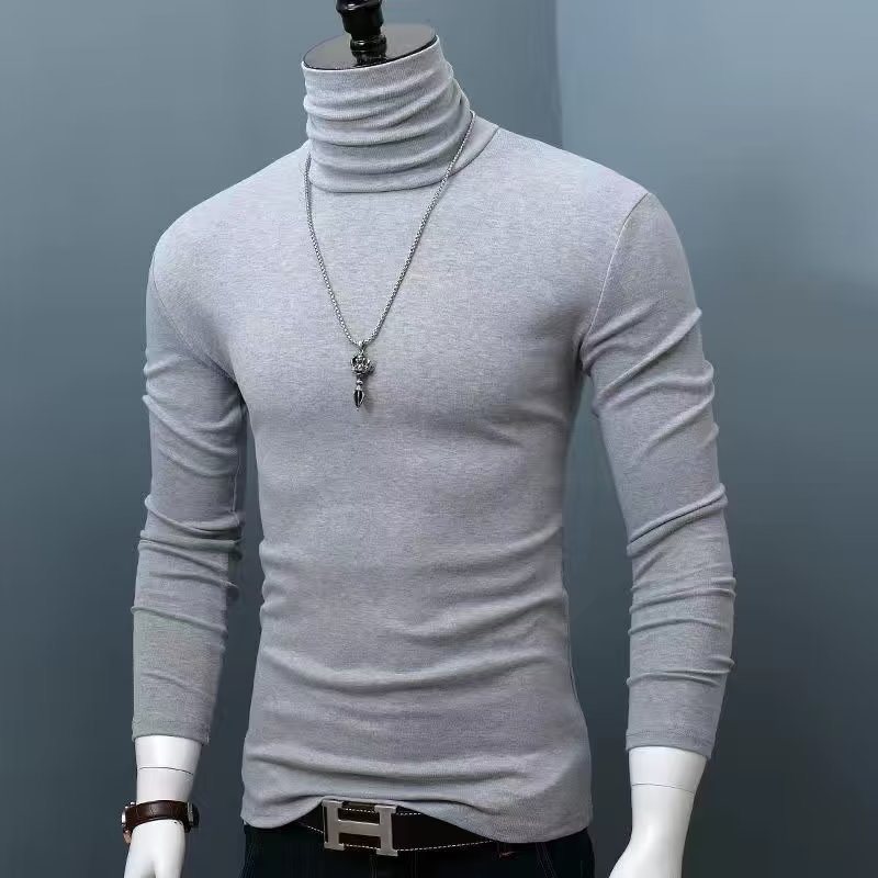 하이넥 긴팔 이너 남성용 보텀스 셔츠 슬림핏 티셔츠 심플 가을 겨울 솔리드 컬러 대형 따뜻한 가을 의류 트렌디 브랜드