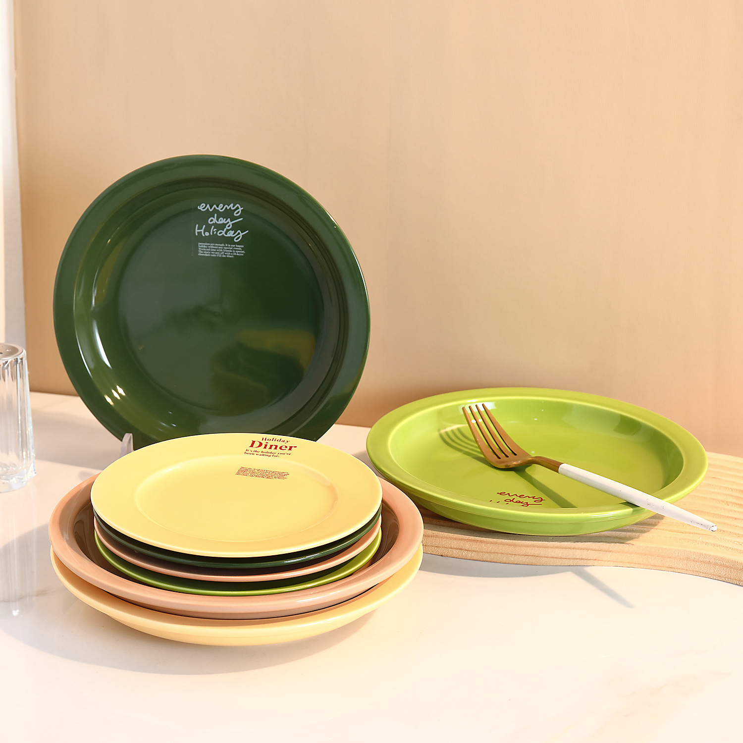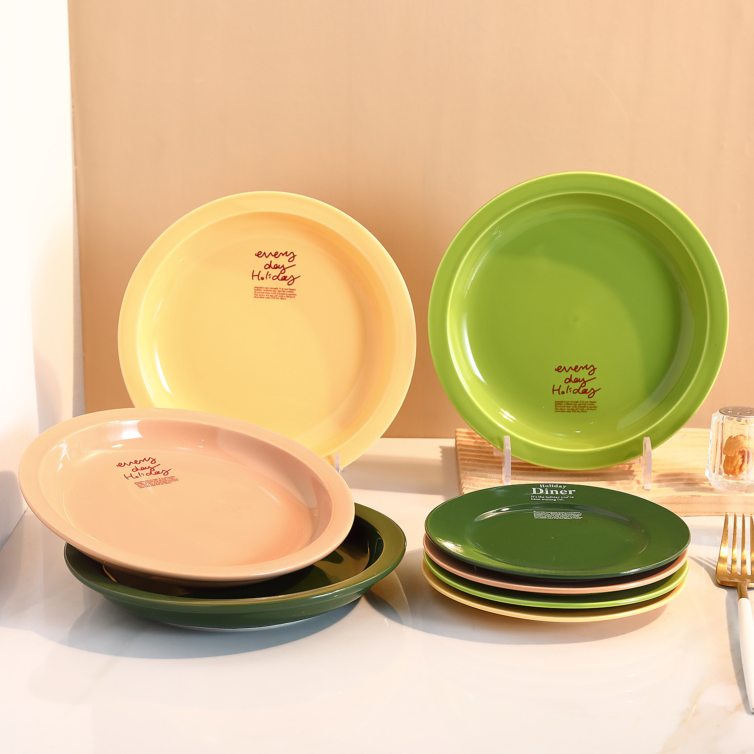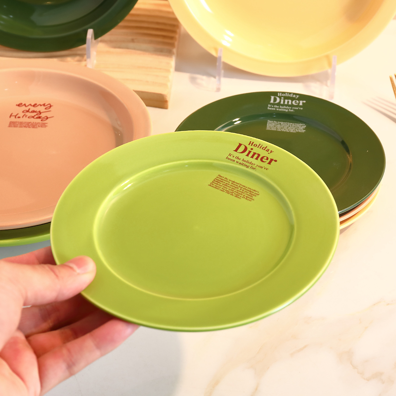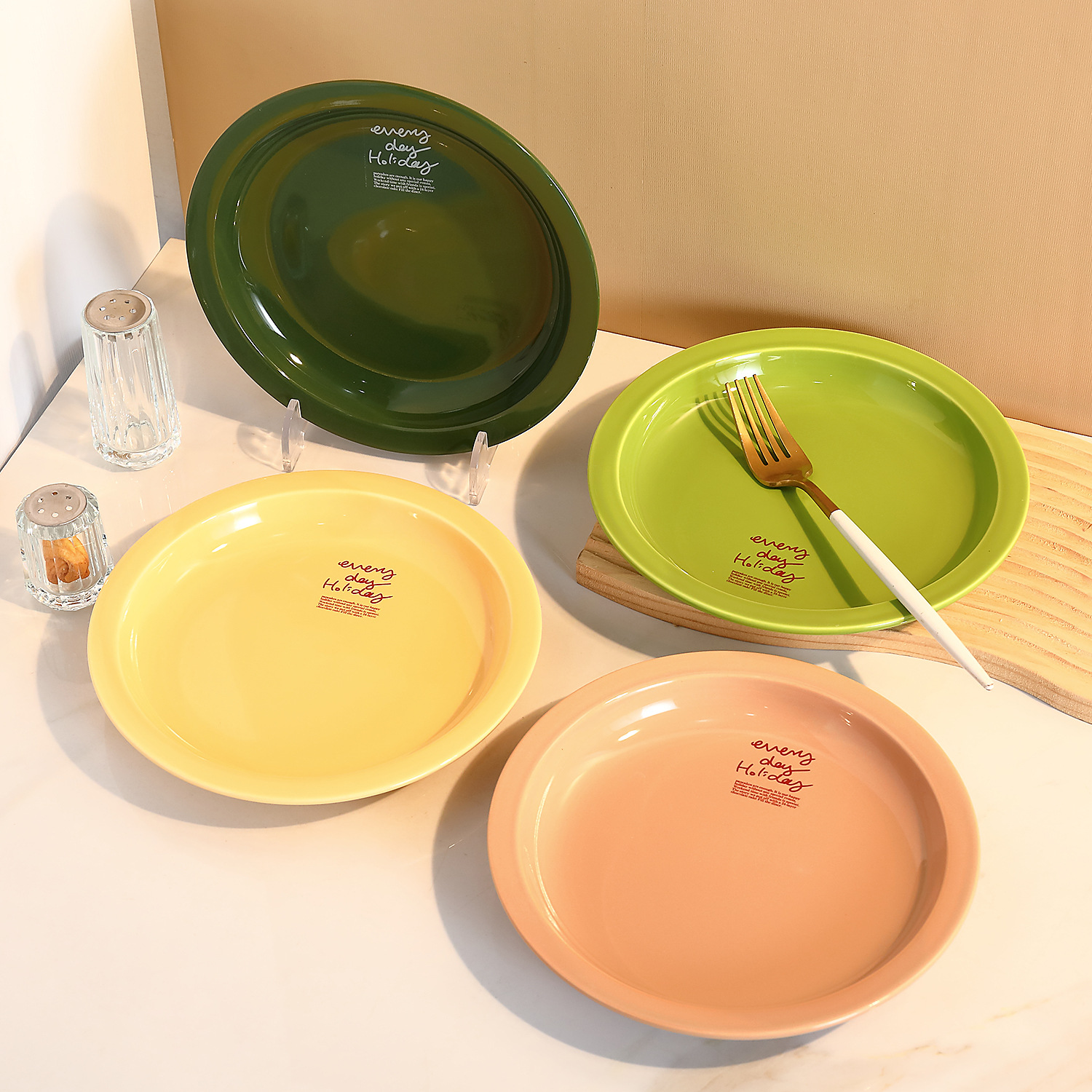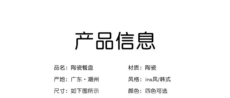 신선한 만화풍 식기류, 귀엽고 심플한 일본 및 한국 스타일, 가정용 및 레스토랑용 중식 및 양식 도자기 접시