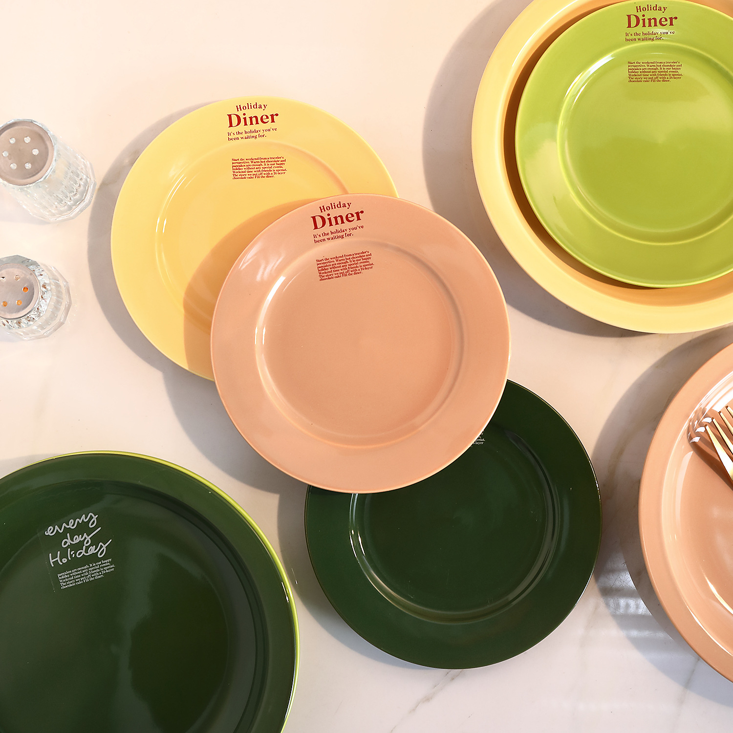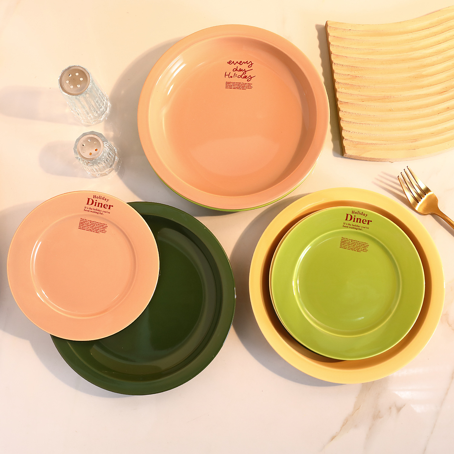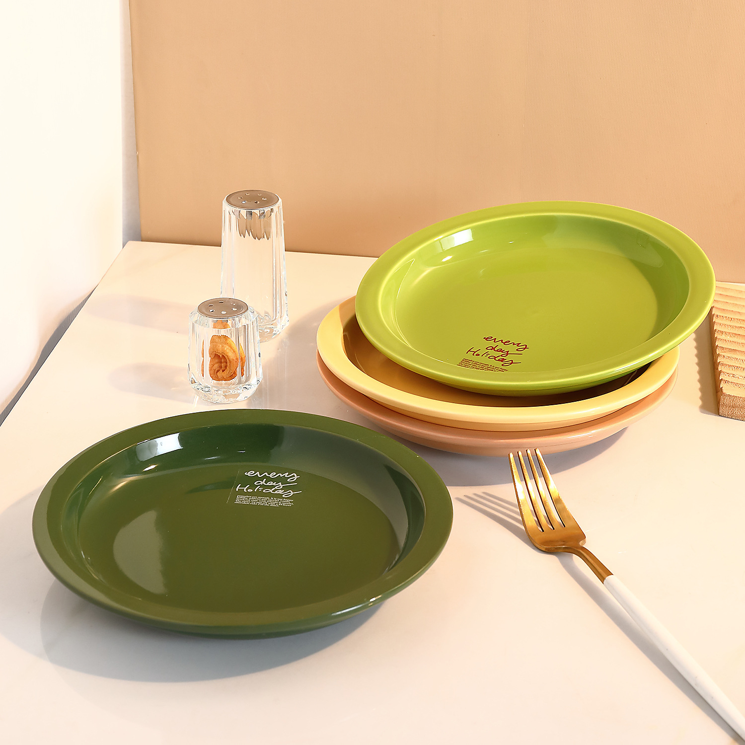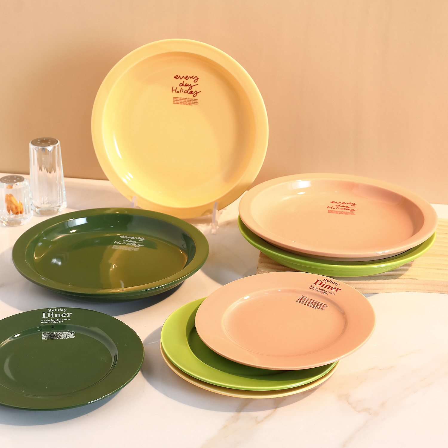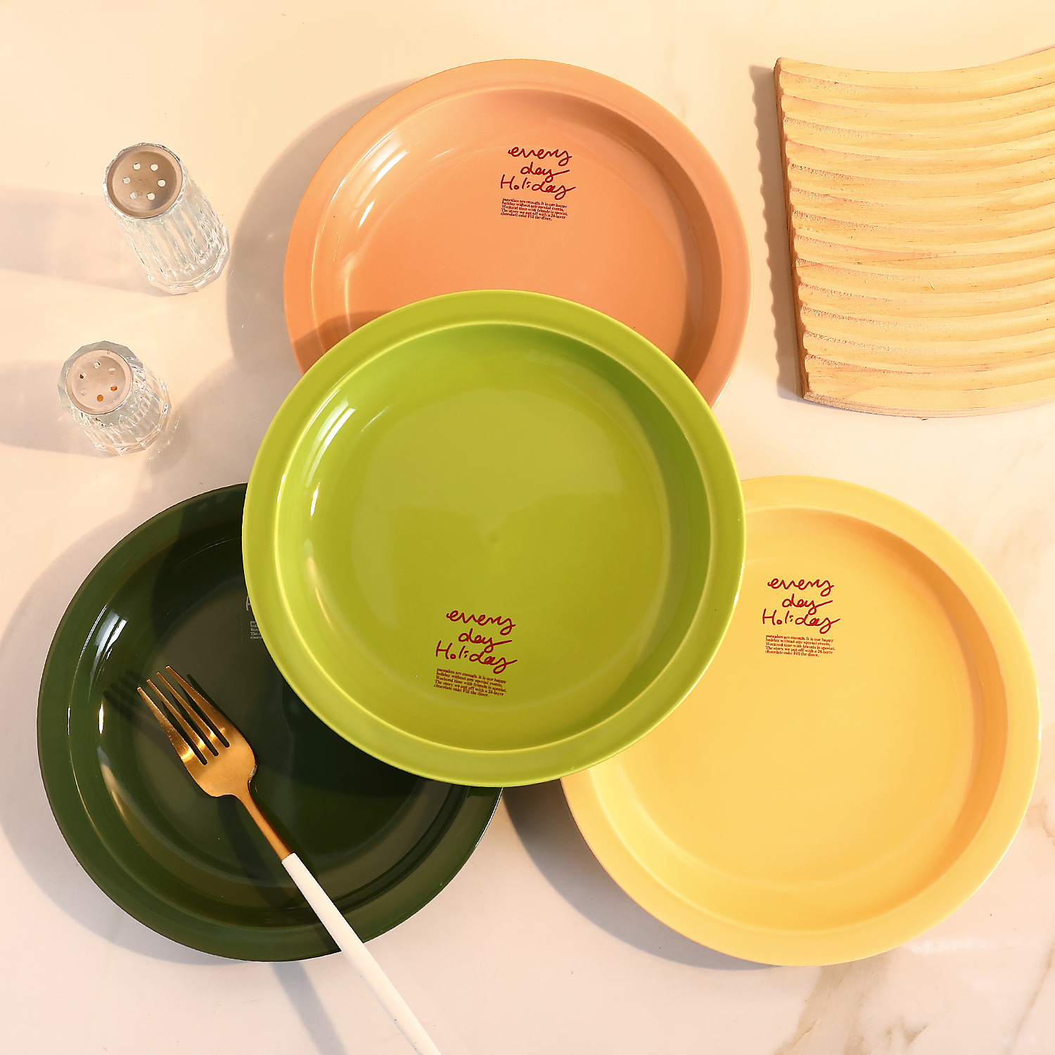 신선한 만화풍 식기류, 귀엽고 심플한 일본 및 한국 스타일, 가정용 및 레스토랑용 중식 및 양식 도자기 접시