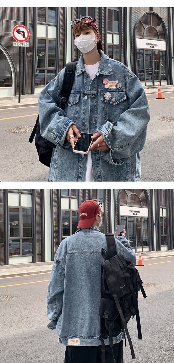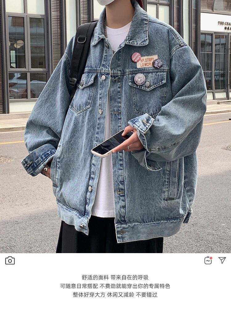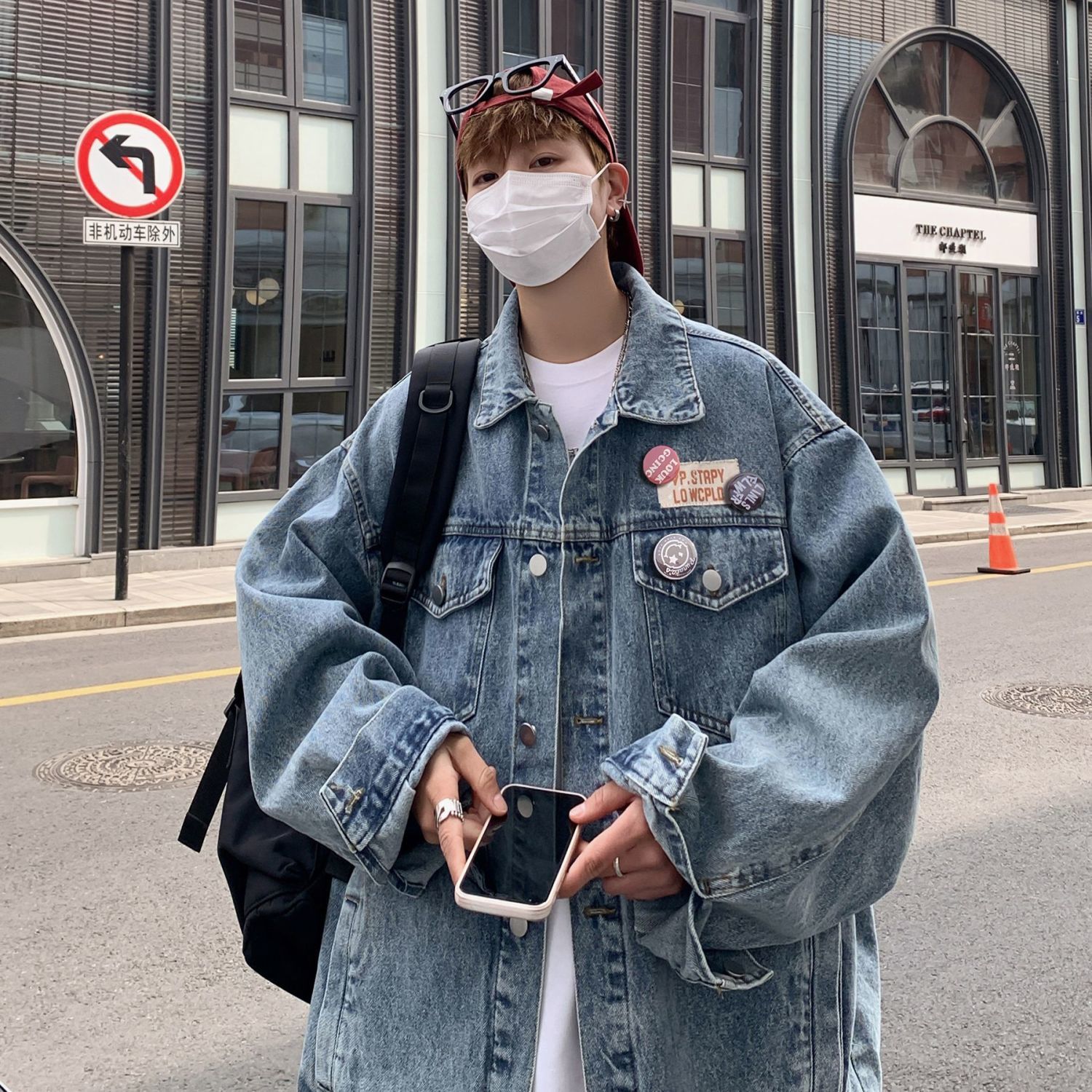 봄, 가을 남성용 아메리칸 레트로 데님 재킷, 루즈하고 활용도가 높은 청소년 핸섬 트렌디 재킷, 코트, 탑