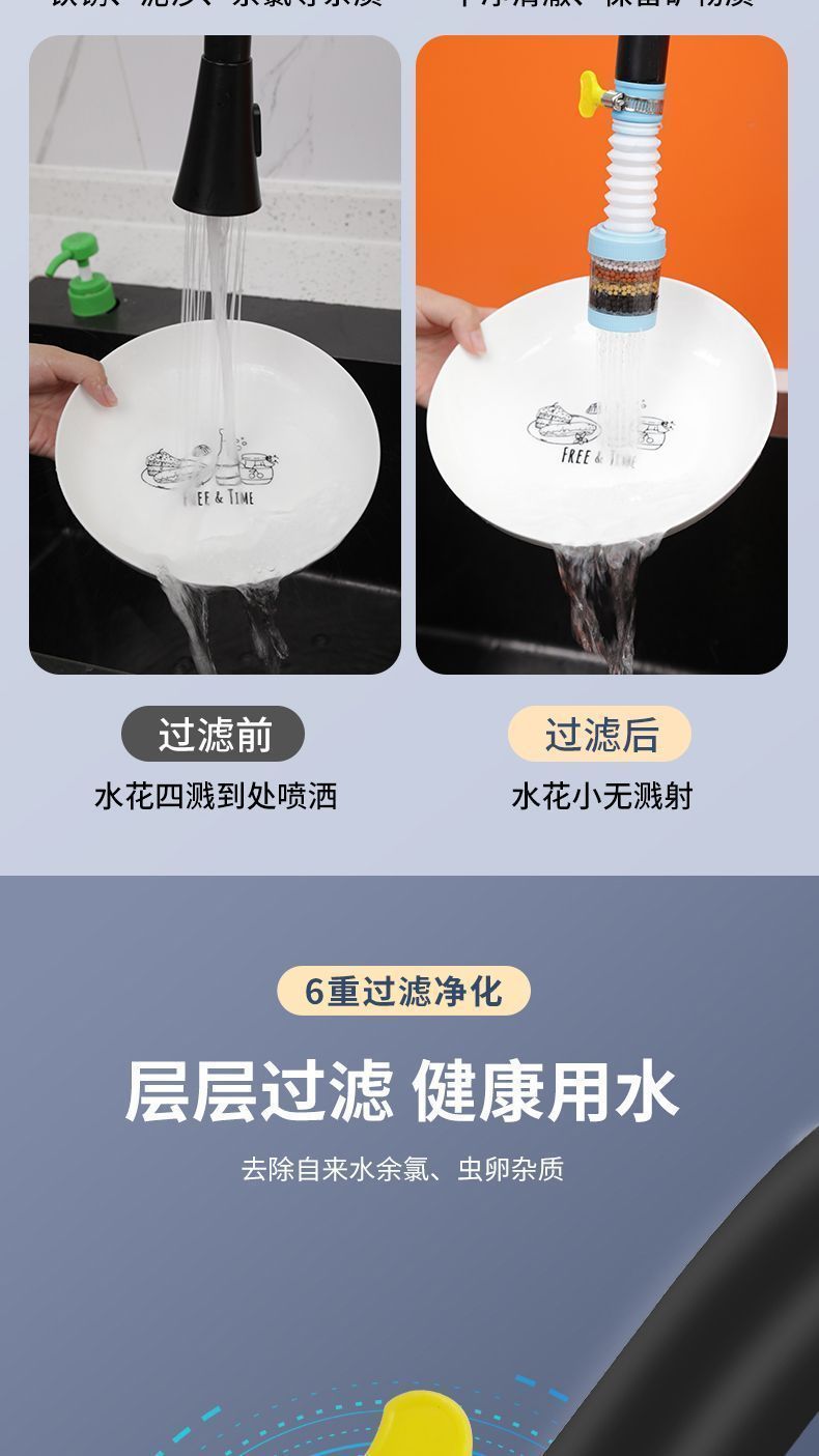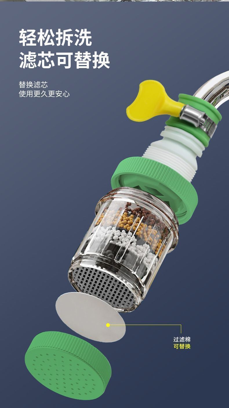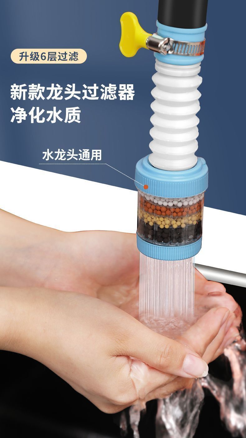 새로운 360 ° 회전식 탈착식 및 세척식 수도꼭지 6층 필터 가정용 수돗물 스플래시 방지 범용 정수기
