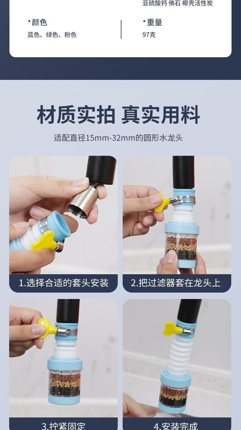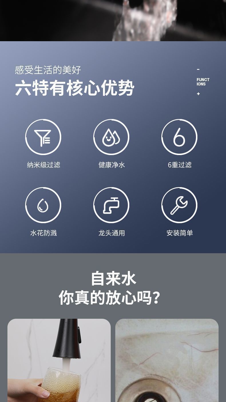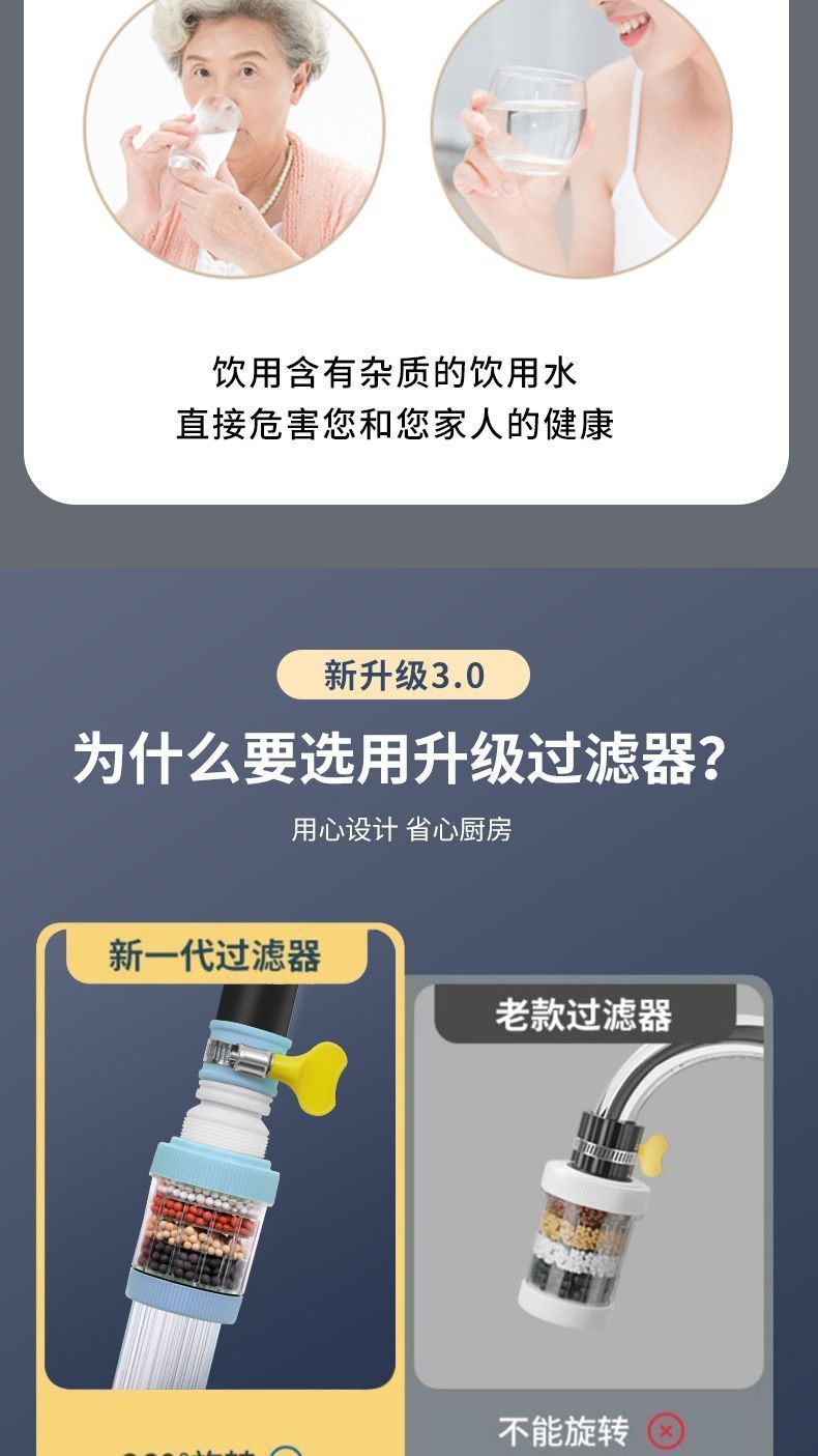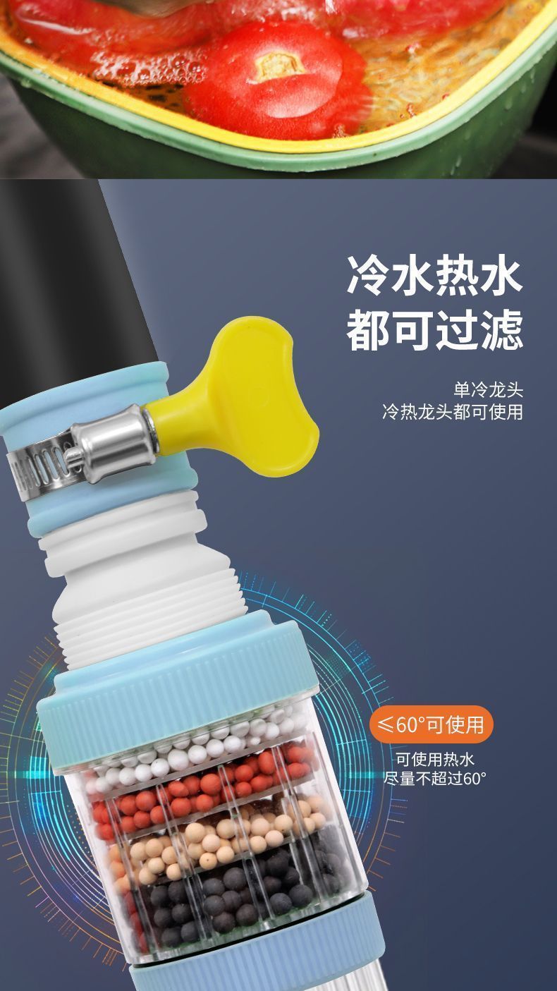 새로운 360 ° 회전식 탈착식 및 세척식 수도꼭지 6층 필터 가정용 수돗물 스플래시 방지 범용 정수기