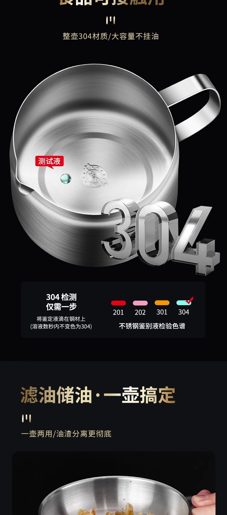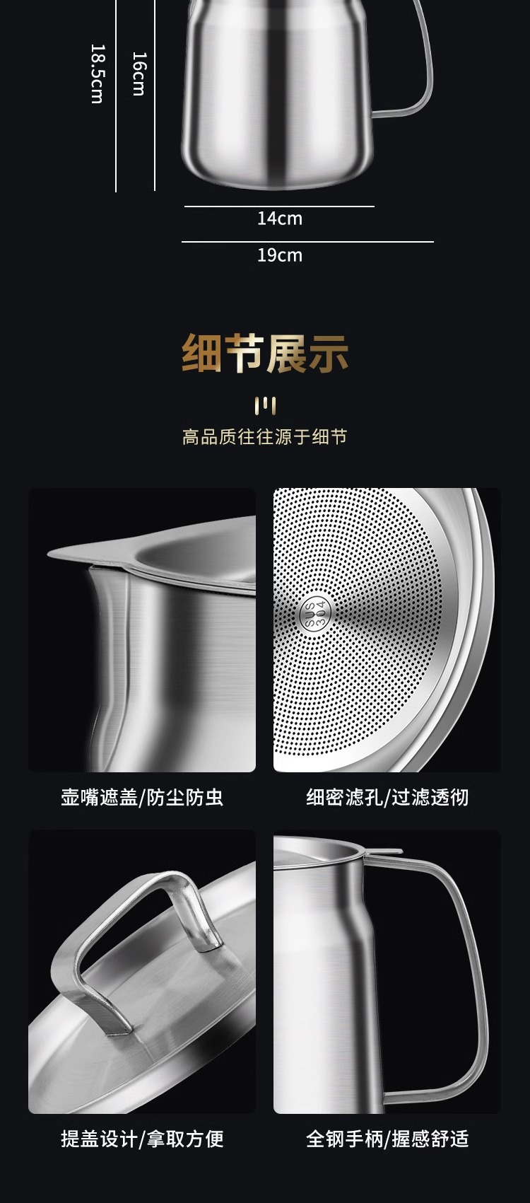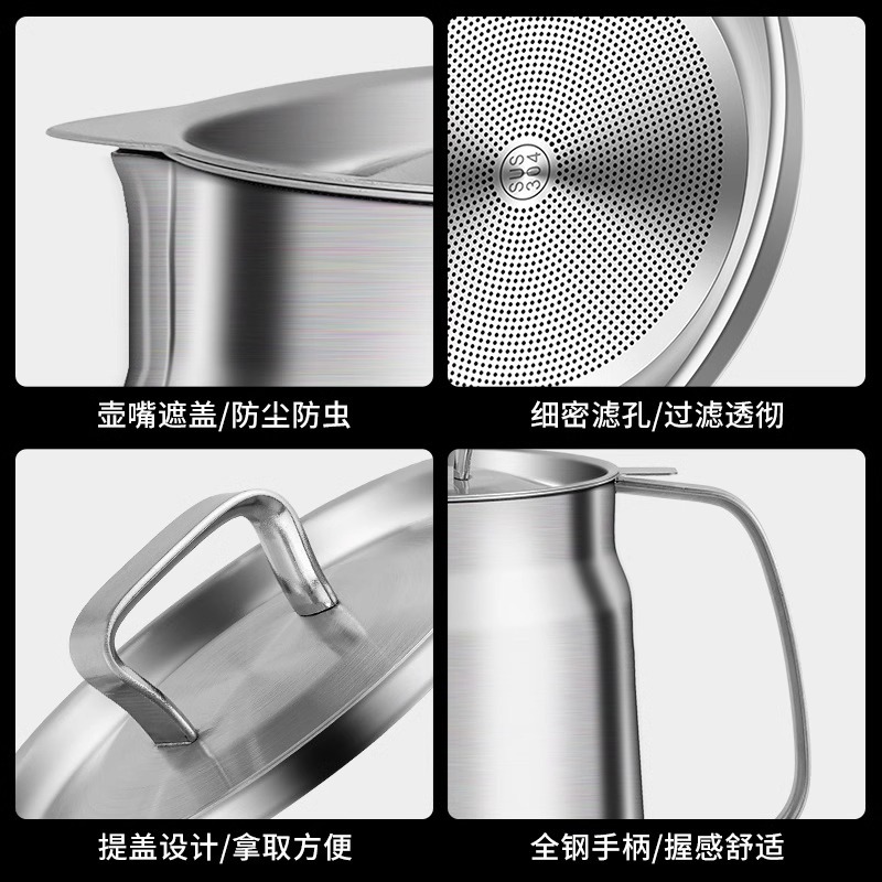 304材质:盖子304不锈钢 滤网304不锈钢 壶身304不锈钢