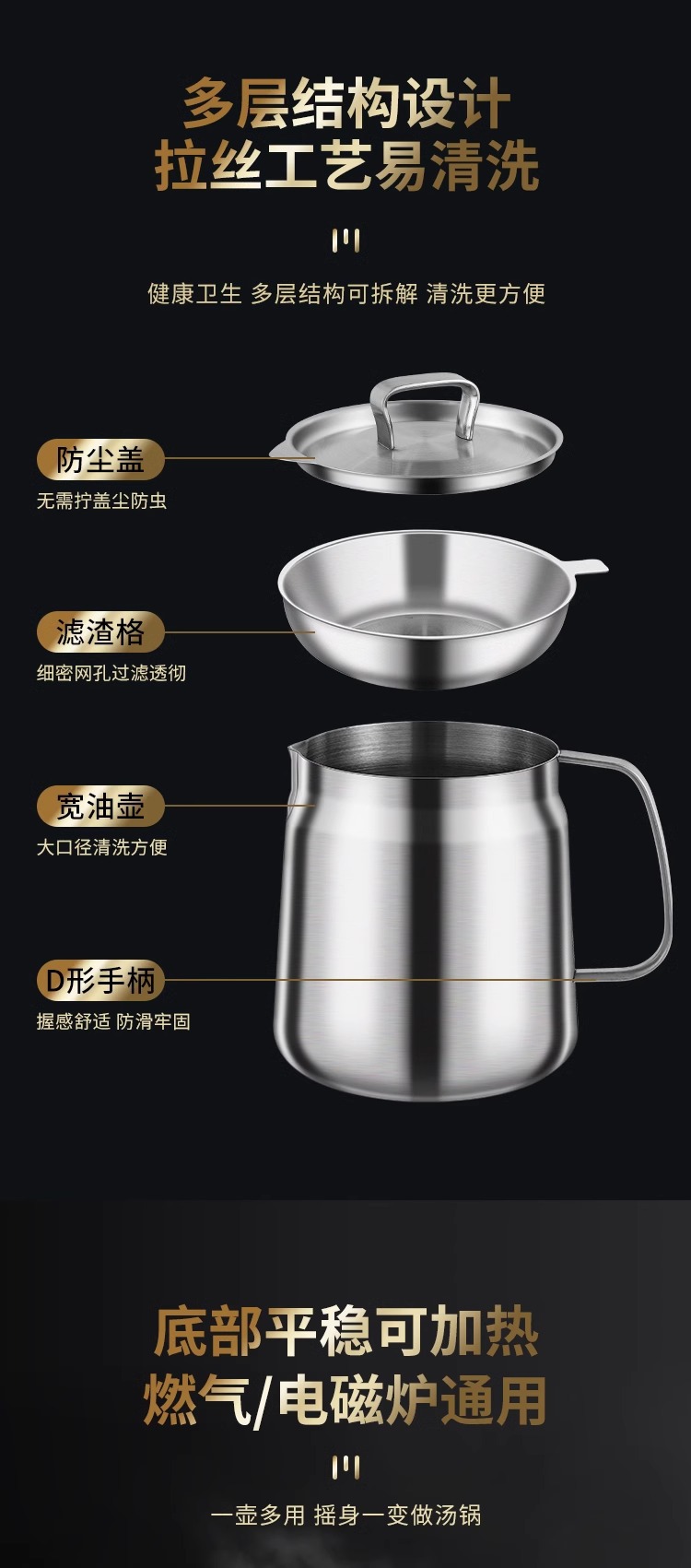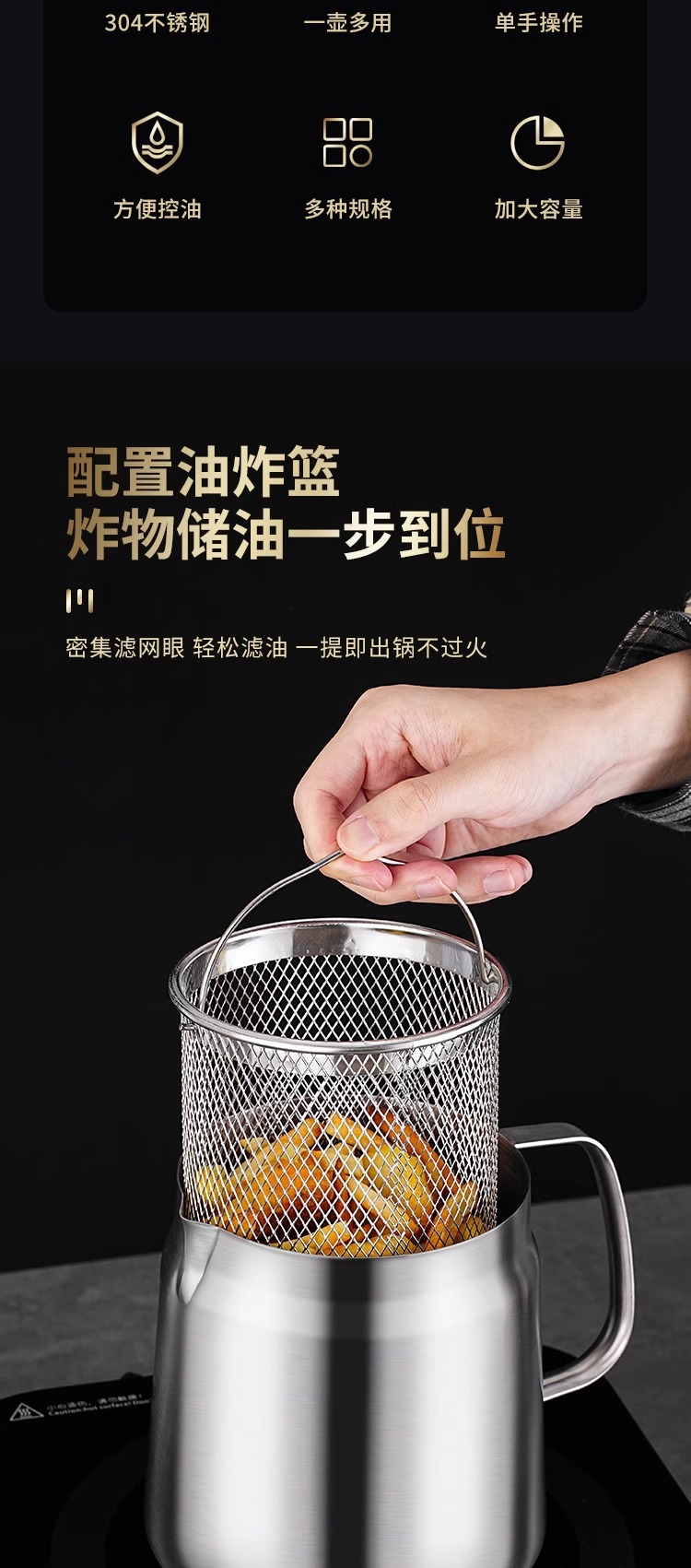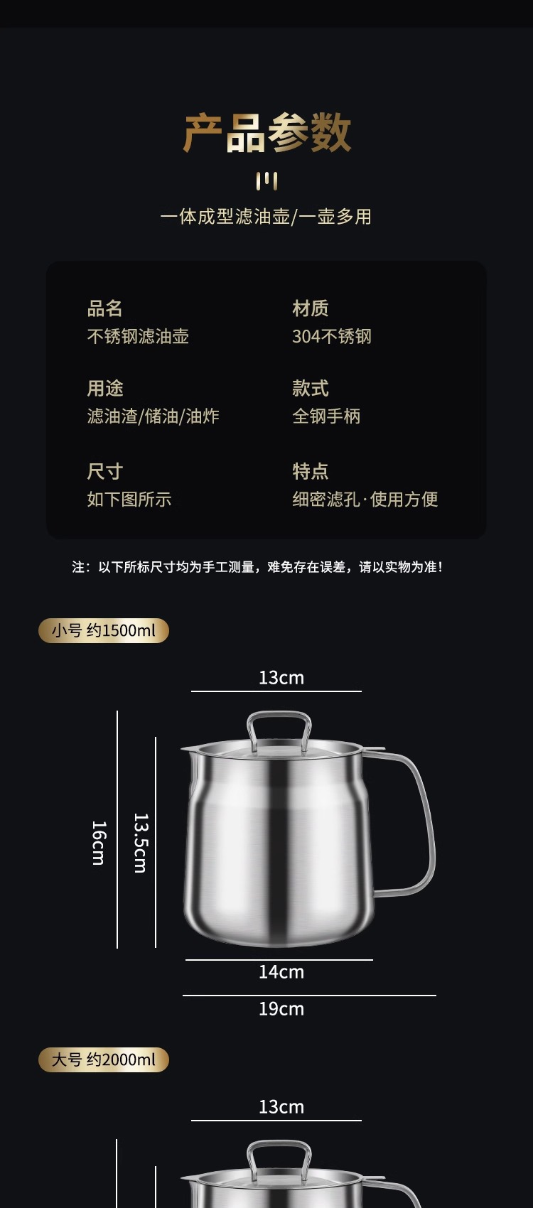 304材质:盖子304不锈钢 滤网304不锈钢 壶身304不锈钢