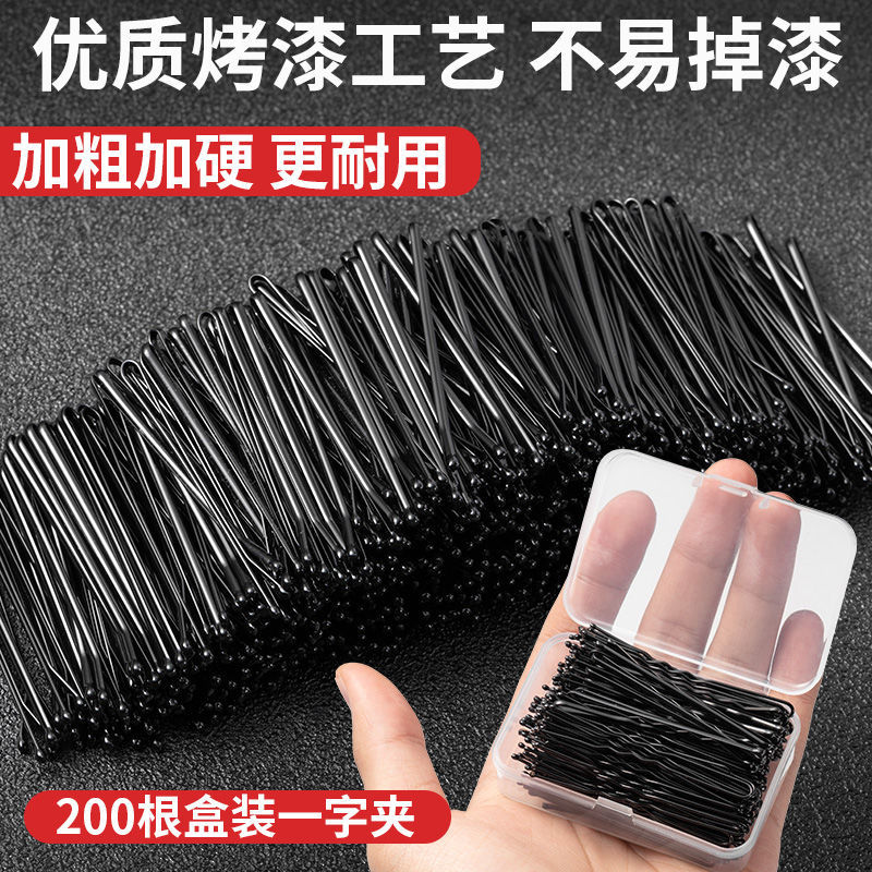 홍샤 어린이용 작은 향수풍 뒤집어 끼는 머리핀 검정색 일자형 클립 래커 금속 머리핀 2024 가을