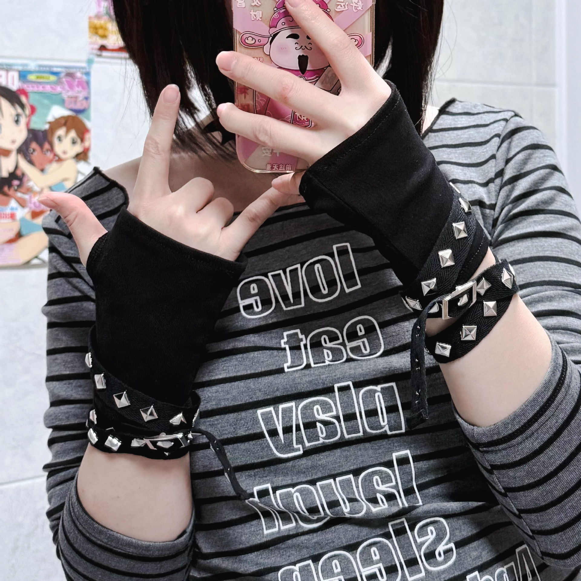 펑크 장갑 블랙 짧은 리벳
