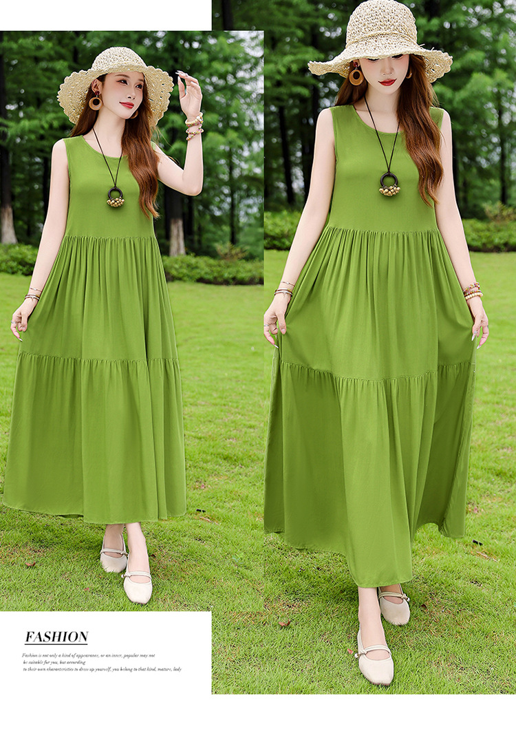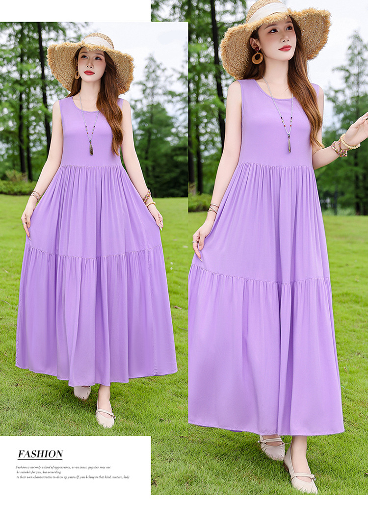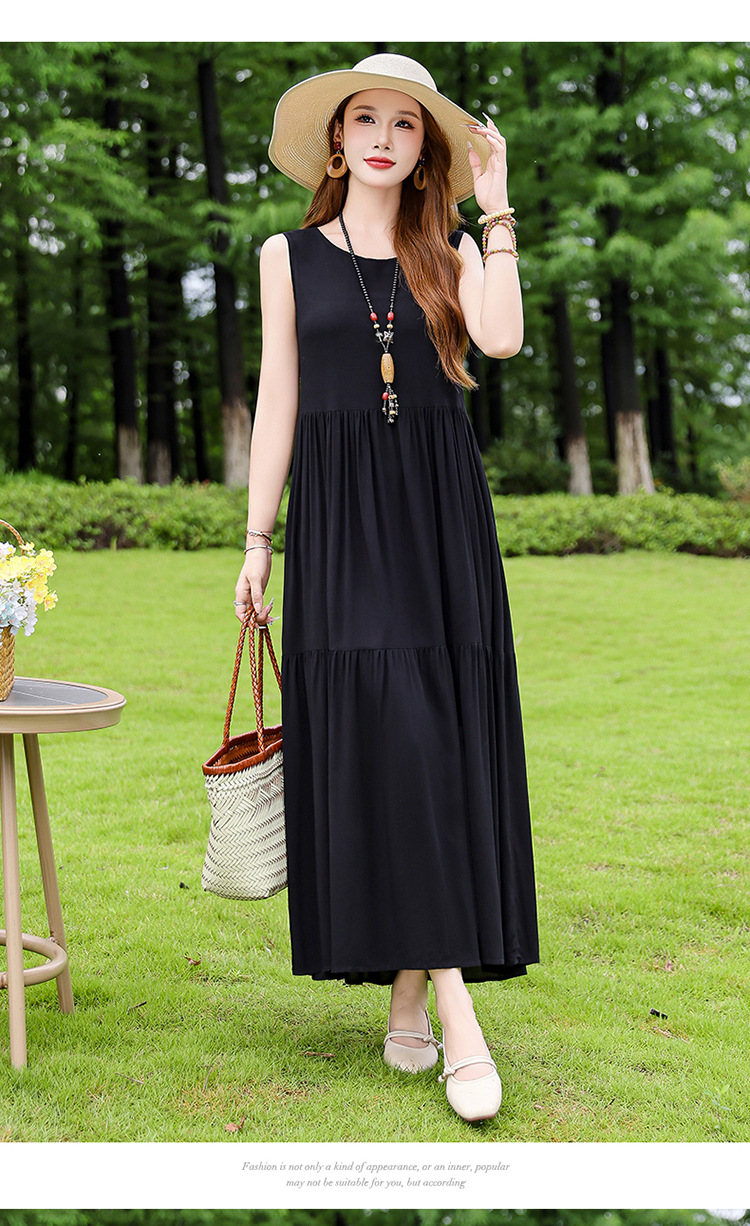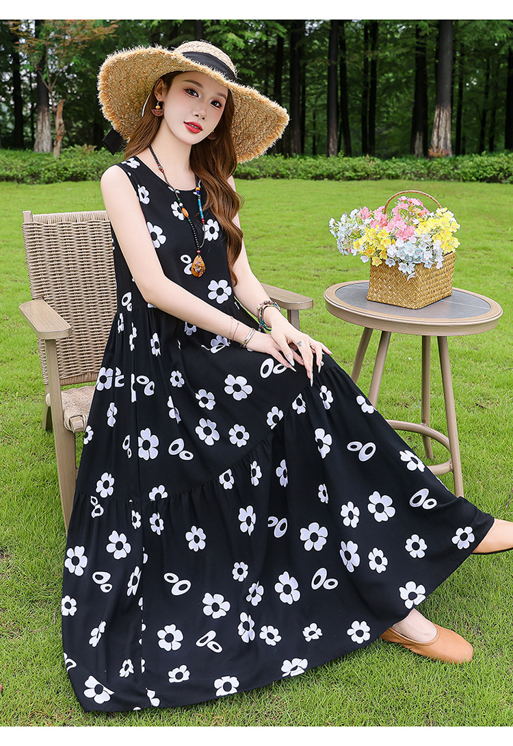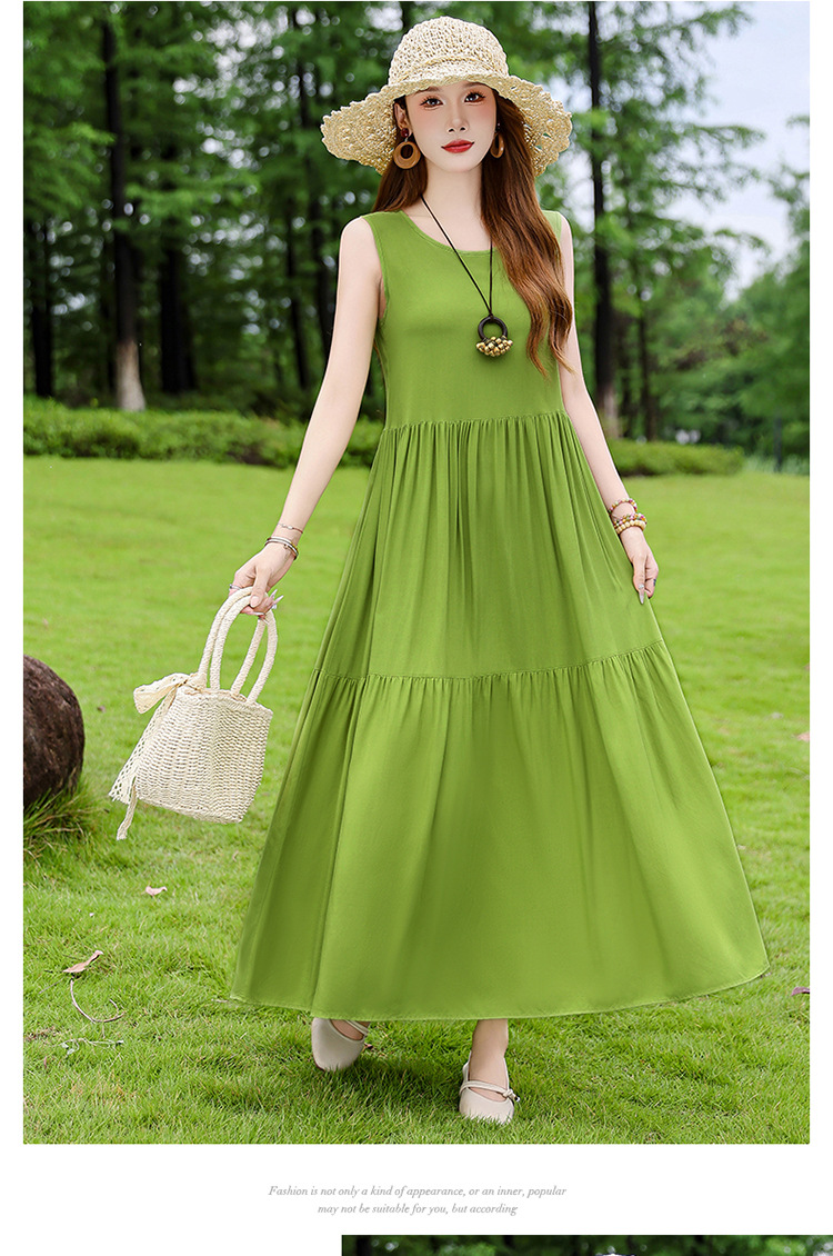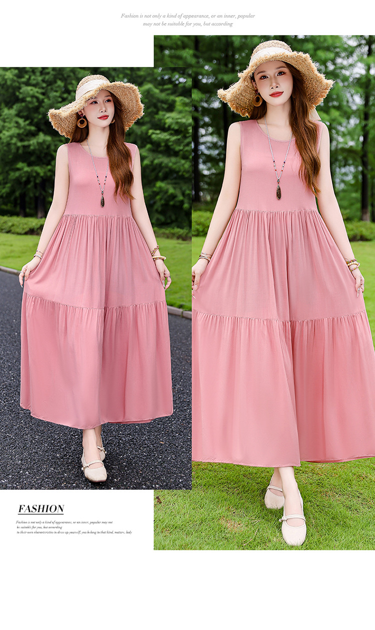 여름 면 실크 드레스 새로운 겉옷 젊은 스타일 서스펜더 비치 스커트 여성 민소매 휴가 스커트 우아한 롱 스커트