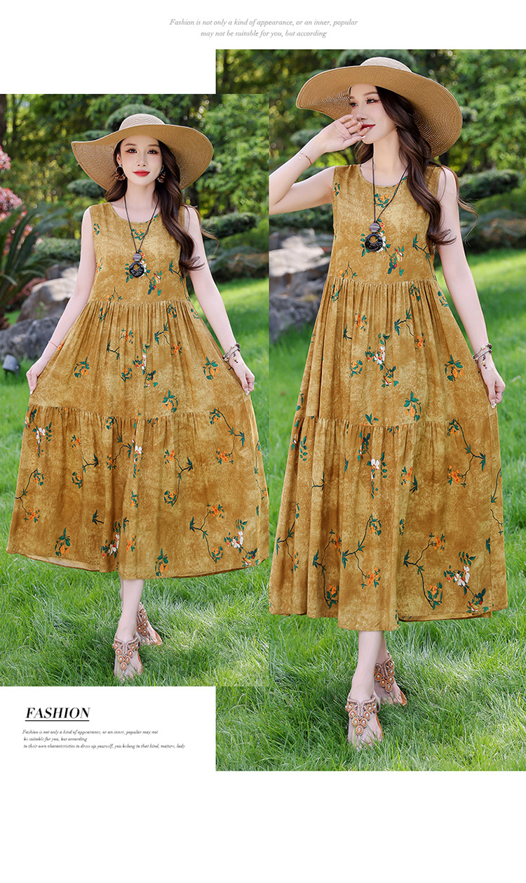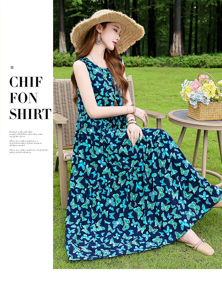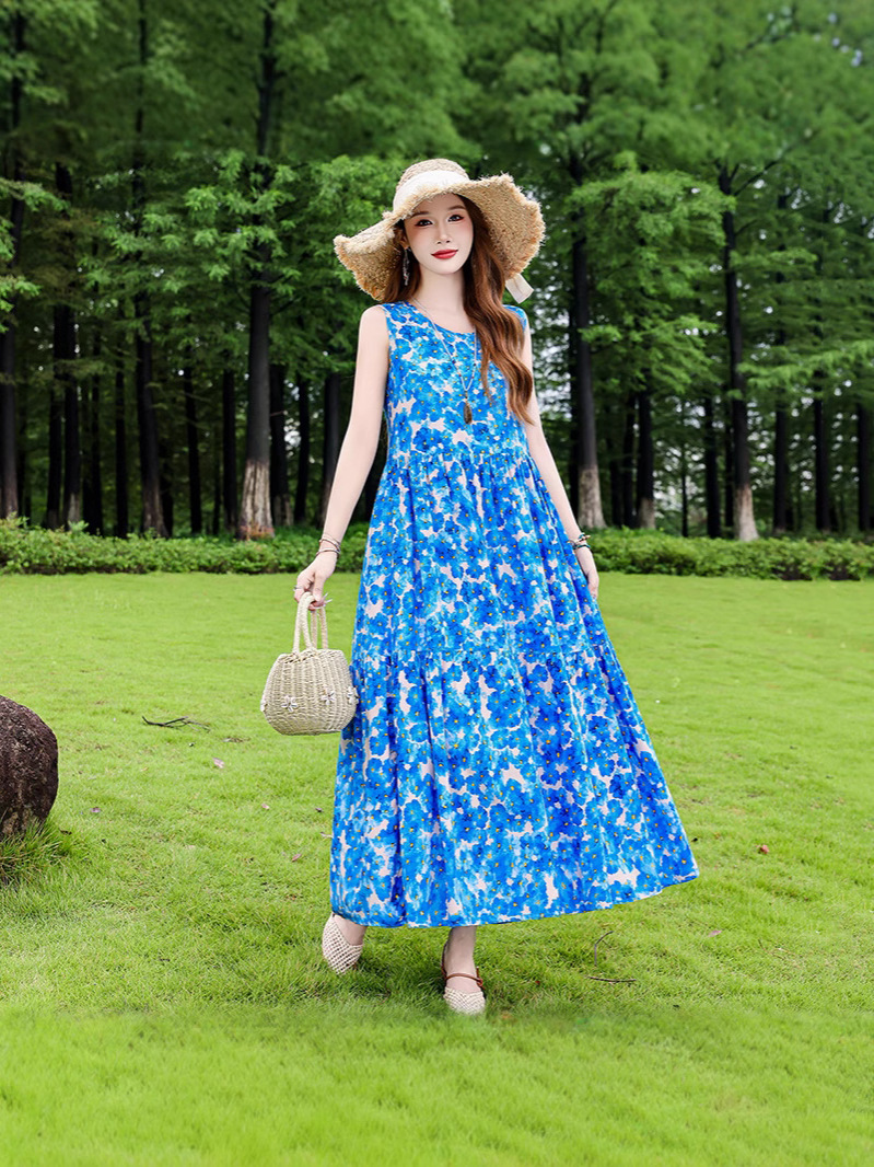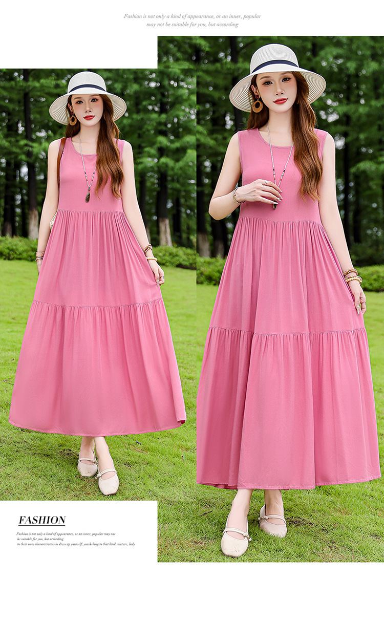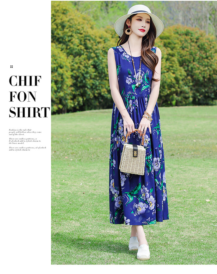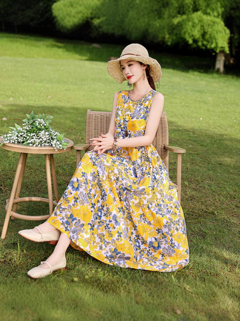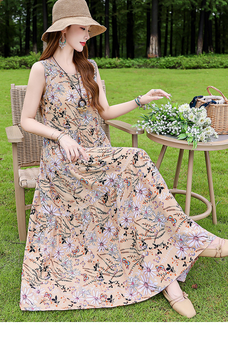 여름 면 실크 드레스 새로운 겉옷 젊은 스타일 서스펜더 비치 스커트 여성 민소매 휴가 스커트 우아한 롱 스커트