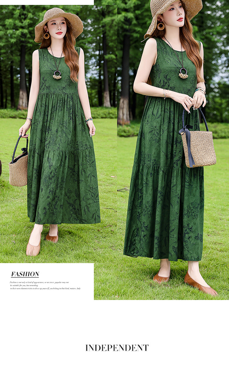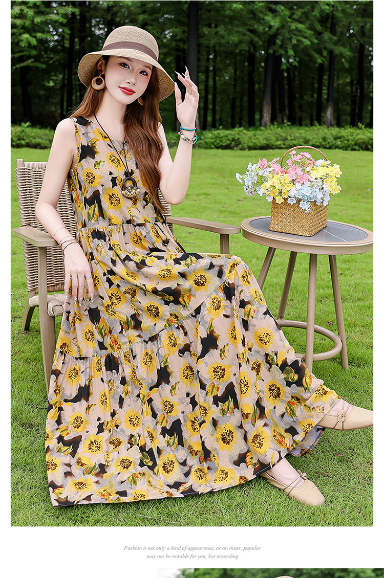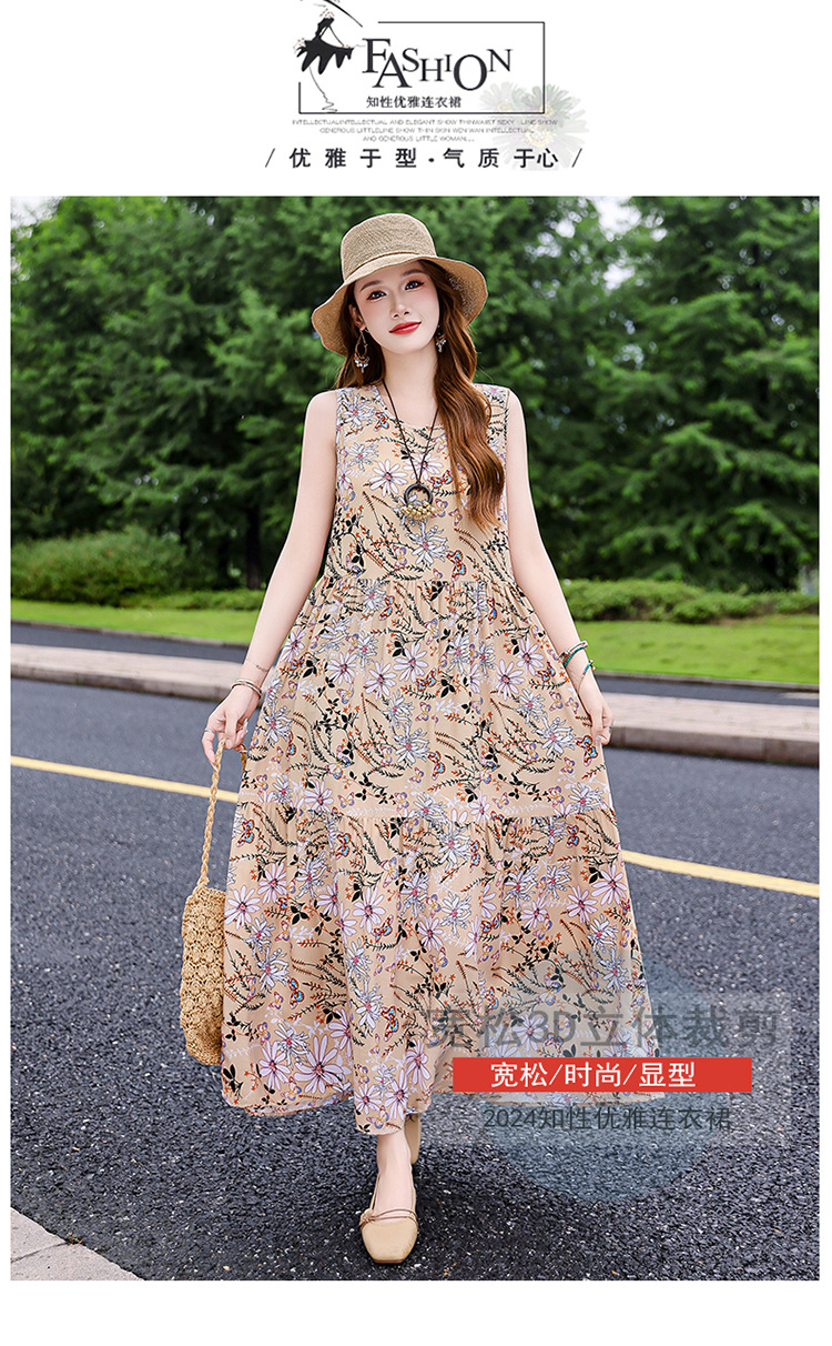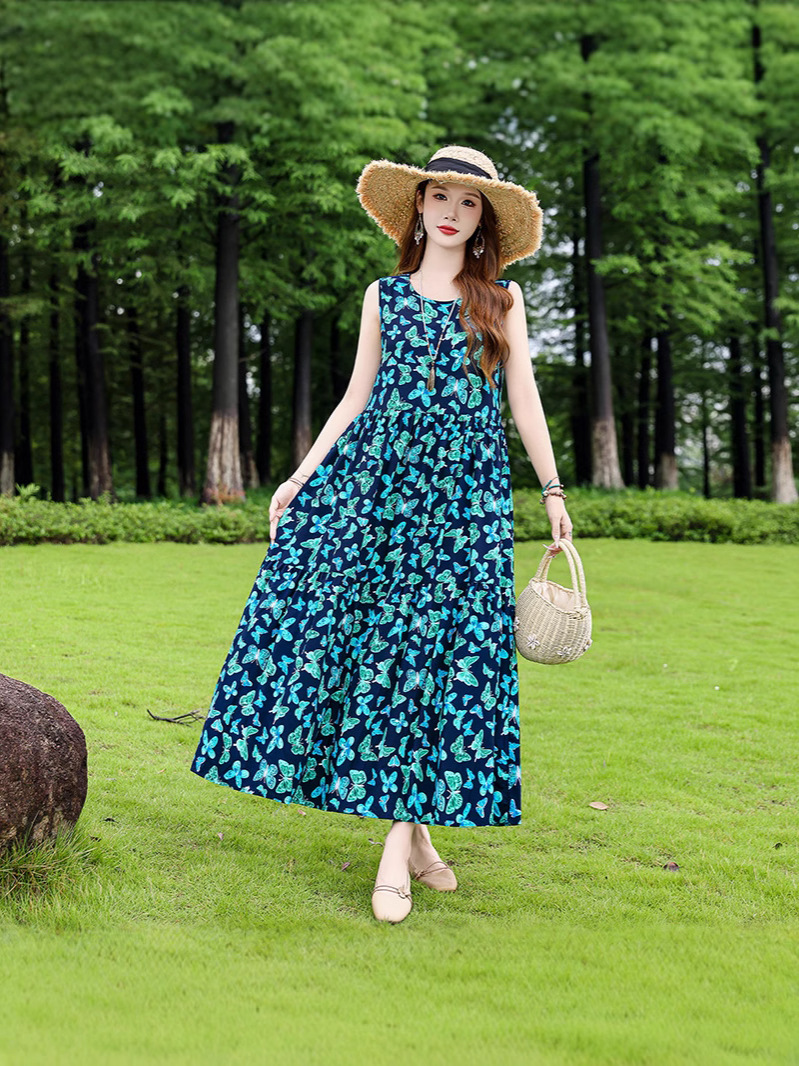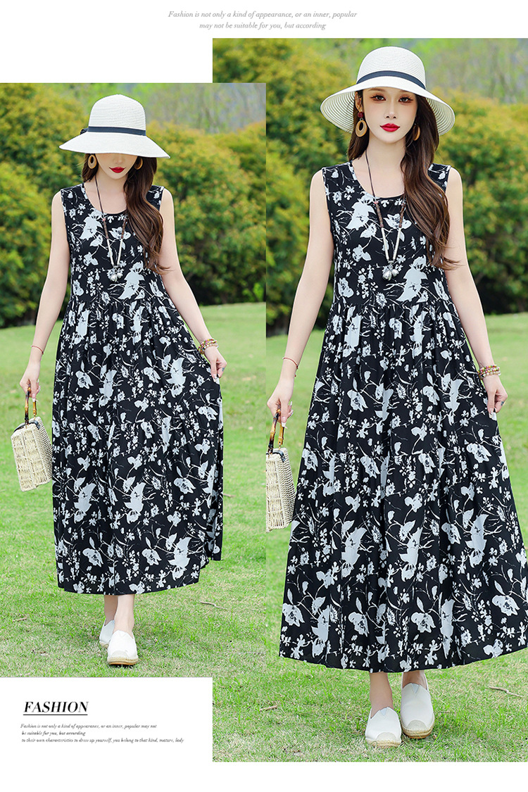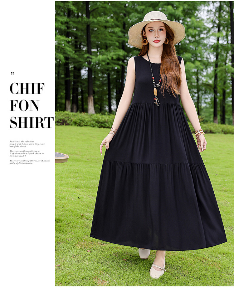 여름 면 실크 드레스 새로운 겉옷 젊은 스타일 서스펜더 비치 스커트 여성 민소매 휴가 스커트 우아한 롱 스커트