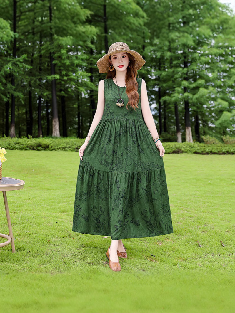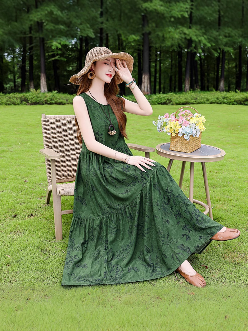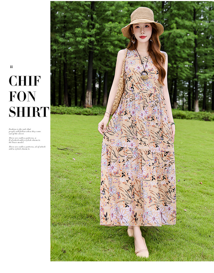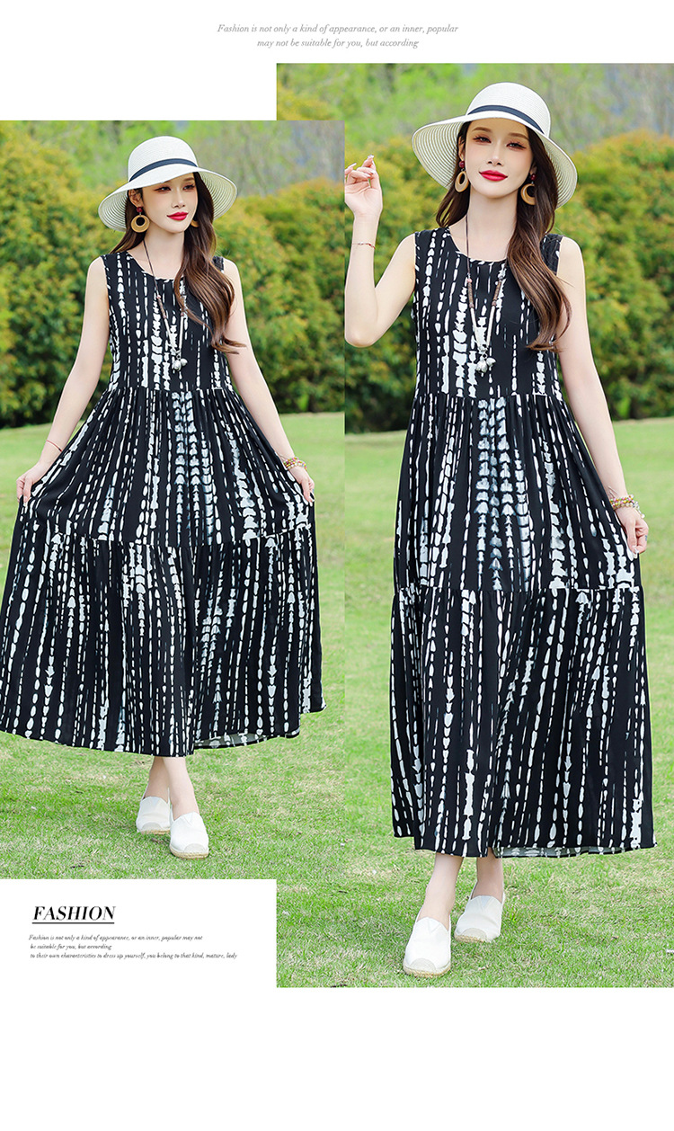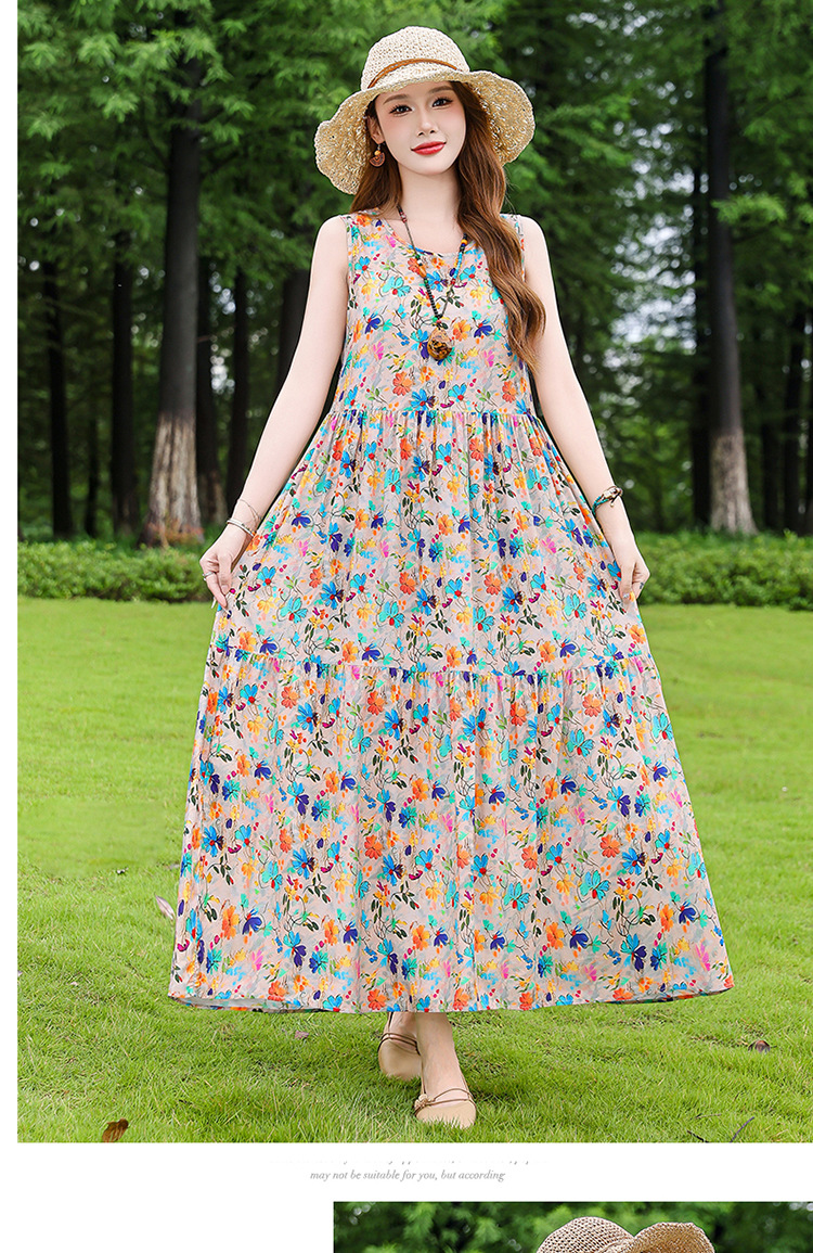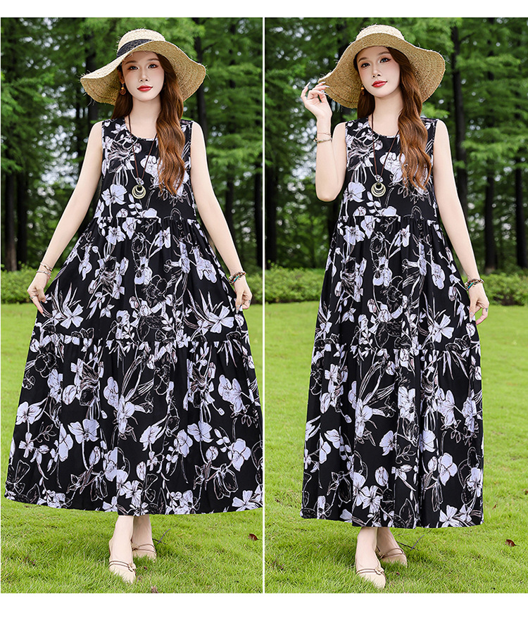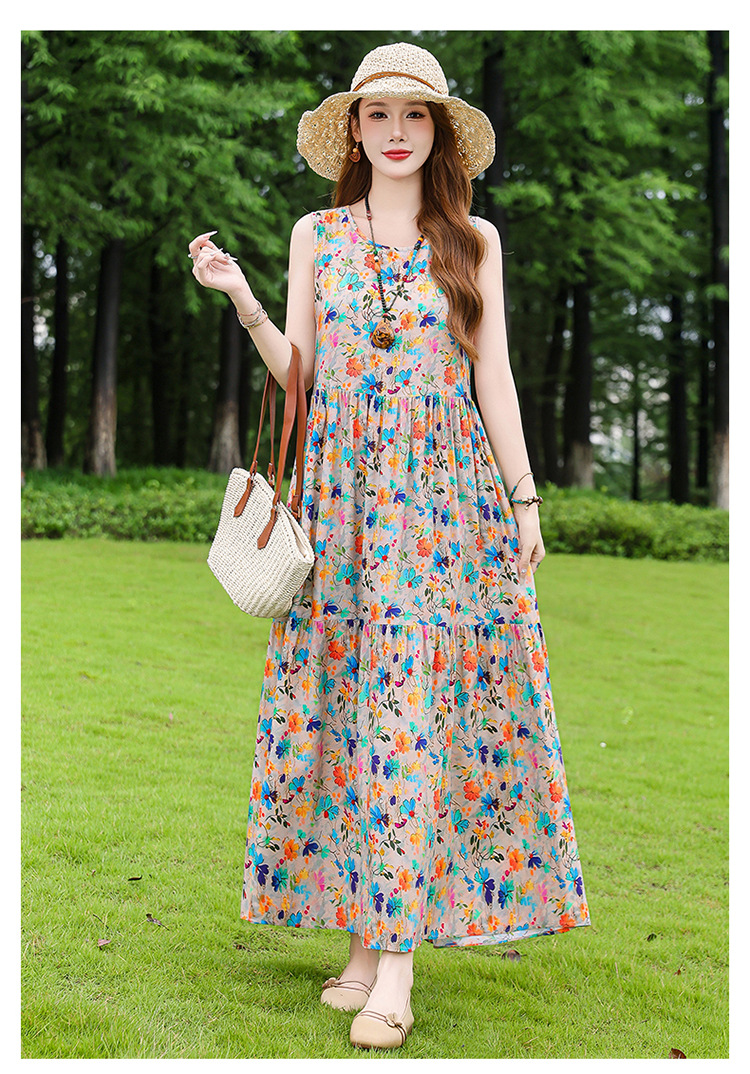 여름 면 실크 드레스 새로운 겉옷 젊은 스타일 서스펜더 비치 스커트 여성 민소매 휴가 스커트 우아한 롱 스커트