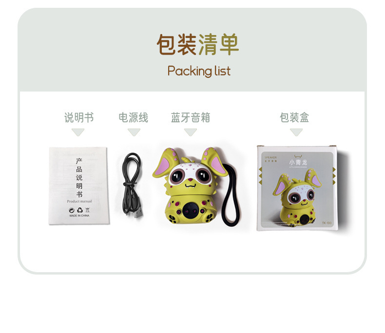 2024 새로운 Xiaoqinglong 블루투스 스피커 슈퍼 귀여운 방수 및 방진 데스크탑 디지털 장식품 선물 스피커