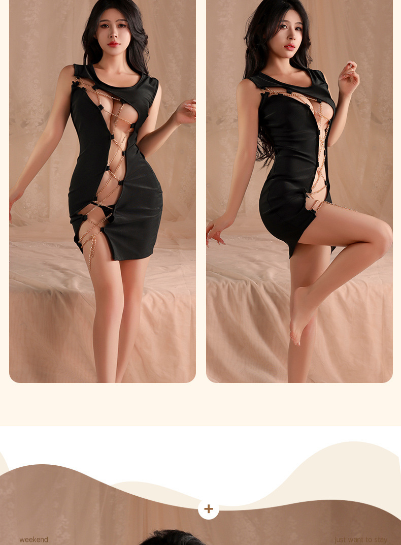섹시한 속옷, 섹시한 유방 노출 유니폼, 유혹 체인, 순수한 욕망 타이트 드레스, 시스루 나이트 클럽 퀸 잠옷