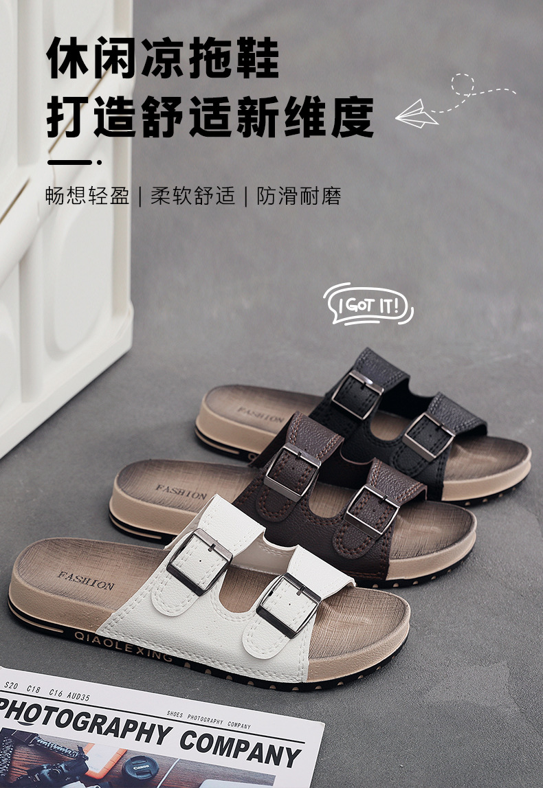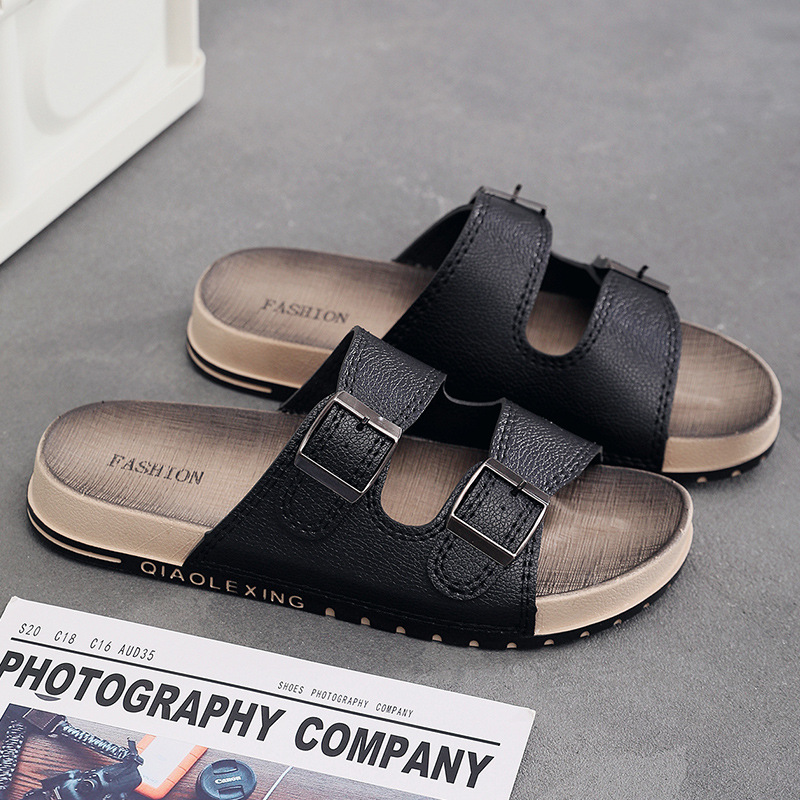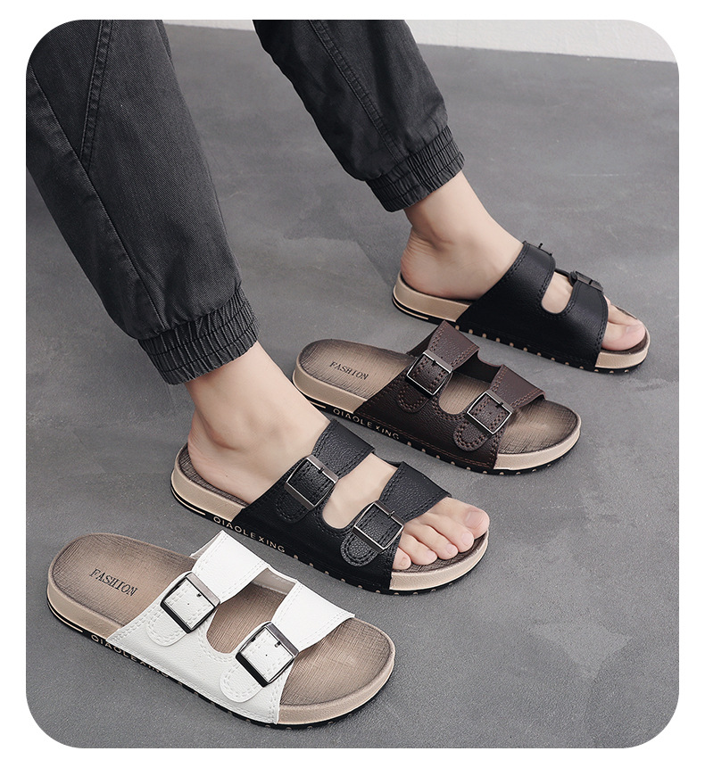 남자 여름 새로운 도착 슬라이드 유행 올매치 두꺼운 유일한 유일한 비 슬립 소프트 솔 샌들 남성용 트렌디 비치 슈즈