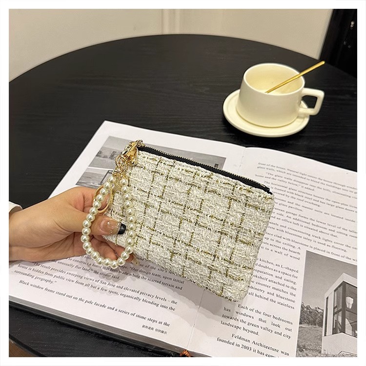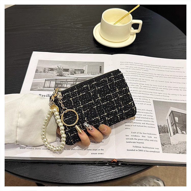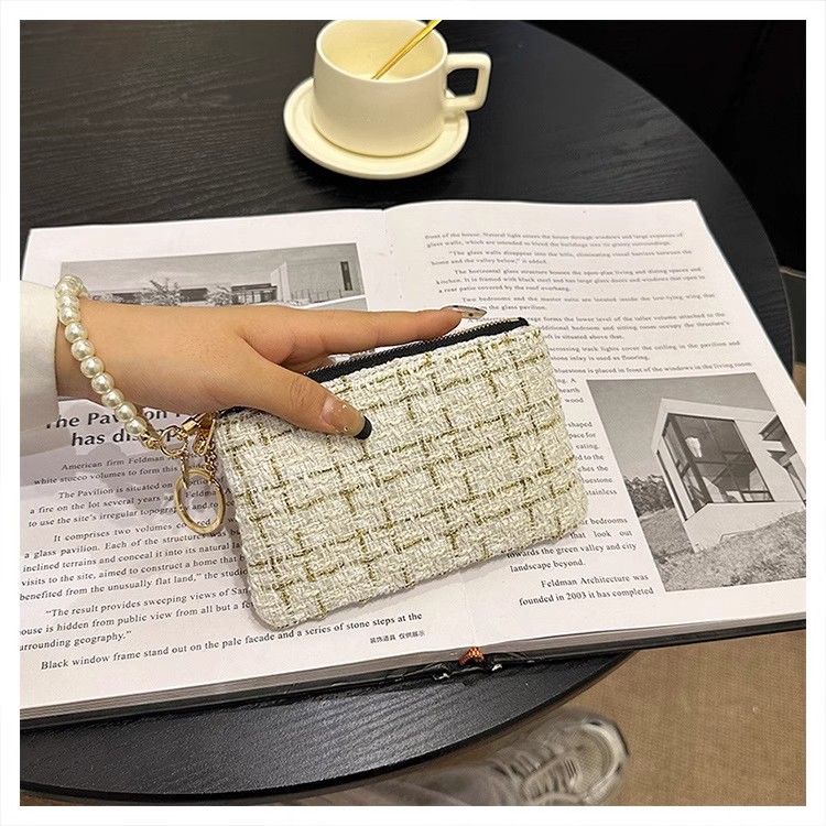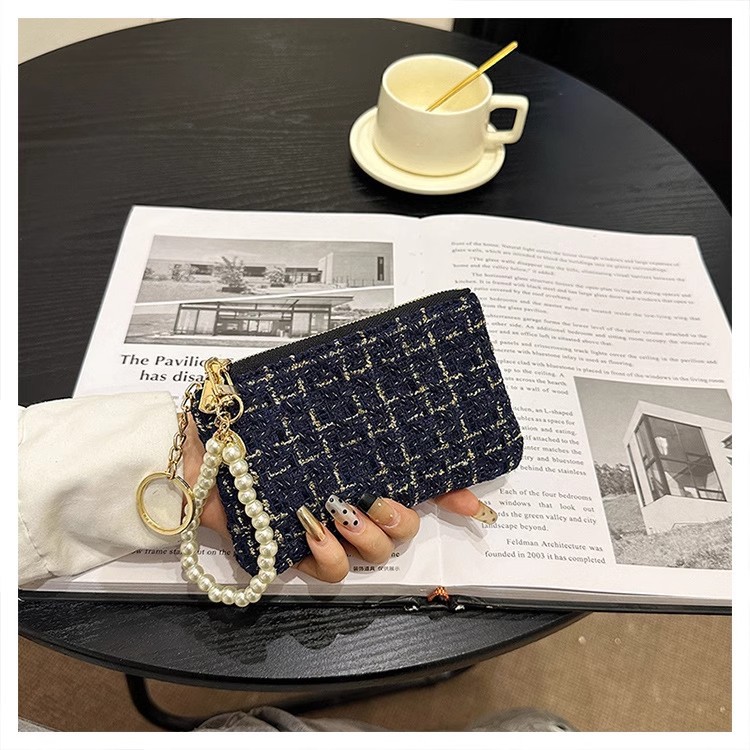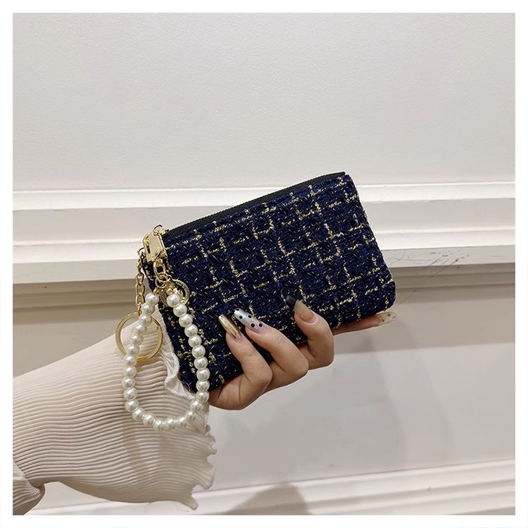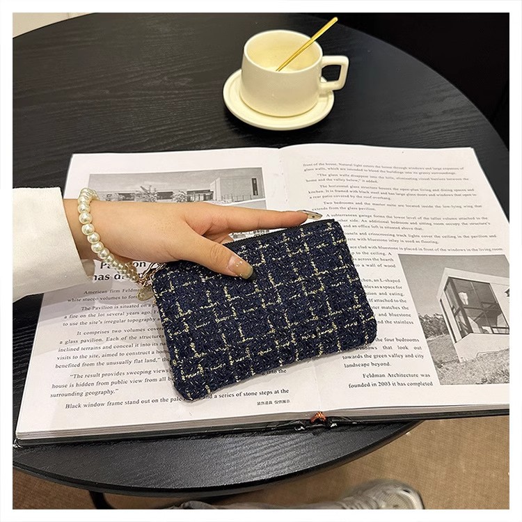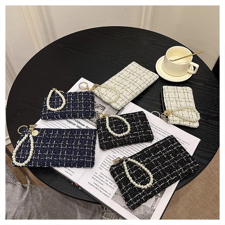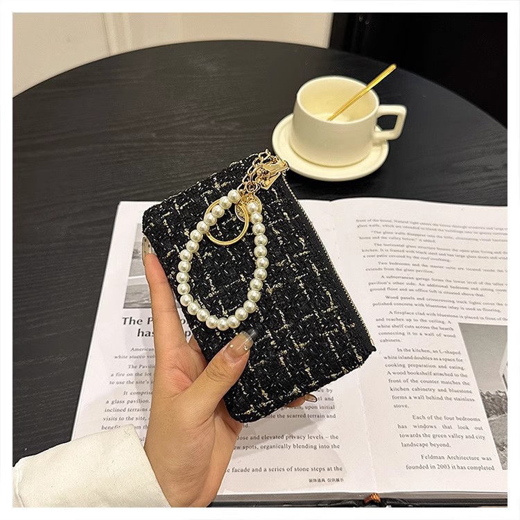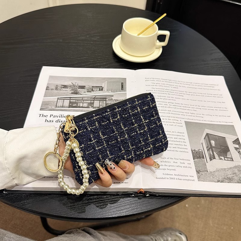 지갑 여성용 짧은 샤넬 스타일 지퍼 코인 백 캔버스 짠 카드 홀더 절묘한 드라이버 라이센스 키 클러치 백